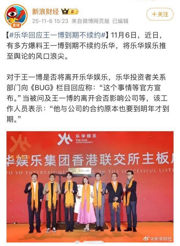 没直接否认就是承认王一博与乐华合约到期不续。没有王一博的乐华股票大跌,一落千丈。[允悲]