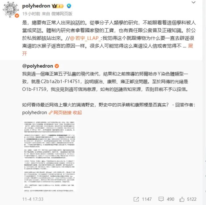 这真就有点意思了。 这段时间,关于康熙亲爹是洪承畴还是顺治,可是讨论的相当热闹。 各种说辞也是大行其道,各有各的说辞。 “乾隆是陈家子,康熙是汉臣种” 这野史不一定真,但一定够野! 本以为是网友们玩梗,结果专家急了。 中央民族大学严实副教授说,采样过雍正第五子和恭亲王弘昼后代,DNA证实其努尔哈赤支系。 等等,这次怎么如此着急的辟谣。 早前,明钩子文学盛行的时候没看到专家急,现在才几天就到处辟谣。 不仅是这位专家的言论被置顶,更是有多家媒体跟风转发,他们似很着急,想要将这股风压下去。 若是康熙有了汉人血统,这对于满清遗老们可是一大冲击,甚至说是心理创伤。 他们这些年的努力算什么? 伟大的脱口秀演员某笠曾经说过:被说中了的人才会破防。 换句话说就是,真相最伤人。 调侃唐宋明的时候无人发声,说点代清的野史就各种出来辟谣,真是讽刺。 那么,各位对于这位专家的辟谣是什么态度呢?