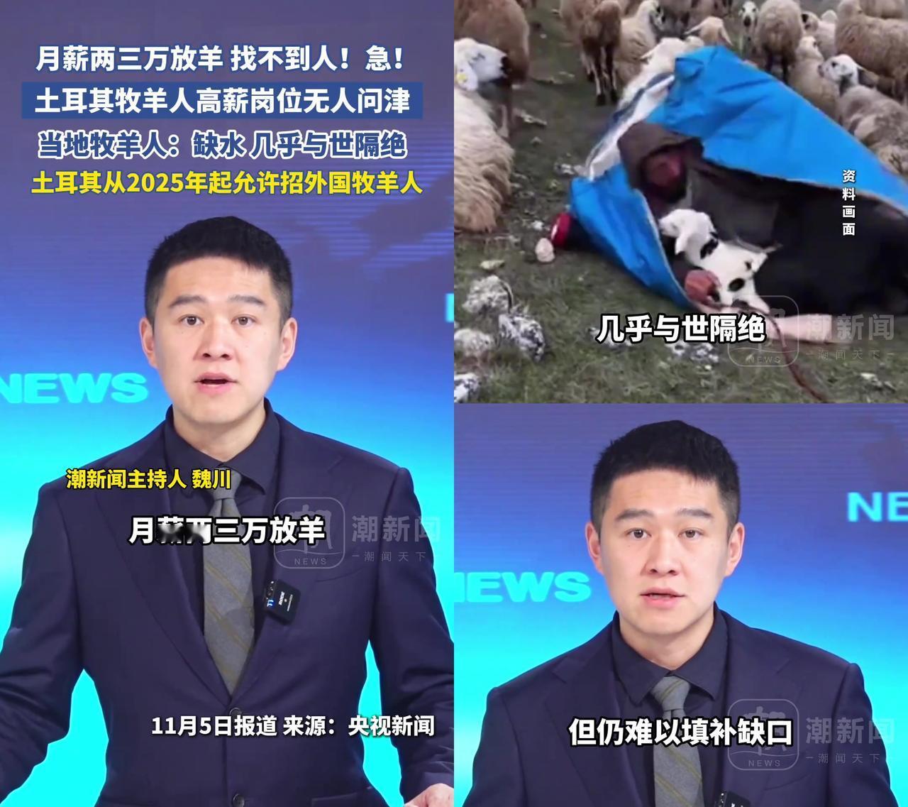你敢信?月薪两三万的活儿,居然是放羊?还没人愿意干? 土耳其现在急疯了,牧羊人岗位开价2-3万人民币,本地人都不肯去,明年要招外国人。 有人说“这钱够我老家养娃一年”,也有人直摇头:“缺水没网不能洗澡,闷得要崩溃,跟坐牢似的。” 咱打工人都懂,钱是香,但活着得有点“人气儿”啊,能刷朋友圈,能洗热水澡,能跟人聊两句,这些比钱还难将就。 有人问“放丢了羊要赔吗?”“是不是电诈啊?”还有人喊“我报名!” 要是你,会为了两三万去当孤独牧羊人吗?选钱,还是选不崩溃的日子?