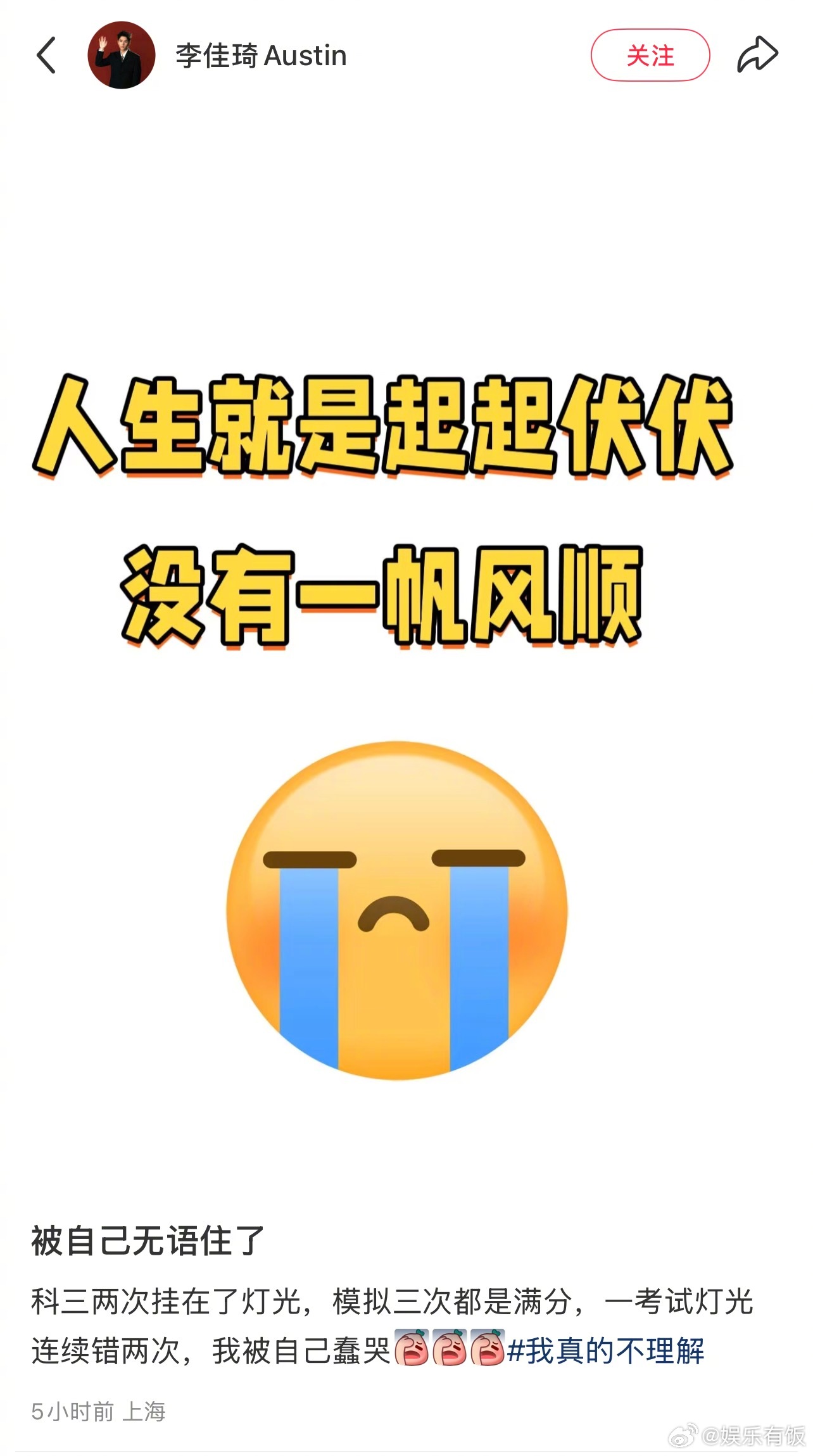 李佳琦考科三挂在灯光上两次李佳琦早起考科三一下就挂了 哈哈哈 抱歉真不该笑的,但是大早上做好妆发去考科三,车还没起步在灯光上挂了两次,真的有点冤种了[允悲]