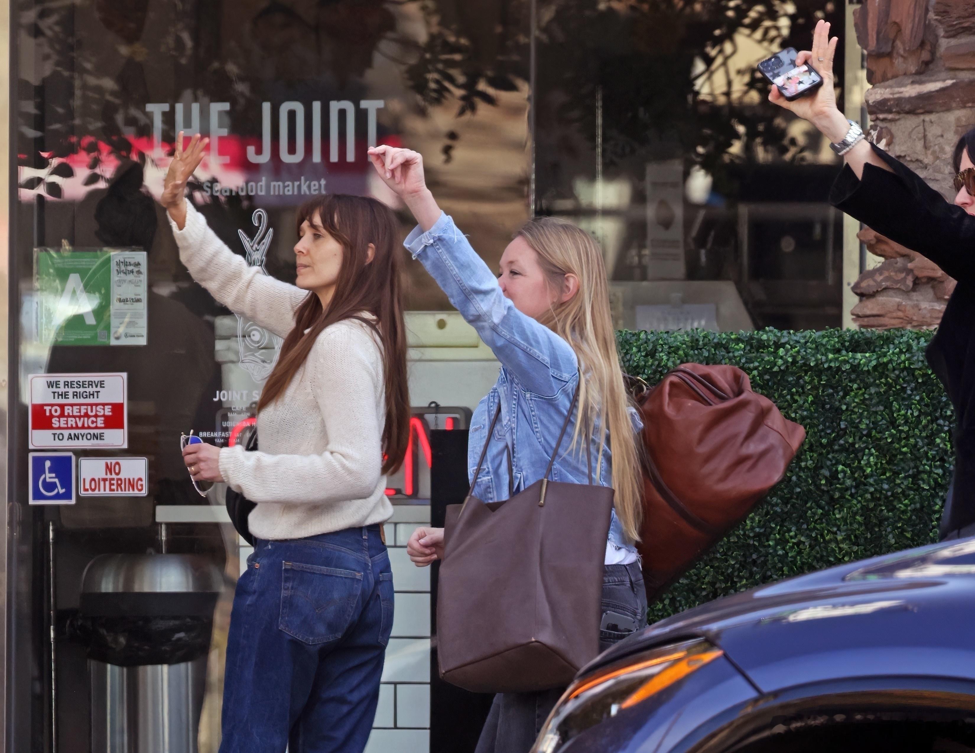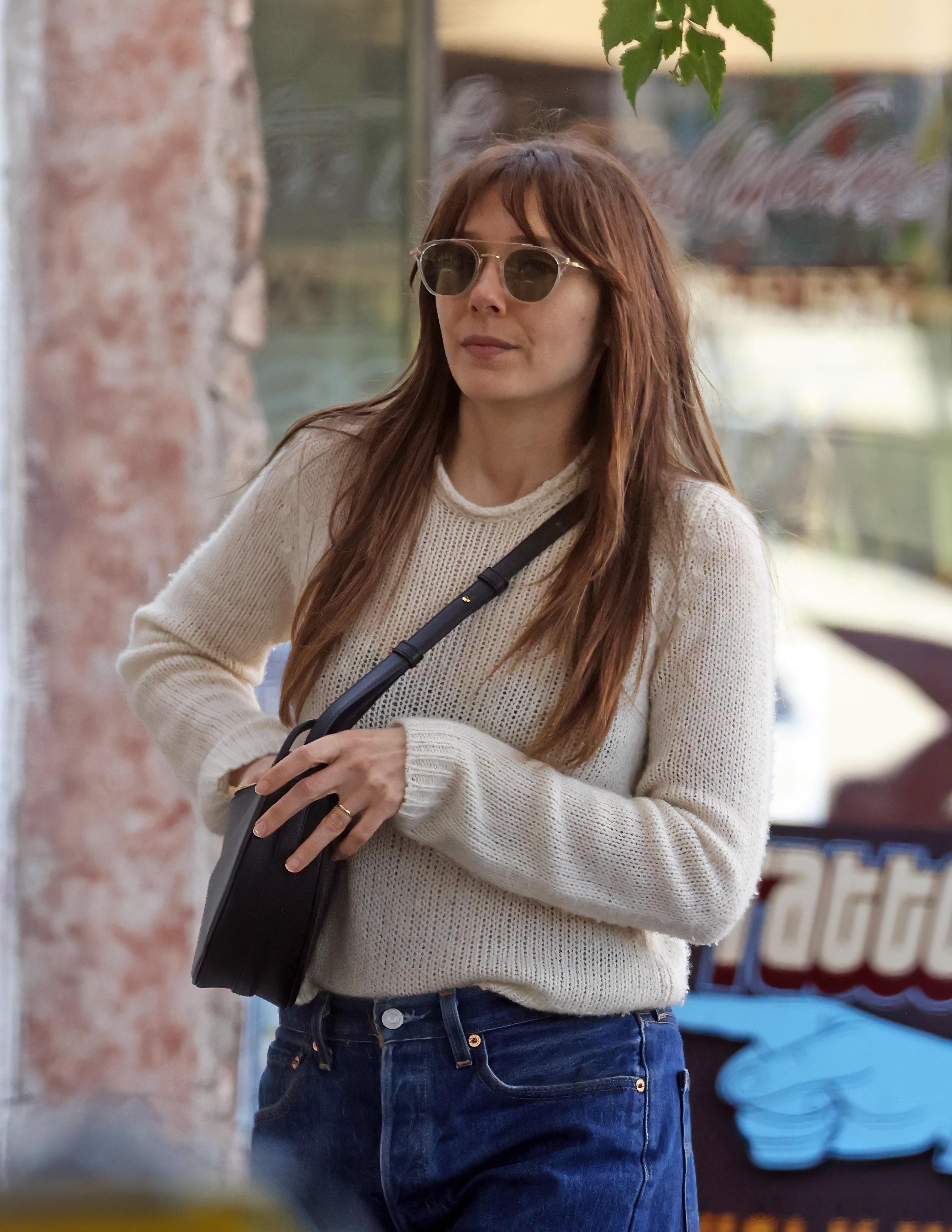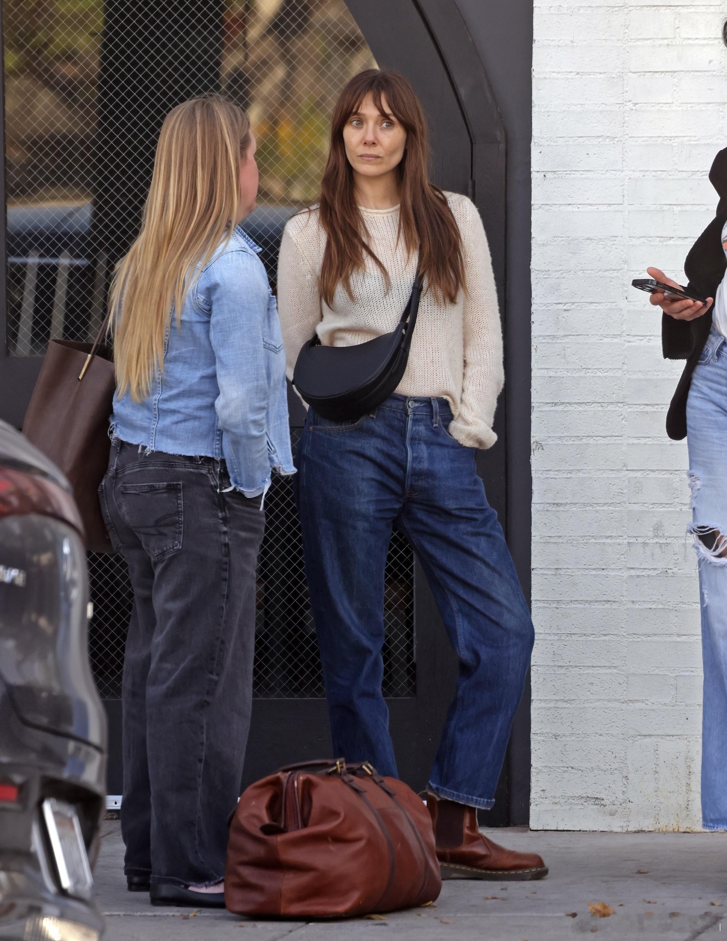 Elizabeth Olsen伊丽莎白奥尔森在斯蒂迪奥城外出,和朋友在Petit Trois餐厅聚餐聊天