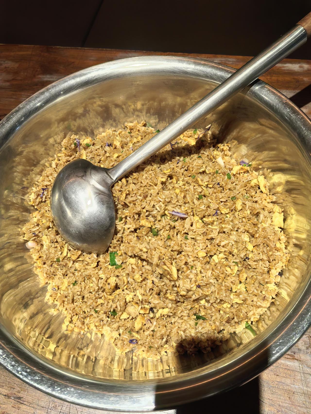 都说厨师的嘴最刁,那我们的工作餐自然也不能含糊。今天不搞复杂的,就分享一顿我们后厨自己的晚餐——一碗“内容丰富”的杂烩汤,配上一锅锅气十足的炒花饭,简单却暖胃暖心。 🍚 锅气十足的黄金炒花饭 这碗饭是我们的“能量基石”。每一粒米都必须颗颗分明,用隔夜饭最佳,吸饱了鸡蛋的香气和蔬菜丁的清甜。大火快炒,让每一粒米都裹上金黄的蛋衣,带着淡淡的锅气,一口下去,是最纯粹的满足感。 🍲 “一锅端”的豆条平菇鸡蛋肉圆汤 这可不是简单的乱炖,而是我们厨师的“偷懒”智慧。自己手打摔出的肉圆,Q弹紧实,充满肉香。汤底用筒骨慢熬,先下豆条和平菇,让豆制品的醇厚和菌菇的鲜美充分释放,最后卧上嫩滑的鸡蛋。 一勺下去,有肉圆的扎实,有豆条的绵软,有平菇的滑嫩,还有蛋花的丝滑,一口汤下肚,鲜、香、醇,所有疲惫瞬间被治愈。这一碗汤,集合了我们对火候和食材搭配的理解,看似随意,实则处处是讲究。 这就是我们厨师的日常,对美食的热爱不分场合。哪怕是一顿工作餐,也会用专业的态度去对待,因为我们坚信,用心做的食物,味道一定不会骗人。