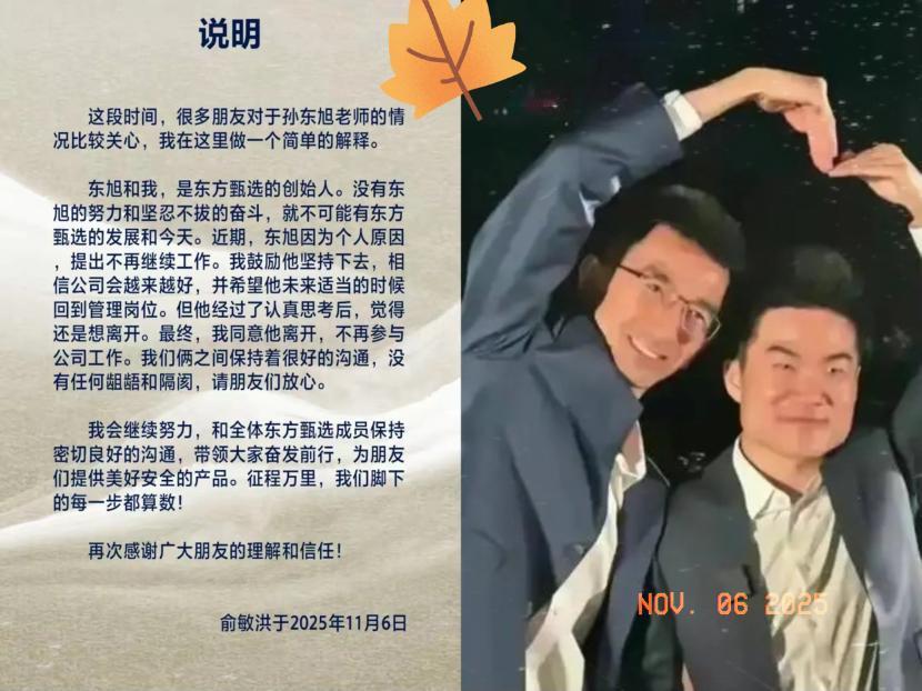 孙东旭彻底退出东方甄选! 董宇辉真会“回头”? 别再自我感动了! 当初“小作文事件”闹得沸沸扬扬,利益分配不均、管理矛盾摆在明面上,董宇辉才毅然离开。 现在他早已站稳脚跟,与辉同行粉丝破3400万,双十一狂卖18亿,新疆专场单日GMV就1.63亿,手里还管着600人的团队。 孙东旭走不走,根本不是关键。 董宇辉如今有自己的事业版图,赚得比以前多,话语权也足,没必要回到曾经让他受委屈的地方。 何况他要对一大家子员工负责,哪能说回就回? 成年人的选择从不是赌气,而是权衡后的坚定。 董宇辉的归途早不是东方甄选,而是自己的主场 你觉得董宇辉未来会和东方甄选有合作吗?来聊聊你的看法~