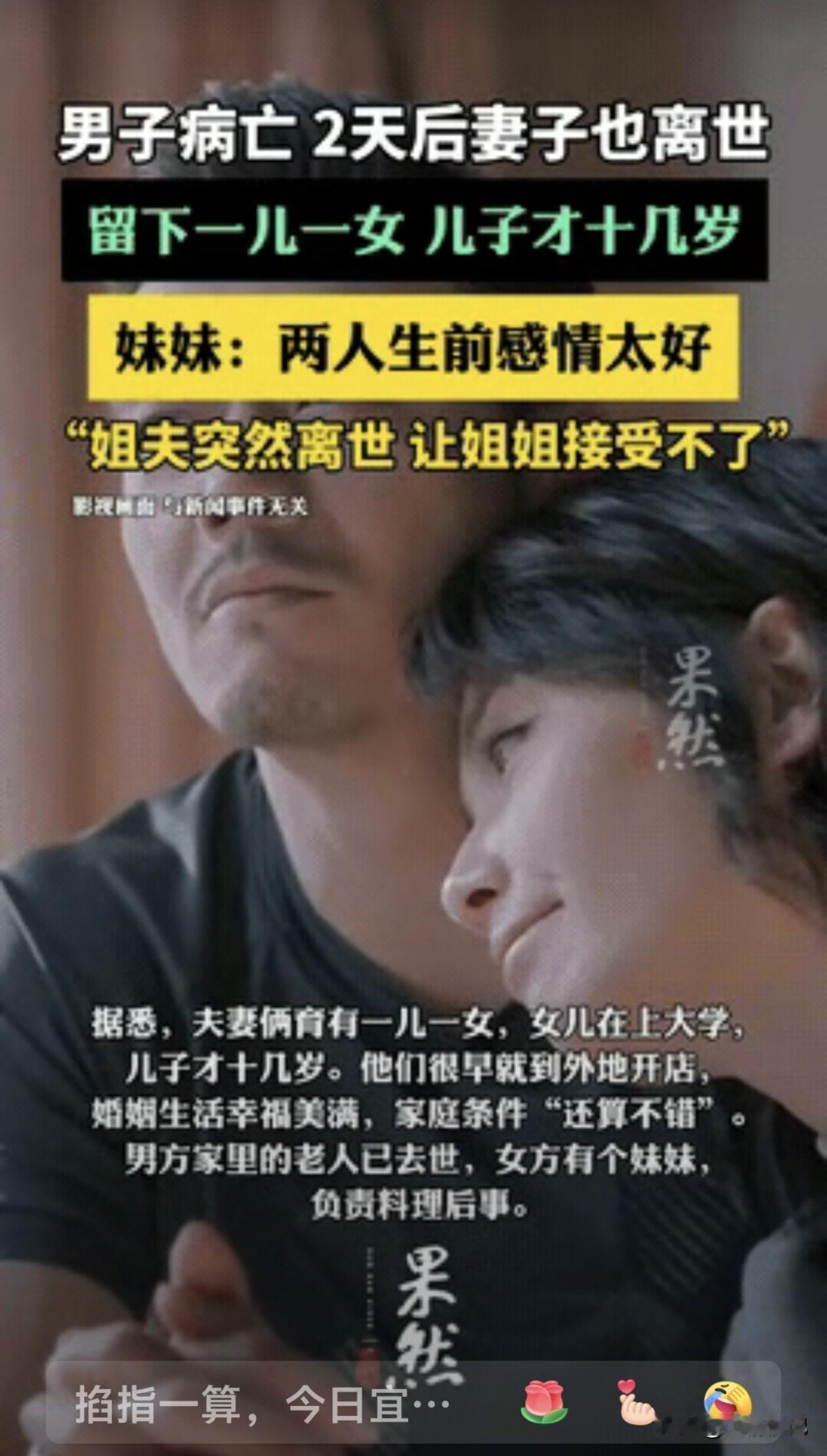【破防了…】安徽淮北一对夫妻,52岁丈夫突发离世,两天后,妻子紧随而去。妹妹含泪说:他们结婚18年,从没红过一次脸。翻看他们社交账号,全是跳舞、旅行、一家四口的笑脸…谁能想到,最后一条动态,竟成了永别?他们的爱情,没有轰轰烈烈,却用一生写完了最动人的“生死相随” 安徽淮北,一对结婚18年的夫妻,几天之内先后离世,一个走,另一个撑了两天,也跟着去了。 不是殉情,不是意外,是心碎。 52岁的丈夫,突发疾病,抢救无效走了。 妻子张女士,整日呆坐,不吃不喝,谁劝都没用。 两天后,她也突发状况,送医抢救无效,走了。 他们的美容美发店,卷帘门关了好几天。 门前摆满了花,没人说话,只有风在吹。 他们不是有钱人,就是一对普通夫妻,开着一家小店面,靠手艺吃饭。 可他们的日子,过得比谁都甜。 翻看他们的社交账号,全是笑。 结婚18周年,两人牵手跳舞,他笨拙地跟着节奏晃,她笑得眼睛弯成月牙。 七夕那天,一家四口合影,女儿在中间,儿子搂着爸妈,幸福得像一张全家福模板。 她爱跳舞,他从不嫌烦,扛着手机跟拍;她想去哪玩,他放下店就走。 邻居说,他们从没红过脸,连声音高一点都没听过。 这样的感情,现在还有吗? 有,但它走了。 更让人心碎的是,他们留下了一双儿女。 女儿上大学,儿子才十几岁。 昨天还是爸妈的孩子,今天就成了没爹没妈的人。 妹妹赶来处理后事,一句话让全网破防:“两人生前感情太好,我们会带好孩子。” 没有抱怨,没有哭天抢地,只有一句承诺。 可这句话背后,是多少个睡不着的夜,多少次想放弃的瞬间? 有人说,她不是病死的,是心死的。 一个人活了半辈子,另一半突然没了,心就空了。 空到撑不住,空到连呼吸都疼。 在这个闪婚闪离、恋爱像换衣服的时代, 他们用一生证明:真的有人,把另一个人活成了命。 他们不是活腻了,是活够了。 18年,20年,几十年,他们早把日子过成了一个人。 现在,店还在,招牌还在, 可再也不会有人笑着迎出来:“来啦?等你好久了。” 我们总说要轰轰烈烈,要山盟海誓, 可真正的爱情,是每天一起起床,一起关店,一起跳舞,一起变老。 他们没说过“生死相随”, 但他们,真的做到了。 评论区很多人问:这值得吗? 我想说:不问值不值,只问有没有。 有的人一生都没遇到,而他们,拥有过。 愿天堂没有病痛,愿两个孩子被世界温柔以待。 也愿我们,都能珍惜那个愿意陪你走到最后的人。