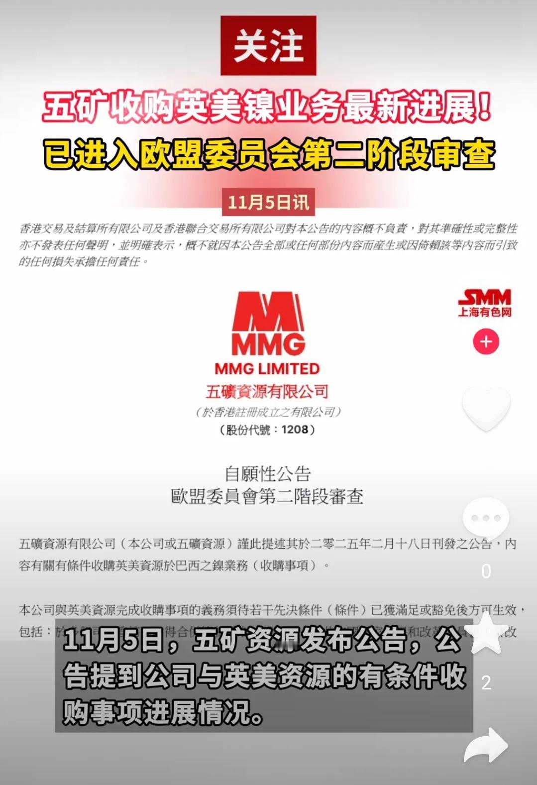 11月5日,欧盟正式宣布,要调查英国矿业巨头英美资源集团把镍矿业务卖给中国五矿集团这事。 镍是欧盟新能源与不锈钢产业关键资源,2024年其镍市场规模达93.9亿美元,供应安全被高度重视。 该交易涉5亿美元收购全球第三大镍矿,欧盟担忧影响自身供应链,此前提出的补救措施未获认可。 中方已表态反对经贸问题政治化,企业也将配合调查。公平竞争是国际经贸基石,将商业行为政治化不利于全球产业链稳定。