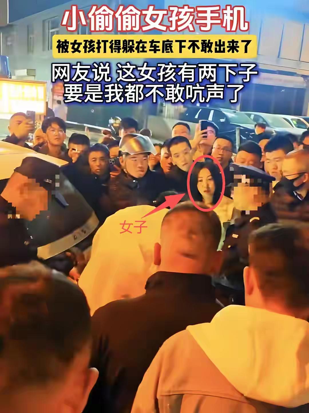 "这小偷算是栽到家了!"山西街头,一小偷偷女子手机当场被抓,本想拔腿就跑,谁料女子反应极快,反手就将他放倒在地。眼镜飞出去,人被打懵,最后只能钻车底求自保,直到警察赶到才"获救"。网友调侃:就这身手,往后在偷界还怎么混? 据华龙网11月6日消息,目击者称小偷戴着眼镜,年纪不大,在偷女子手机时当场被抓包,他本想逃跑,结果女子反应迅速,直接将他放倒在地。 女子疑似练家子,出手快准狠,半小时里把小偷打得眼镜飞落,完全摸不清方向,小偷毫无招架之力,只能找机会钻进车底,说什么也不肯再露头。 路人越聚越多,有人看不下去报了警,女子站在车旁大声叫骂,小偷躲在车底瑟瑟发抖,双方僵持不下,直到警察赶到。 警察到场后劝了许久,小偷怕再被打,不敢出来,直到警察许诺"没事的,出来吧",他才哭哭啼啼、畏畏缩缩地钻出,第一件事就是跪地满世界找眼镜。 事情传开后,网友一边倒称赞女子是"当世女侠",但也有人指出:小偷可恨,动手解气,可万一打出好歹,有理也变没理,最稳妥还是报警,不过经此一遭,小偷怕是要留下心理阴影,往后要么金盆洗手,要么只能远走他乡。 对于这件事情,大家有什么看法? 【免责声明]文章案例过程、图片都来源于网络,无低俗等不良引导。如涉及案件版权或者人物侵权问题,请及时联系我们,我们将删除内容!特别说明,本文不存在捏造事实。