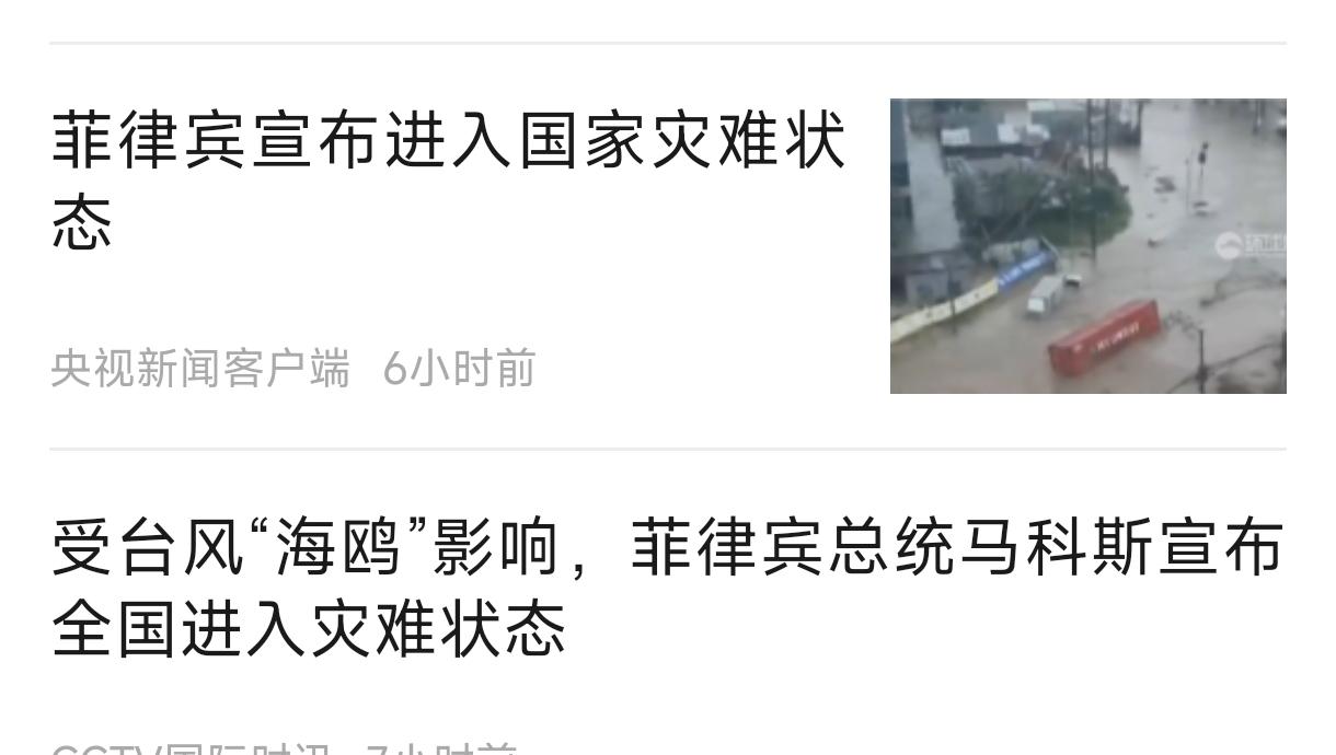菲律宾又宣布“进入国家紧急状态”,是故意的,博眼球而已。 只不过遭到台风影响,损失没有那么大,之所以“宣布紧急”,是三个原因。 第一,夸大灾害影响,抵消民意,因为这是天灾,但首先是人祸,资金挪走了,预备不足。 第二,企图骗取国际同情,大概又想道德绑架,企图让中国“掏钱”。 第三,欠债不还。 事实上,菲律宾没那么严重,而且还在南海挑衅,十分有余力。不要信息他们的假话。 现在菲律宾治安极差,国人能不去还是不要去。至于菲律宾水果,遭災了,有毒的。