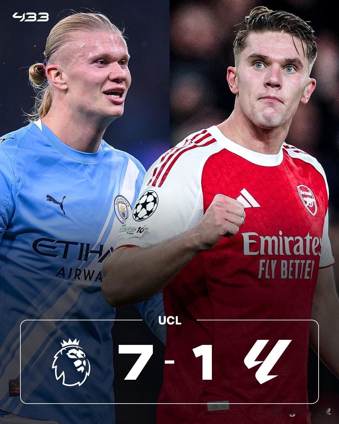 在与其他四大联赛的球队交手过程中,英超球队也占据优势。 本赛季至今,英超球队在欧冠赛场与西、德、意、法的联赛球队交锋的14场比赛中取得10胜2平2负的战绩,在与西甲对手8组交锋中,英格兰俱乐部赢下7场: 毕尔巴鄂0-2阿森纳 热刺1-0比利亚雷亚尔 利物浦3-2马德里竞技 纽卡1-2巴塞罗那 比利亚雷亚尔0-2曼城 阿森纳4-0马德里竞技 利物浦1-0皇家马德里 纽卡2-0毕尔巴鄂