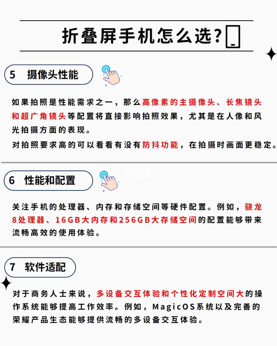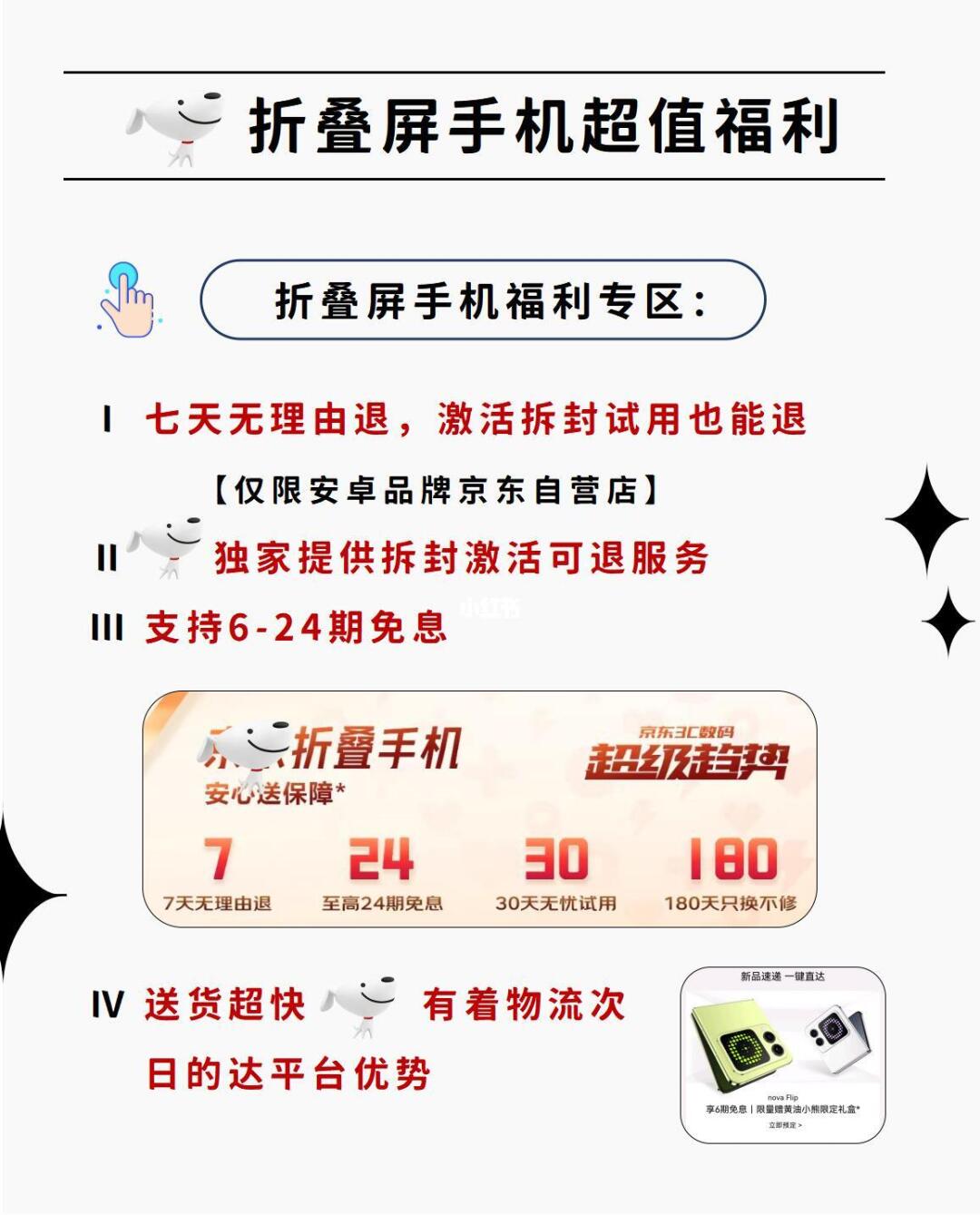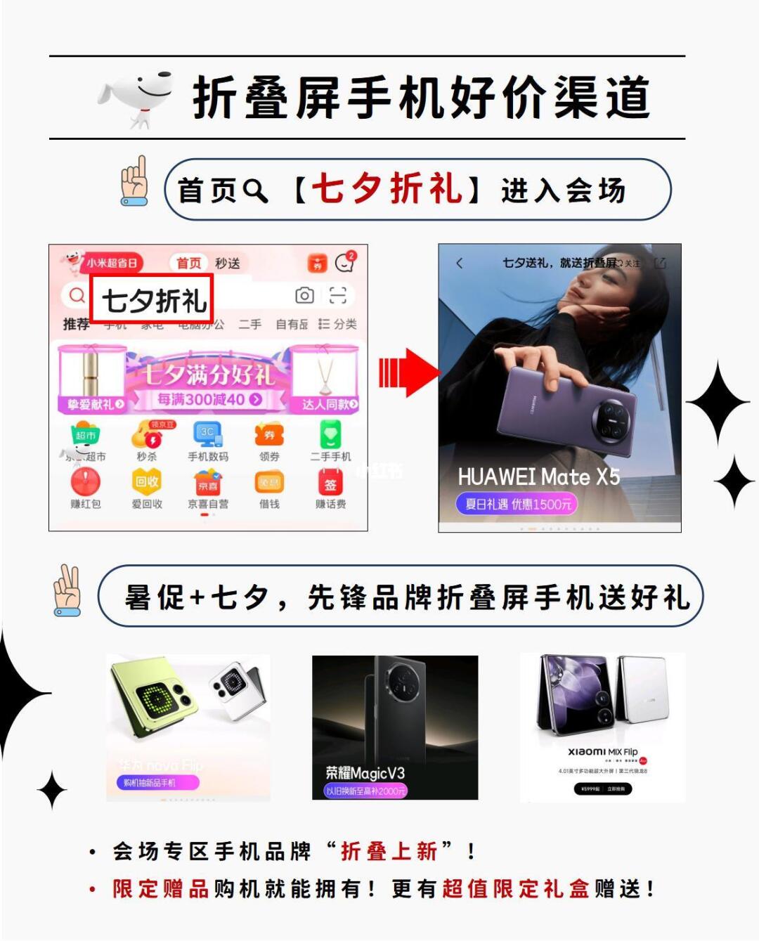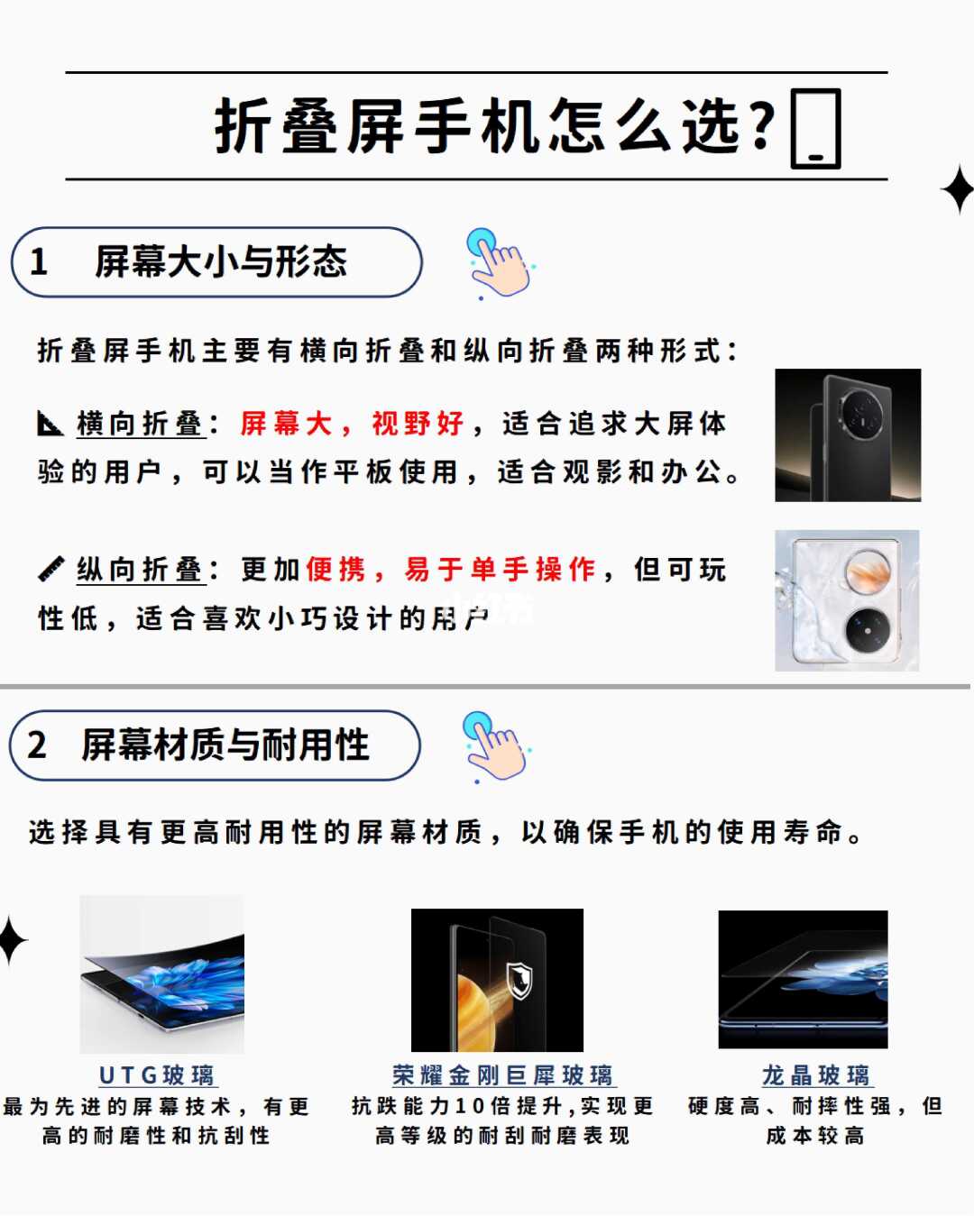 七夕将近👫,又到了开始考验各位送礼人的情商到了!如果你的朋友是数码爱好者📱,那折叠屏手机真的很可以!折叠屏手机作为一种新兴的智能手机形态,不仅提供了更大的屏幕体验,还兼具便携性和创新性!想要选好,这篇攻略将帮助你做出明智的选择📄。 1⃣屏幕大小与形态 🔺横向折叠:屏幕大,视野好,适合追求大屏体验的用户,可以当作平板使用,适合观影和办公。 🔺纵向折叠:更加便携,易于单手操作,但可玩性低,适合喜欢小巧设计的用户 2⃣屏幕材质与耐用性 选择具有更高耐用性的屏幕材质,以确保手机的使用寿命。 3⃣铰链设计与折痕 选择采用高强度材料制造的铰链,可以保证手机的使用寿命,目前折叠屏的铰链大多能折叠20~40万次,可以达到10年使用时间,‌满足大多数用户的日常使用需求。 4⃣电池续航与快充 续航能力和充电速度也是重要的考量因素。电池容量越大,续航能力越好。 🔺快充技术:支持快充技术的手机可以在短时间内充满电,一般在60W以上左右就可以。 🔺长续航:选择电池容量较大的机型或搭配大功率充电器的手机,可以确保一天的正常使用。 5⃣摄像头性能 🔺高像素的主摄像头、‌长焦镜头和超广角镜头等配置将直接影响拍照效果,‌尤其是在人像和风光拍摄方面的表现。 🔺对拍照要求高的可以看看有没有防抖功能,在拍摄时画面更稳定。 6⃣性能和配置 关注手机的处理器、‌内存和存储空间等硬件配置。‌例如,‌骁龙8处理器、‌16GB大内存和256GB大存储空间的配置能够带来流畅的使用体验。 7⃣软件适配 对于商务人士来说,‌多设备交互体验和个性化定制空间大的操作系 统能够提高工作效率。‌如‌MagicOS系 统以及完善的荣耀产品生态能够提供多设备交互体验。‌ 折叠屏手机好价渠道⬇️ 🐶东首页🔍【七夕折礼】进入会场 ✨暑促+七夕,先锋品牌折叠屏手机送好礼 🔺会场专区手机品牌“折叠上新”! 🔺限定赠品购机就能拥有!更有超值限定礼盒赠送! ✨会场福利专区: 🔺七天无理由退,🐶东专属提供激 活拆封试用也能退 【仅安卓品牌🐶东自营店】 🔺支持6-24期免息,不用担心手机太贵了 🔺送货超快,🐶东有着物流次日的达平台优势