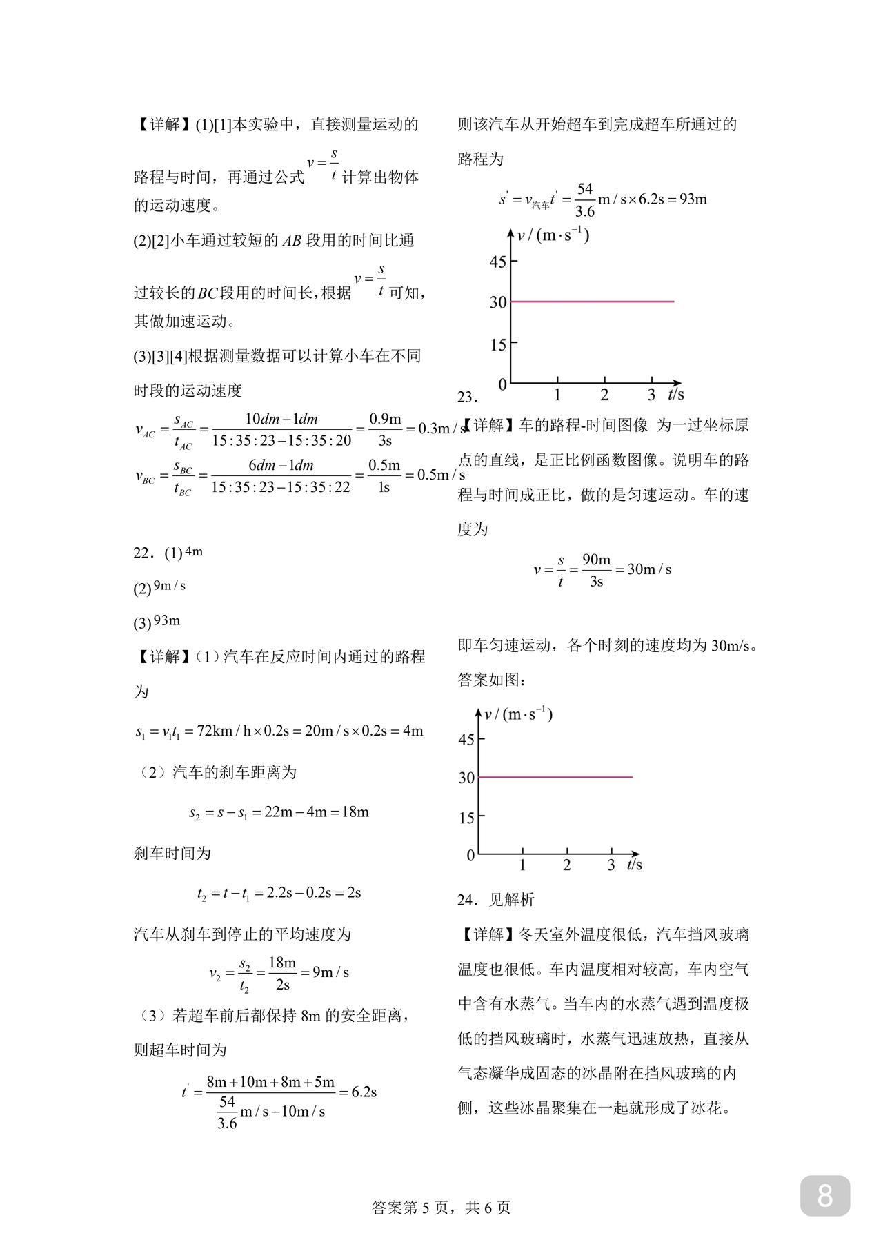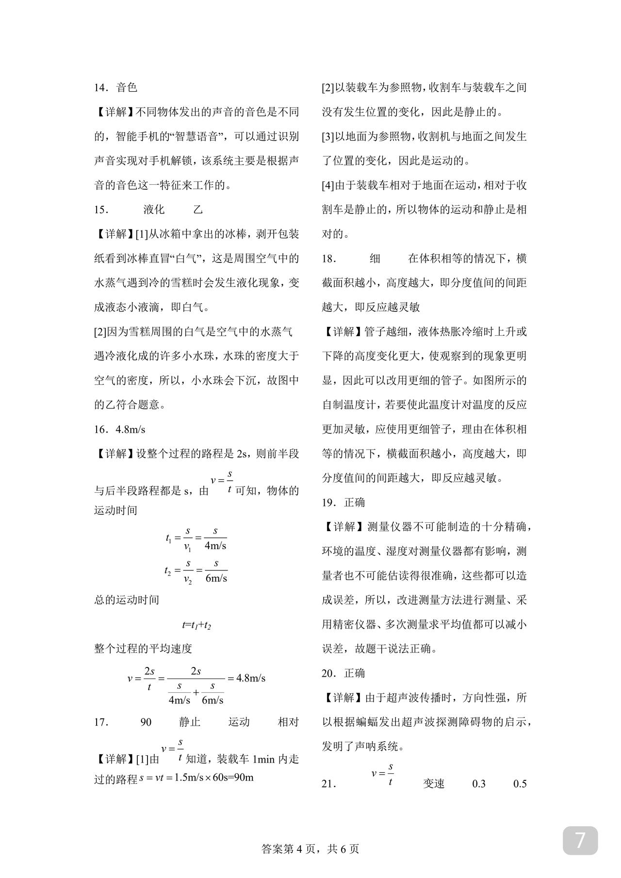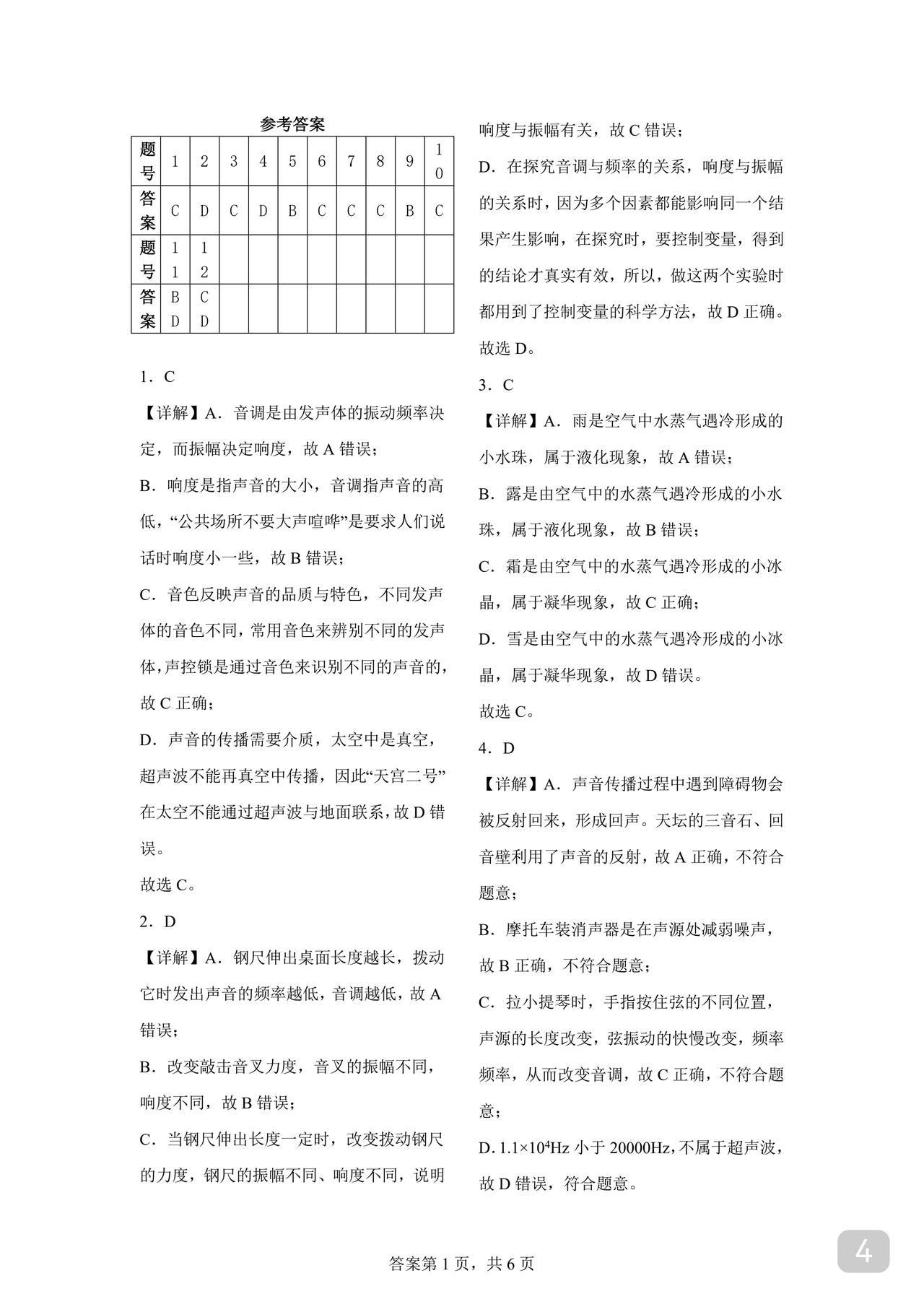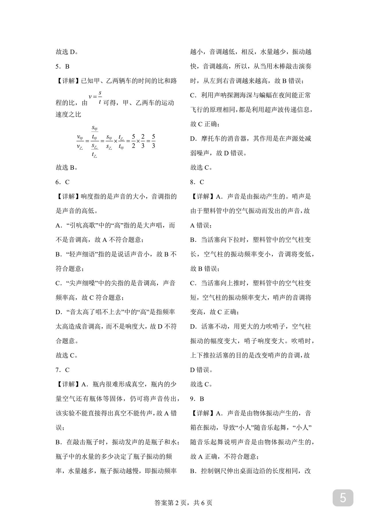 初二物理期中模拟卷 人教版•适中难度 含详细参考答案 建议周末测练加固 初中物理从入门到精通:基础讲义