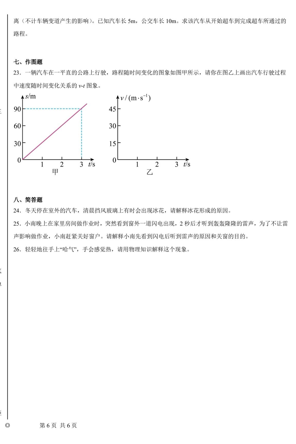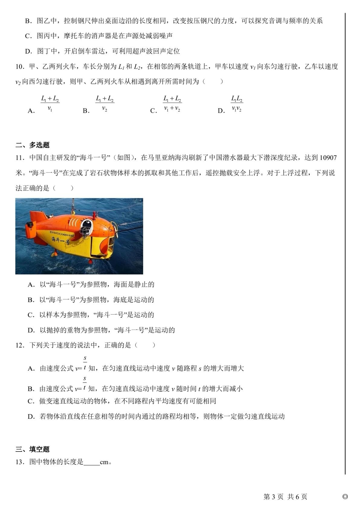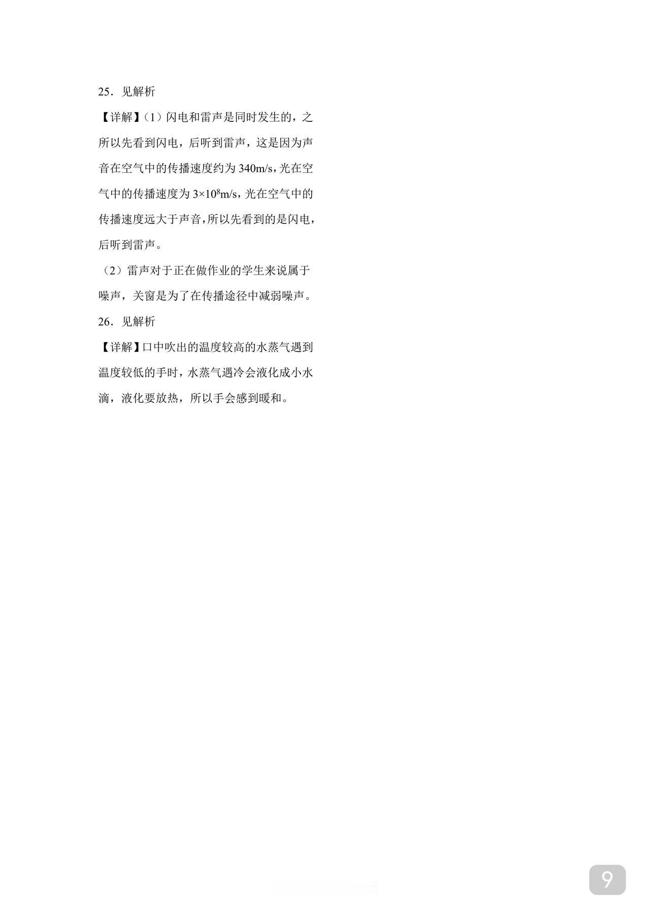 初二物理期中模拟卷 人教版•适中难度 含详细参考答案 建议周末测练加固 初中物理从入门到精通:基础讲义