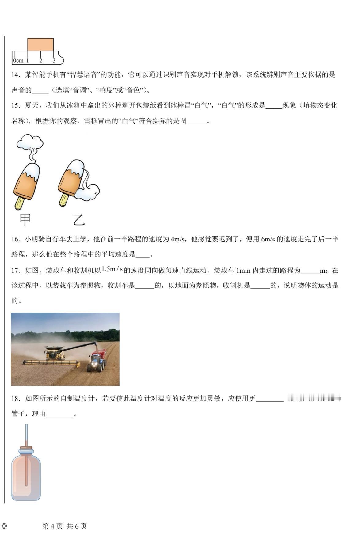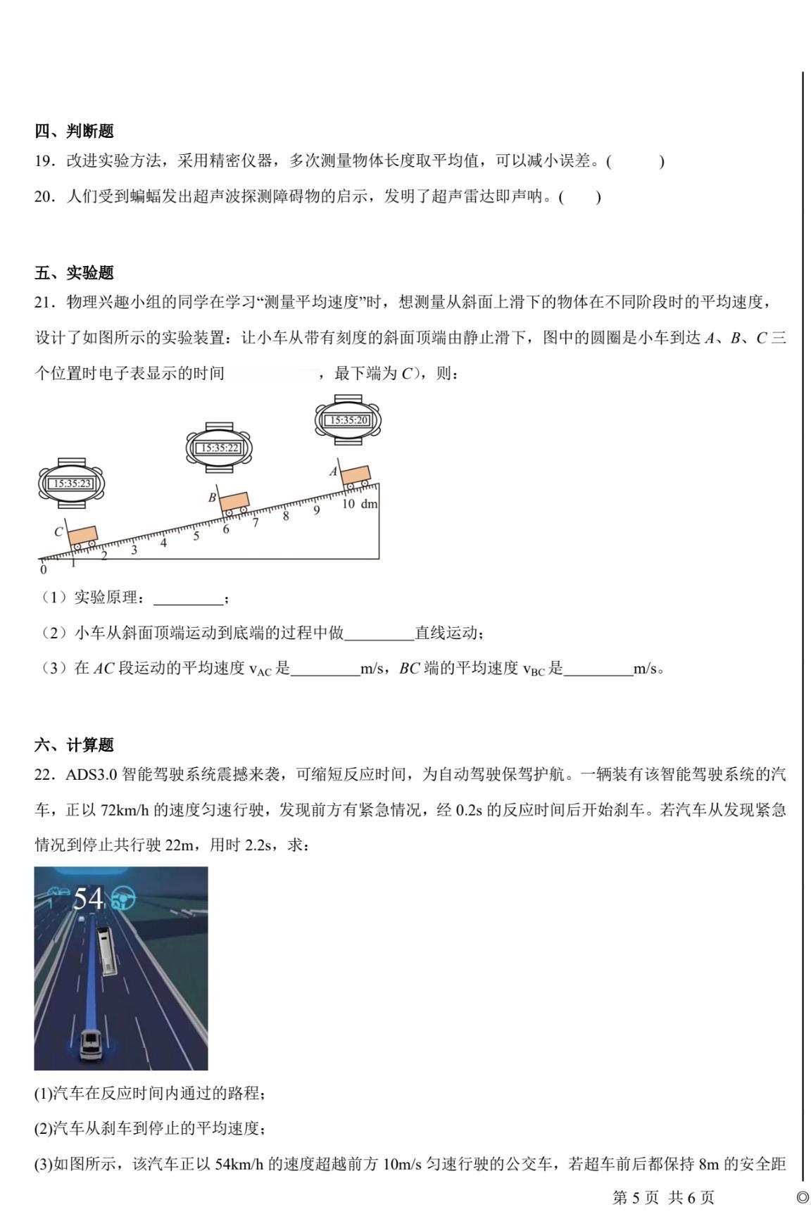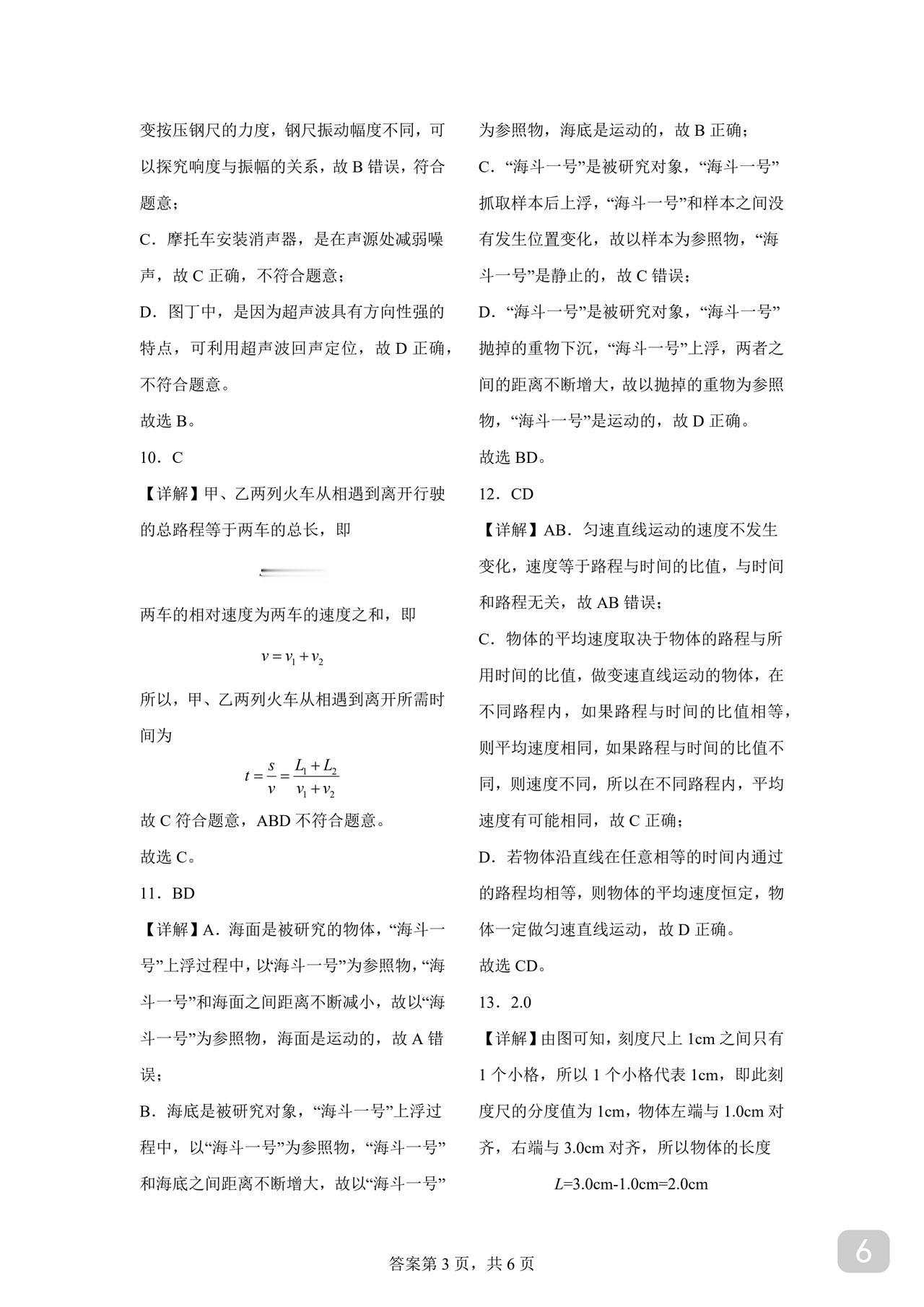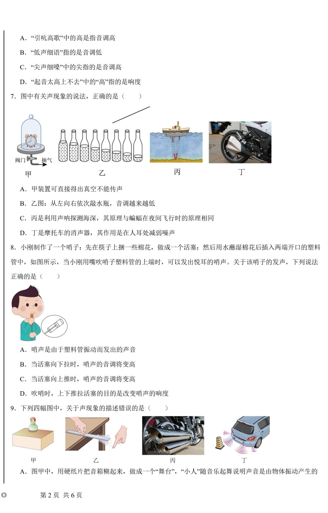 初二物理期中模拟卷 人教版•适中难度 含详细参考答案 建议周末测练加固 初中物理从入门到精通:基础讲义