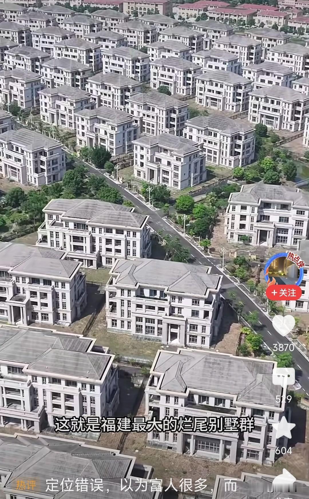 这到底发生了什么,难以想象,这么多烂尾楼就这样摆着,这样的楼都已经建好了,为什么没有出售呢? 这也太浪费材料和人工了,建好了没人住,这么多资源就放弃了,这是福建烂尾楼群。 其实全国各地都有烂尾楼,但是像福建这么多烂尾楼还是第一次看到,这也太多了。 为什么没有人住呢,没有规划吗?还是私自开发的吗?看样子也是有规划的,这样浪费资源实在可惜。你的家乡有烂尾楼吗?