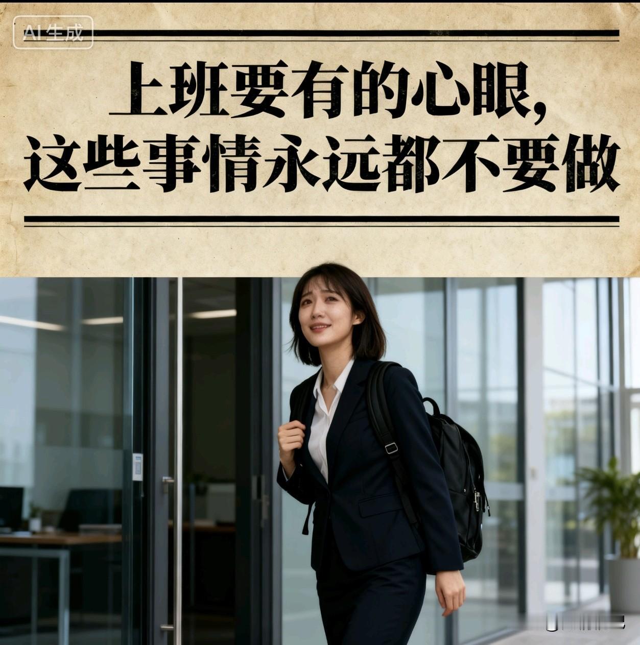 上班要有的心眼,这些事情永远都不要做,记住了,少走五年弯路。 1. 重要的事,一定要发邮件。 领导嘴上说“你去做吧”,你不留字据,出了事他能说“我没让你这么干”。 白纸黑字写清楚,谁安排的、什么时候要、具体要什么,别怕啰嗦,这是你的护身符。 2. 做方案,永远留三个版本。 初稿、修改稿、终稿,全都存好。 哪天领导说“不是这个意思”,你打开文件夹:“您看,这是您上周确认的版本。” 3. 开会别光听,散会前一定要问一句: “刚才说的任务,谁负责?什么时候交?” 然后发个会议纪要,抄送所有人。 别怕显得较真,谁不认账,记录就是证据。 4. 汇报工作,功劳别一个人扛,也别让别人抢。 “这个项目小李负责数据,小王对接客户,我这边整合方案。” 话说在明处,谁也别想摘桃子。 5. 同事开口借钱,能不借就不借。 真要帮,转账一定备注“借款”,哪怕关系再好。 救急可以,救穷别上头。钱一沾,感情就变味。 6. 别傻傻加班。 干完活就走,别表演勤奋。 效率高的人,10点下班;效率低的人,熬到凌晨也交不出东西。 身体是自己的,别拿命换几句表扬。 7. 领导说“明年给你升职”“项目成了给你分红”? 别信。 听归听,但一定要问:“那资源怎么配?预算批了吗?” 画饼不落地,吃多了会撑死。 8. 客户或领导改需求,别听完就干。 回来写一条:“您刚说的三点修改,我理解是:一、……二、……三……,对吗?” 发过去确认。 不然改十遍,他还说“不是这个意思”。 9. 新同事来问东问西,帮可以,但要留痕。 聊天记录别删,重要操作截个图。 万一他操作错了反咬你“教错了”,你有证据才站得住。 10. 做项目,提前想“哪里会出事”。 汇报时别说“可能有问题”,要说:“可能有X风险,我建议Y方案应对。” 老板不怕问题,怕你只会甩锅。 11. 评优评先,别到处说自己想上。 闷声准备材料,材料够硬,谁也拦不住。 嘴上喊得响,最后没干货,反而招人烦。 12. 离职前,重要流程录个屏。 交接给谁、教了什么、留了什么文档,全都留底。 别以为好聚好散就万事大吉,真有人在你走后甩锅。 13. 团建玩游戏,带羞辱性的惩罚,直接说“我不参加”。 不用解释,微笑就好。 合群不是出卖尊严,底线守住了,别人反而更尊重你。 14. 借用公司设备、工具,哪怕一支笔,也要登记。 谁借的、什么时候还、有没有损坏。 出了问题,账不糊,人不背。 15. 绩效考核前临时抱佛脚?晚了。 平时就把工作成果存好。 哪天完成了什么、谁表扬过、客户反馈如何,随手记两笔。 到考核时,材料一拉,底气十足。 16. 讨论方案,别张嘴就说“你这不行”。 换成:“你这个方向很好,我补充一点……” 话一软,事就好办。大家目标一致,别搞成对立。 --- 职场不是战场,但也别当傻白甜。 不是教你算计,是教你保护自己。 你认真干活,也得有人看见,有人认账。 这些“心眼”,不是心机,是成年人的基本生存技能。 共勉。 上班工作意义 职场处事准则 职场必备小技巧