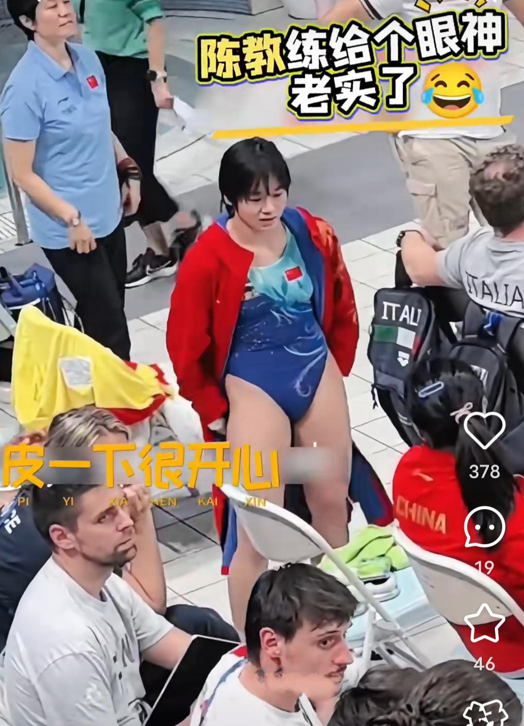 陈教练一个眼神,全红婵老实了 近日广州全运会正在如火如荼的进行着,全红婵遇到自己小伙伴的比赛,也是全程观看,很多时候激动的还是边看拍掌,这不昨天陈教练一个颜身,小全老实了,真是默契呀! 网友纷纷留言,这师徒全靠眼神交流。