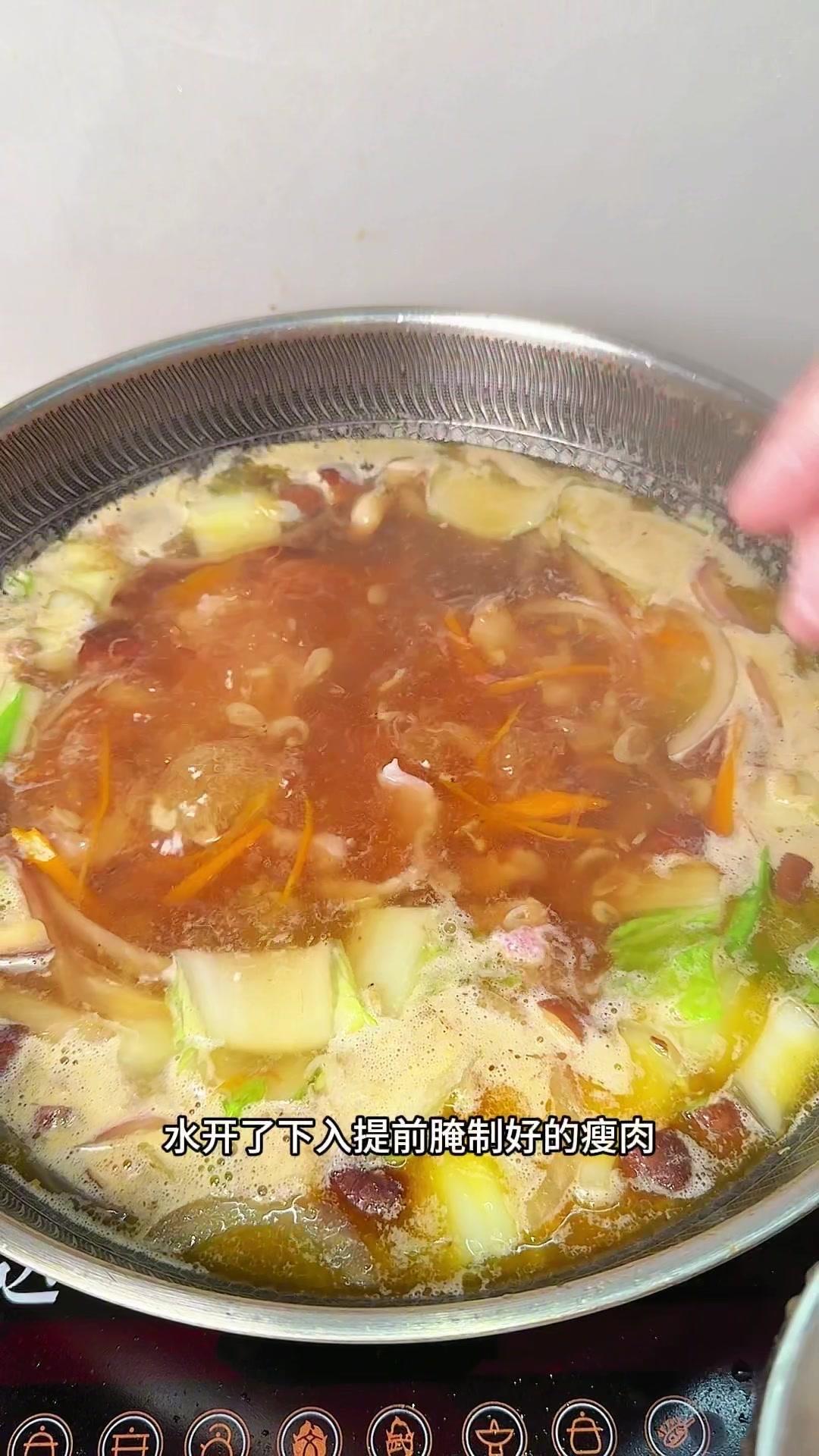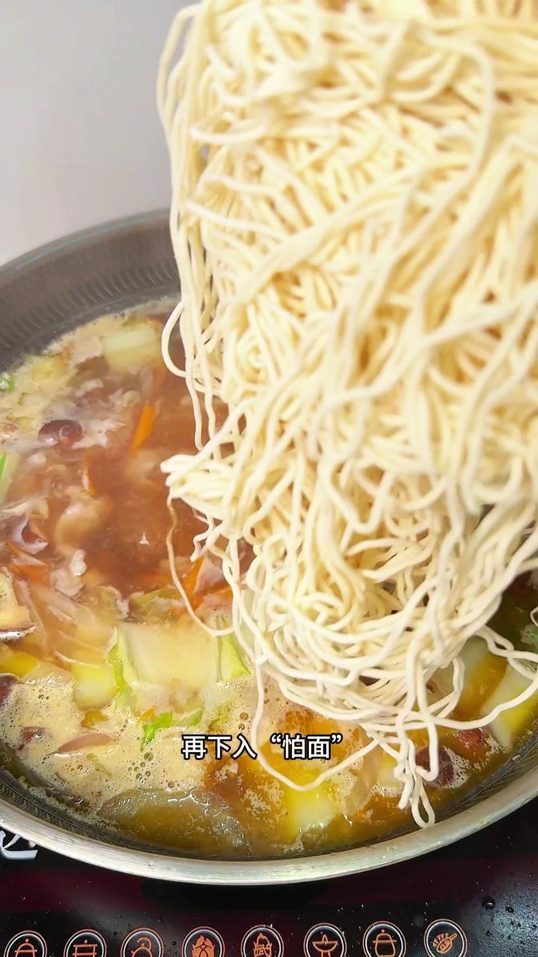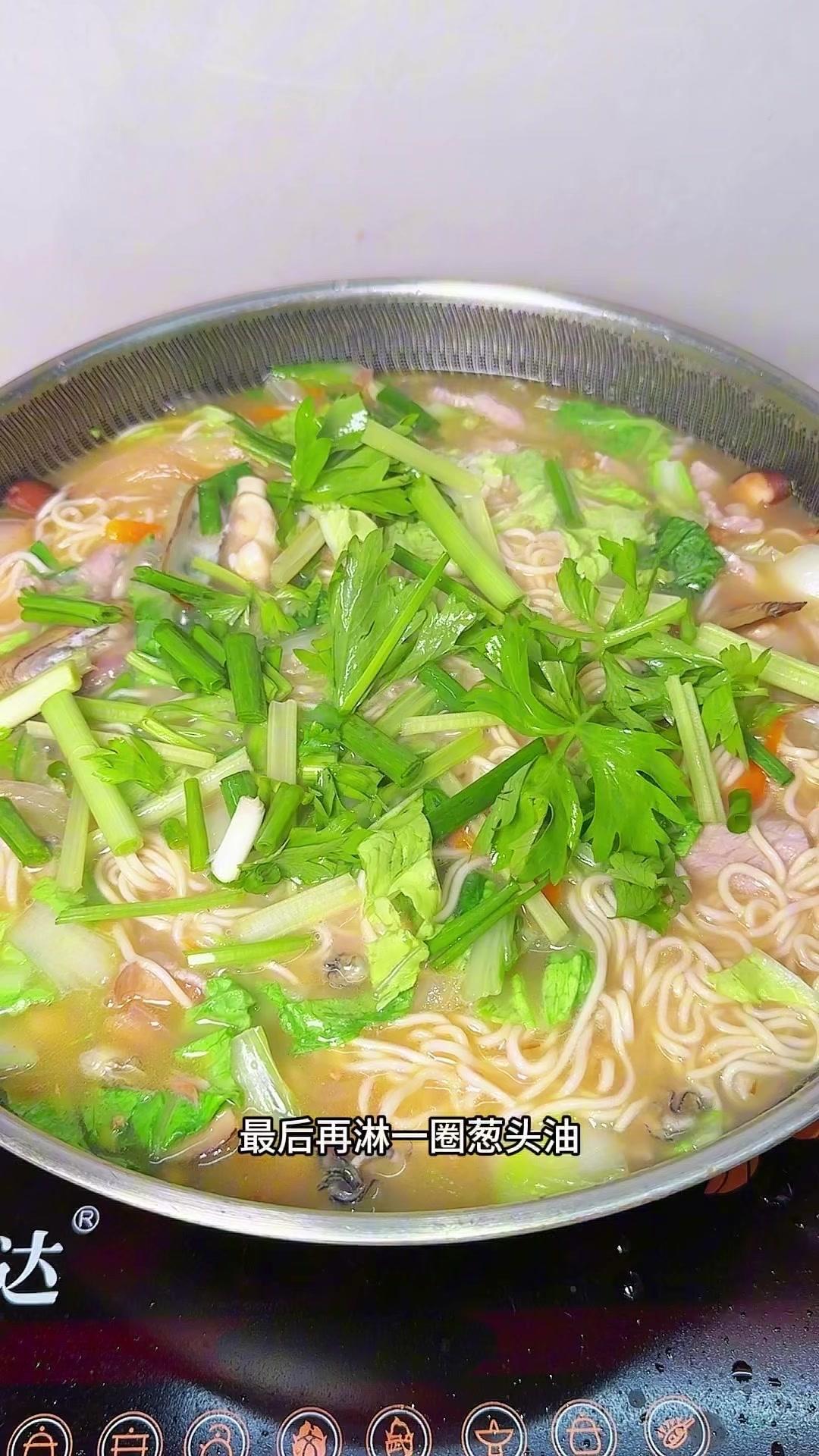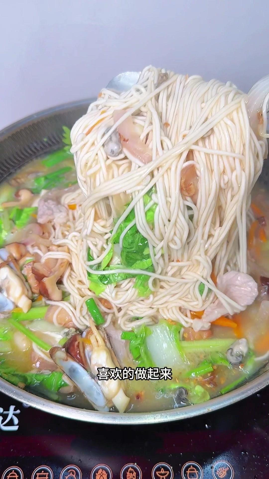 莆田人从小吃到大的卤面真的绝了!汤汁浓郁挂壁,面条筋道弹牙,这谁顶得住啊! 准备好这些食材,跟着步骤做就能复刻~ 1️⃣先把五花肉煸出油,再下葱姜蒜熬香,这可是灵魂哦!接着放洋葱、胡萝卜、香菇、虾皮炒出香味,淋一勺福建老酒炝个锅,再下“桑拿马”炒一炒。 2️⃣加开水煮滚,水开后放入提前腌制好的瘦肉,再下“帕米”,有条件的可以加海鲜,表面铺一勺葱头油,盖盖大火煮开。 3️⃣调味加盐、鸡精,再放入味菜,最后淋一圈葱头油,热气腾腾的莆田卤面就做好了! 自己做的卤面料超足,每一口都是满足,喜欢的快动手试试~