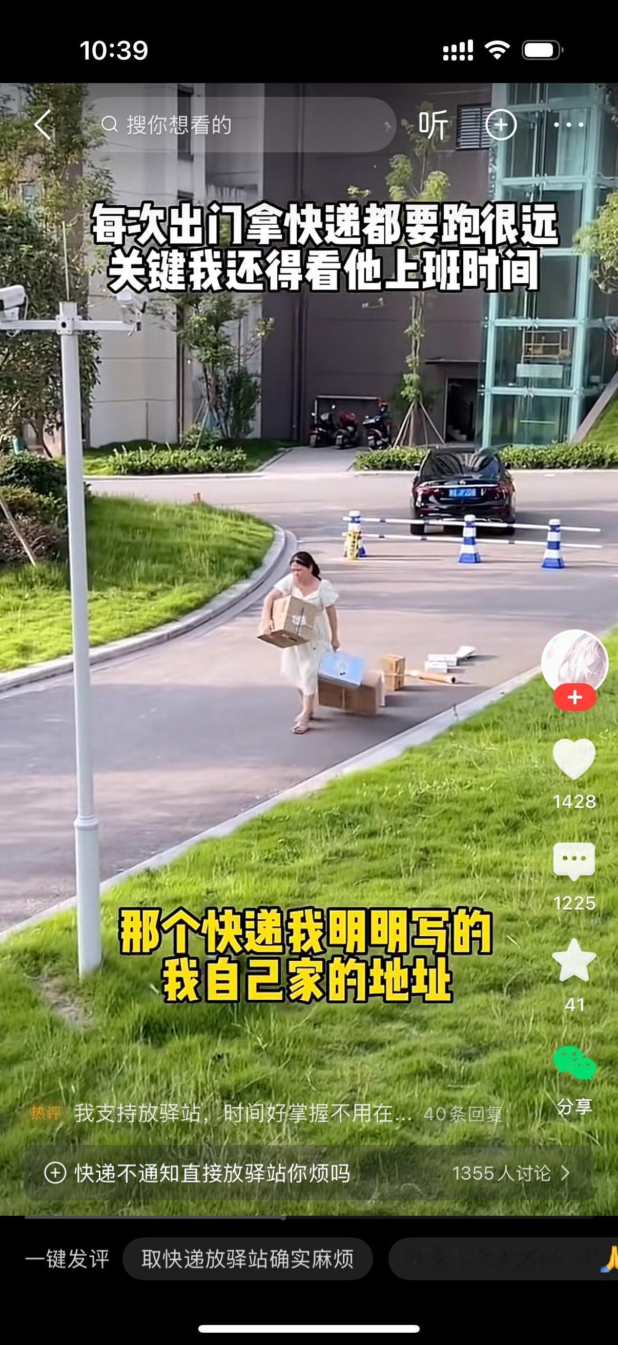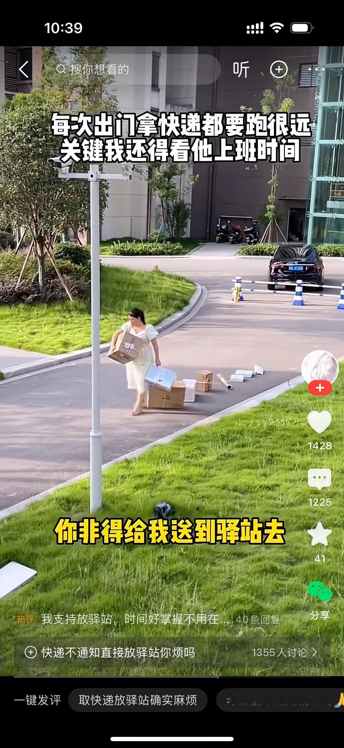 女人在小区内拖着一大堆快递行走,非常艰难。她说自己经常网购,那些快递小哥为了省事就是把快递丢菜鸟驿站。女子在网上吐槽,到底是哪个大聪明发明了菜鸟驿站这个东东,自己明明写的是家里的地址,你非得给我送到驿站去?确实,这个驿站就是方便了送快递的,收快递的麻烦多了。