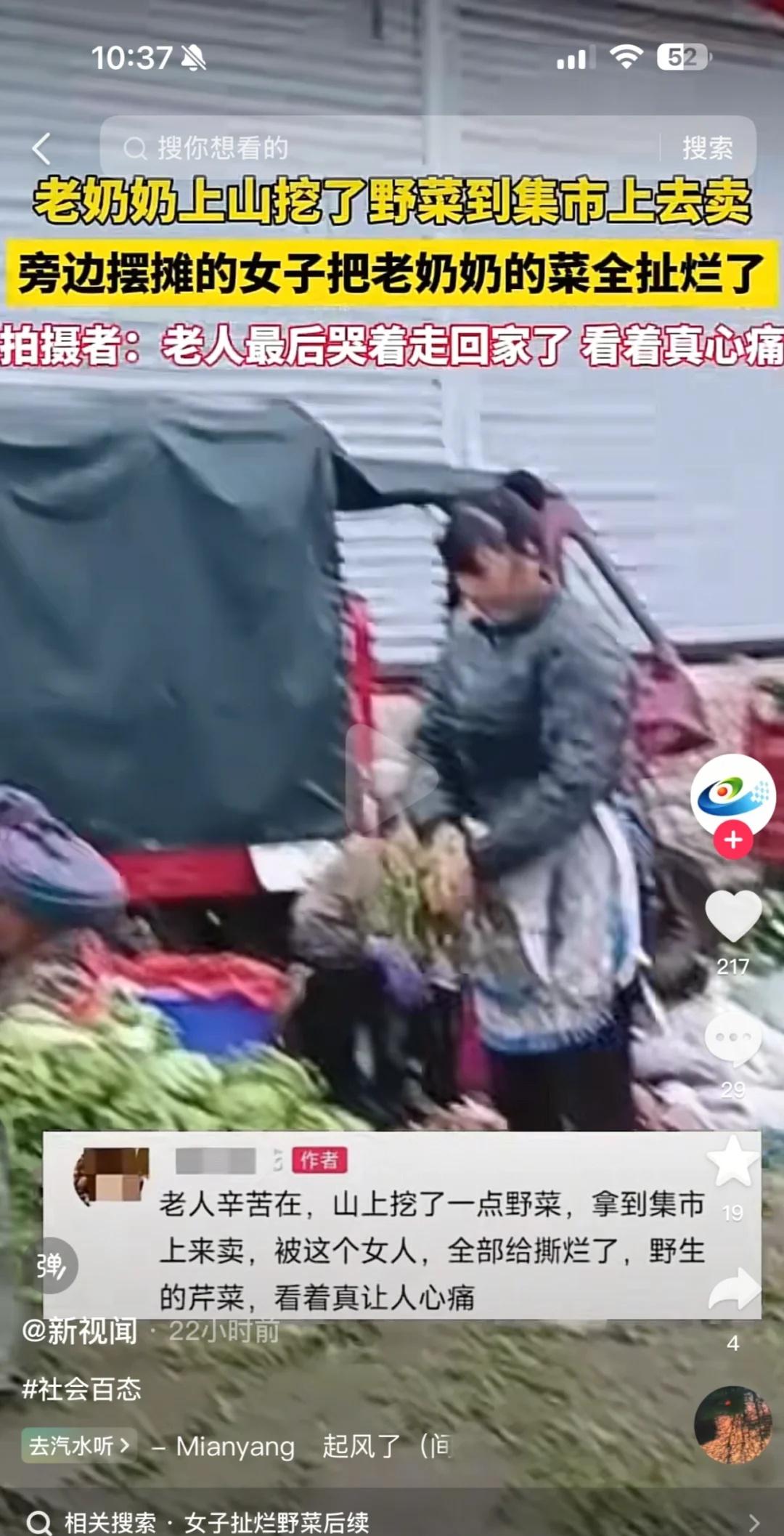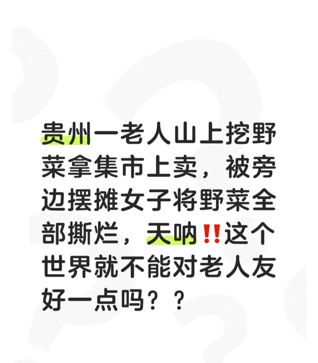 这个视频中老奶奶卖菜被撕烂 能不能有后续 最晚刷到贵州那位老奶奶的视频,心里堵得发慌,到现在还惦记着后续。一个老人幸幸苦苦挖的野菜在集市上卖,被旁边女子将老人挖的野菜全部撕烂,为什么要对手无寸铁的老人施以暴行,看了发视频的博主说是老人霸站了她的摊位,因为女子来晚了,看到老人霸占了她的摊位,所以导致这件事情发生。 有话就不能好好说吗??非要用最伤人的方式糟蹋人家的心血,老奶奶一边蹲在地上慌忙捡那些被撕得不成样子的菜,最后实在没办法,只能哭着走回家。 翻看评论区有网友说老奶奶是阿良寨嫁到大兴村的,家离镇上很远,有说那女子是附近村子的,平时就爱惹事。谁不知道这野芹菜长在坡上地里,冷天挖起来多费劲啊?老人一把年纪,风吹日晒挖来的菜,是她的生计也是她的体面,就这么轻易被这个女人给毁掉了! 看着老奶奶佝偻着身子,蹲在地上慌乱捡那些碎菜的样子,真的心疼到不行。明明无能为力,却偏偏看不得这样的人间疾苦。她哪里懂什么“占位规则”,不过是想找个地方卖点菜,换点生活费糊口罢了。这个世界,能不能对老人多一点善意啊?看了这个视频点赞量二十多万,当地是没有关注到吗?能不能给老奶奶一个公道啊!想追后续!!!老人 好人一生平安 老人倚老卖老 人间有大爱 关注老年人贵州 这个世界太颠了 神奇的地球 神奇的世界