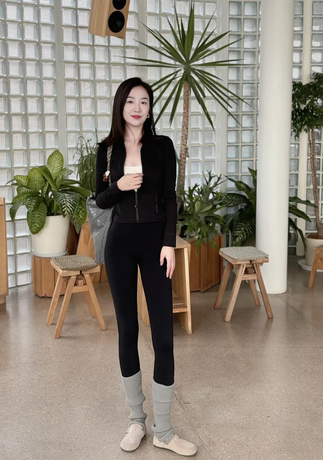 白色小内搭,黑色小线衣,彰显心目中女神形象
