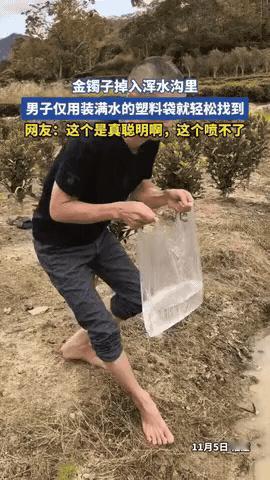 太有头脑了!福建,一男子金手镯不慎掉落,滚进了旁边浑水沟里!他在水里摸了半天,也没有找到,于是灵机一动,竟然找来一个口袋,装了一些清水,然后来到水沟里,只花了3秒钟,就找到了金手镯!网友:这个是真聪明啊,这个喷不了! 那条水沟刚下过雨,水和底泥混在一起,浑浊一片,能见度非常低。男子急得直接伸手在泥水里摸索,指尖插进泥里来回抠找,花了十几分钟,不仅手镯没摸到边,满手还都是泥垢,反而把水搅得更浑,连金镯子大概掉在哪个位置都快记不清了。 就在一筹莫展之际,男子找来一个完好的塑料袋,到附近水源处接满清水,并将袋口系紧。他提着这个水袋,顺着沟壁慢慢放入浑水中。 装有清水的塑料袋就是一个天然的“显微镜”,照见了悬浮的泥沙颗粒,下方的泥地清晰可见。男子握着袋柄移动观察,很快就在泥地里看见了那只金手镯,裹着薄泥的手镯就被捡了下来,整个过程不到5秒,远比之前盲目摸索高效得多。 干净的清水和浑浊的泥水之间形成了一个清晰的光学界面,就像一块临时的镜片,使得目光能够“穿透”浑浊,直接看清水底情况。有网友调侃道:“我缺的是这个方法吗?我缺的是金手镯”。 很多人第一反应可能是慌乱,而真正聪明的人,会先冷静下来,灵活运用手边简单的东西和掌握的知识来巧妙解决。 各位读者你们怎么看?欢迎在评论区讨论。