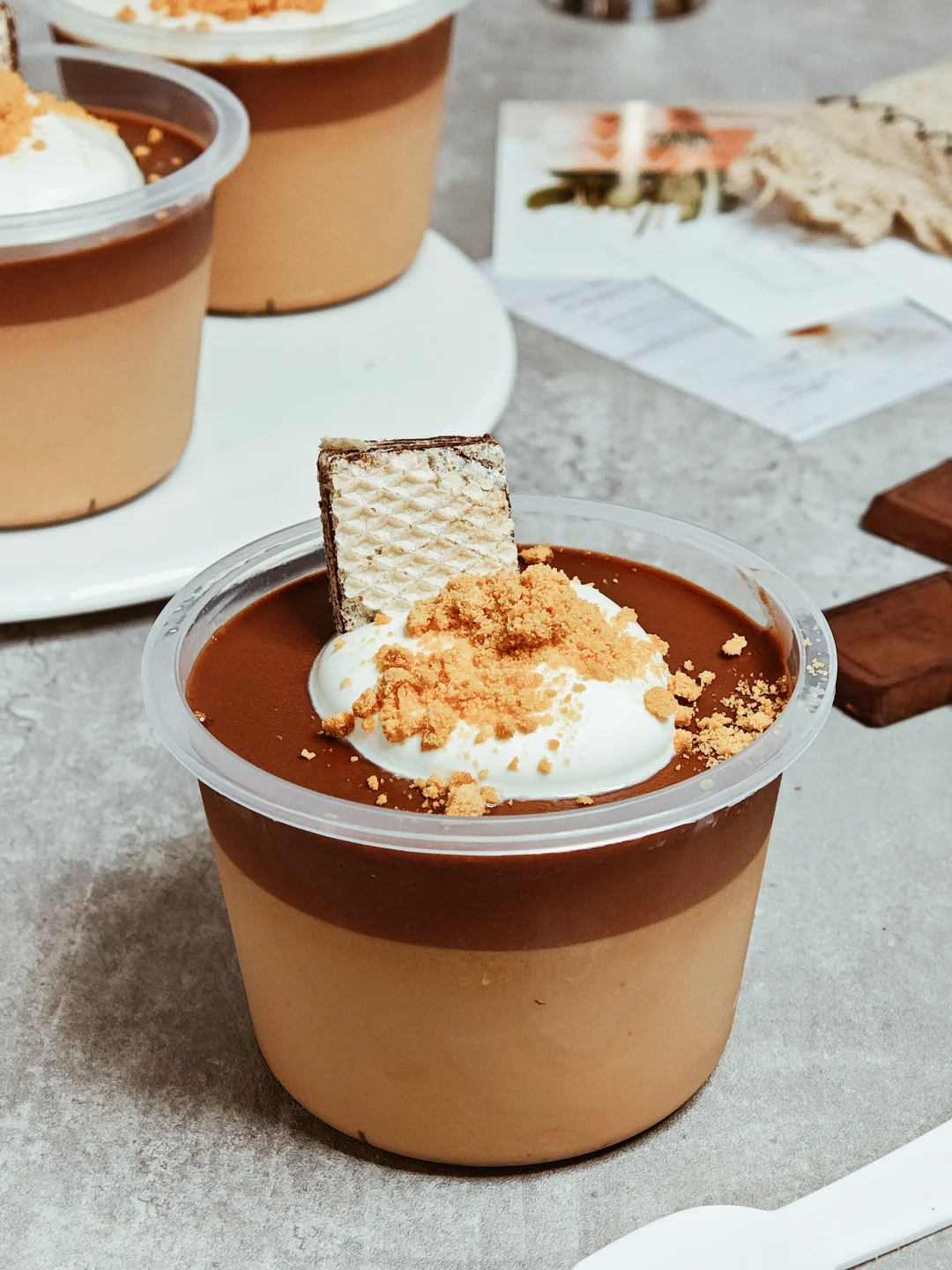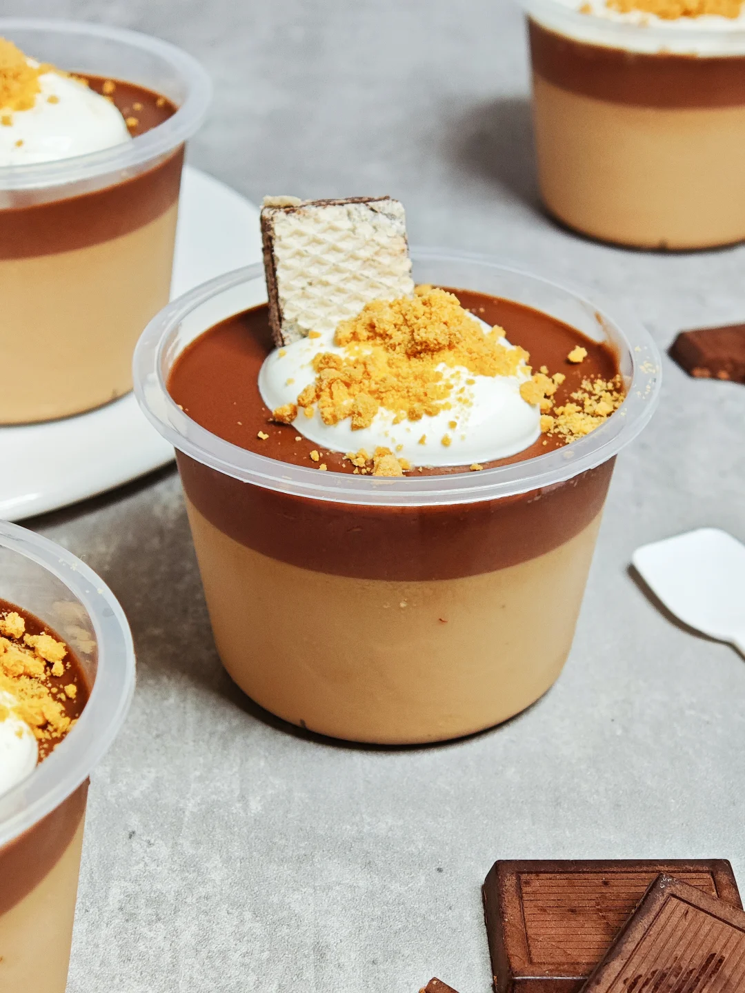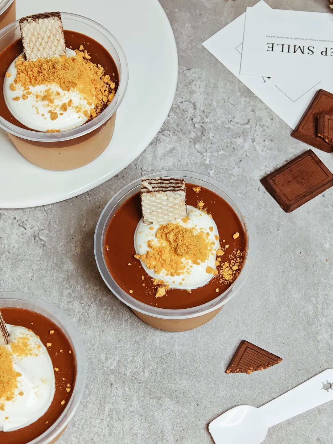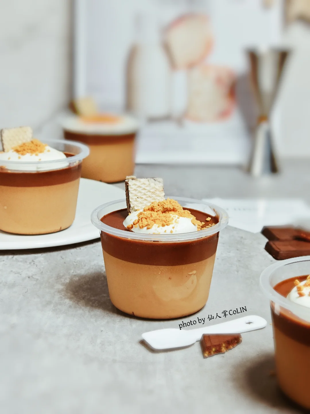 早C晚A的酒鬼宝宝们,今天的甜品也是加了有威士忌酒的生巧奶冻哦。 入口不仅没有呛喉的酒精感,跟伯爵红茶和淡奶油也融合的恰到好处[害羞R]上面再用生巧封存🍫层次丰富,一口上头❗而且还是免烤箱哦。 · 👩🏻‍🍳【所需食材:】 🥃威士忌伯爵红茶奶冻层: 牛奶500ml|淡奶油150ml|威士忌50ml|伯爵红茶10g|吉利丁片10g|细砂糖30g 🍫生巧奶冻层: 巧克力80g|淡奶油160g|黄油20g · 👩🏻‍🍳【制作步骤:】 ❶锅中倒入牛奶、淡奶油、伯爵红茶、细砂糖,开中小火煮出茶香后关火,盖上锅盖焖5分钟🕰️ ❷倒入威士忌搅拌均匀,加入冷水泡软的吉利丁片,搅拌均匀后过筛一遍 ❸倒入容器8分满,冰箱冷藏凝固 ❹生巧奶冻层🍫巧克力与淡奶油加热融化,搅拌均匀后,放黄油搅拌融化 ❺倒入容器,冰箱冷藏凝固。简单装饰一下[赞R]