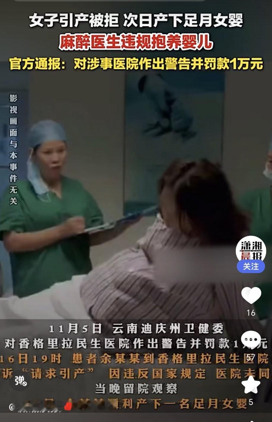云南迪庆州一女子引产被拒,诞下女婴被医生抱养。官方通报:对涉事医院作出警告并罚款