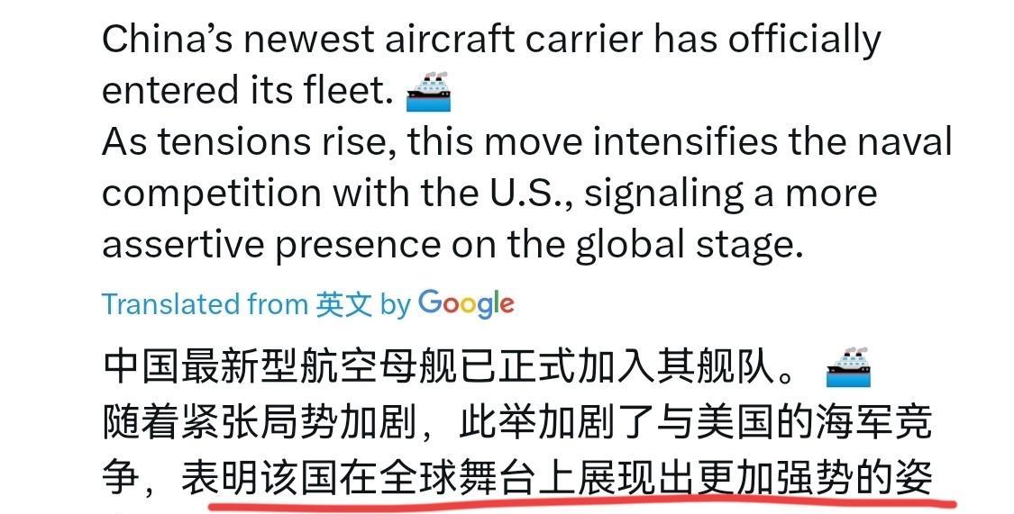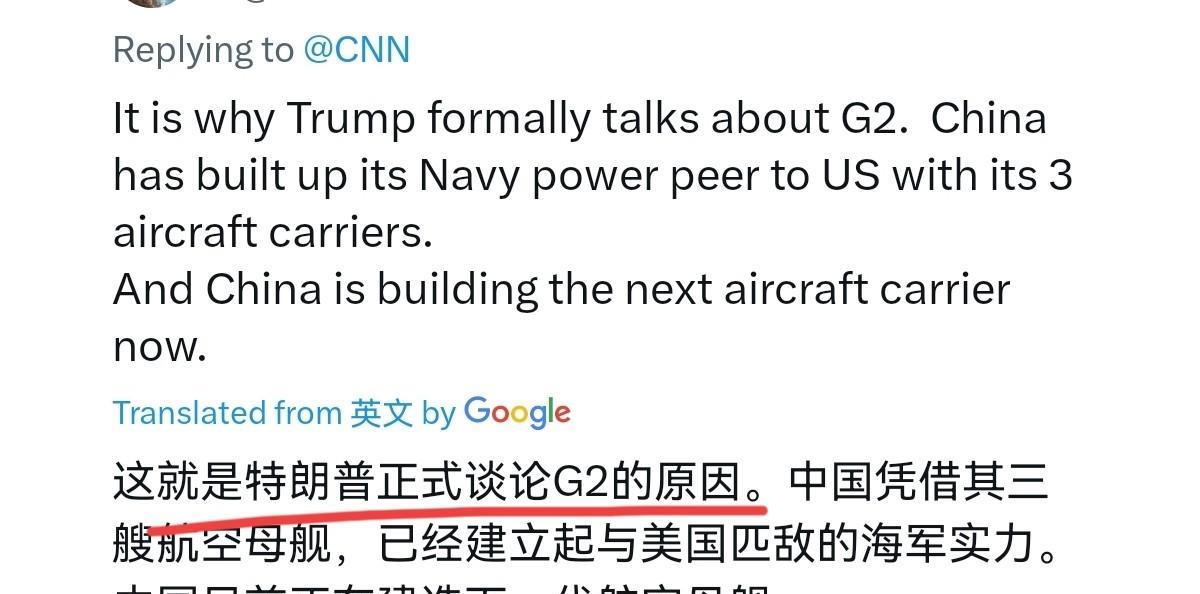 没想到福建舰入列,在国外引起的关注如此巨大!在我们发布福建舰入列的消息之后,国外军事专家对此评论称,这就是特朗普正式谈论G2的原因。中国已经建立了与美国相当的海军力量,拥有3艘航母。而中国现在正在建造下一艘航空母舰。中国最新的航空母舰正式进入舰队。 随着紧张局势的加剧,这一举动加剧了与美国的海军竞争,标志着中国在全球舞台上更加自信的存在。不得不说,国外军事专家的评论还真是非常的到位。特朗普几次提及G2,而现在随着我们最新型的航母福建舰的入列,G2可以说越来越具象化了,这就是国外的直接观感。 这其实也说明,虽然中美之间没有什么G2集团,我们也不把G2当一回事,但是国外现在越来越接受中美就是当今世界上最强大的两个国家,中美的实力就是平起平坐,美国一家独大的时代已经过去了。很显然,有了更强大的实力作为支撑,在国际舞台上,我们当然会越来越自信。而这某种程度也说明,解决台湾问题的时刻正在日益临近。