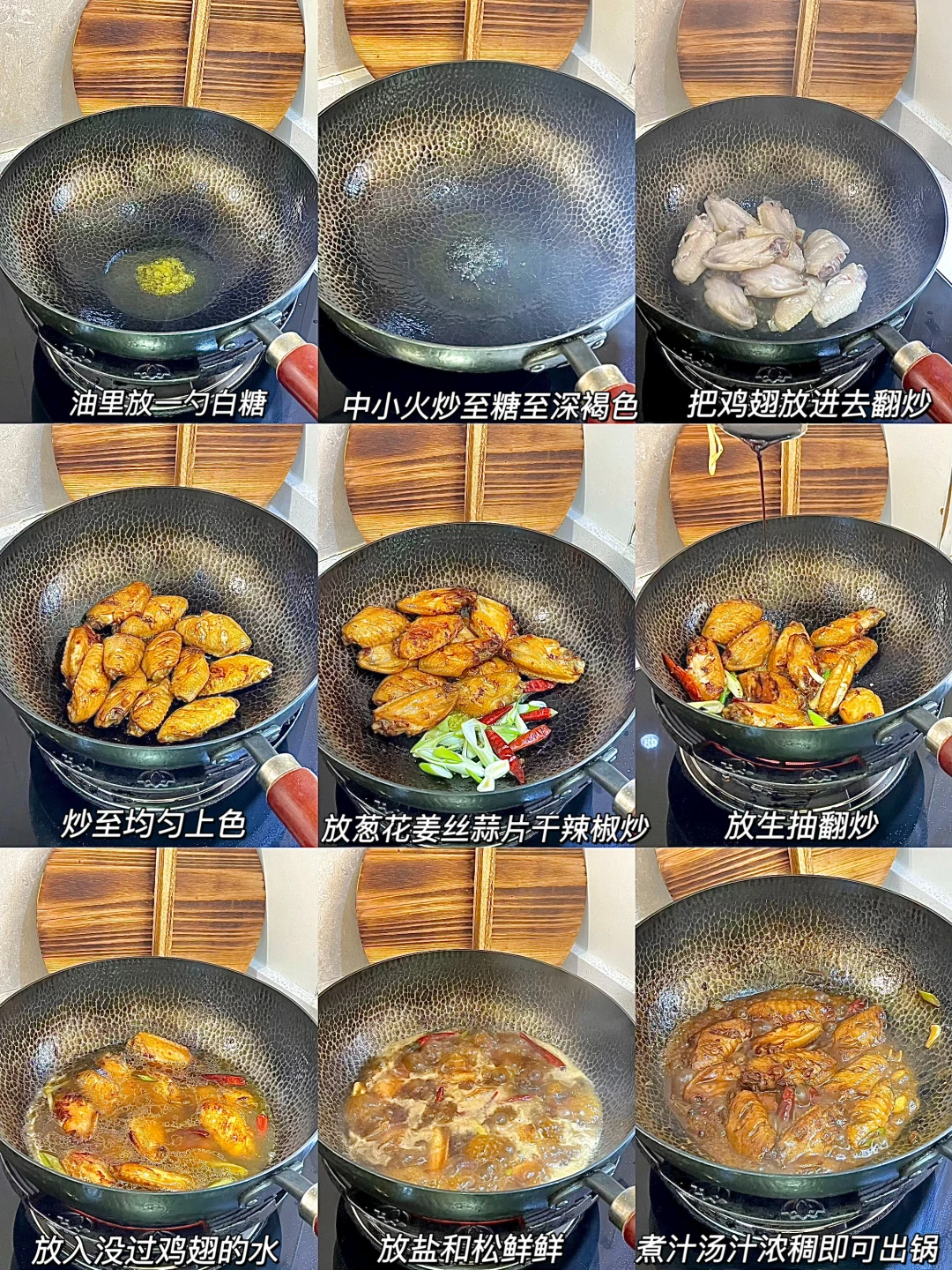 今日份美食分享: 红烧鸡翅 . 食材:鸡翅 葱花 干辣椒 蒜片 姜丝 做法如图上⬆️ . 家庭版红烧鸡翅贼好吃😋