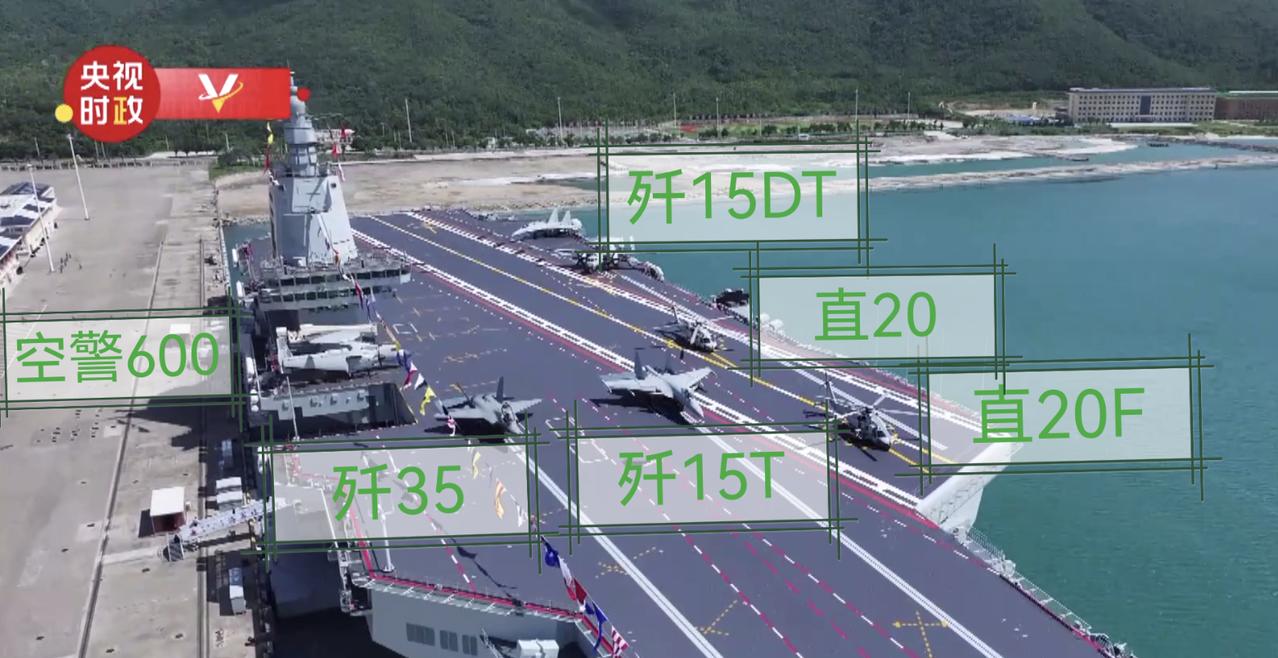 福建舰入列的几个细节: 1、马伟明院士参加了入列仪式。 2、歼-35的内置登机梯亮相。 3、福建舰甲板,停放了4款6型战机,分别是空警-600、歼-35、歼-15T、歼-15DT、直-20、直 -20F。 4、空警-600,是甲板上唯一停放了两架的飞机。 5、福建舰旁边,是山东舰,再远一点是075,更远点是一艘驱逐舰,看不清型号。 还有没有发现别的细节?