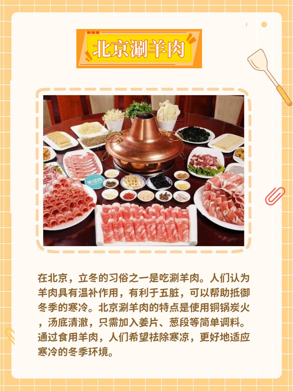 立冬各地传统饮食,南北10个地区的饮食习俗。又到了一年的立冬时节,南北各地的饮食习俗有着很大的差异,这些传承延续的饮食习俗,都有着不一样的寓意。四季变迁,人间烟火。立冬第一顿我被外卖请客了