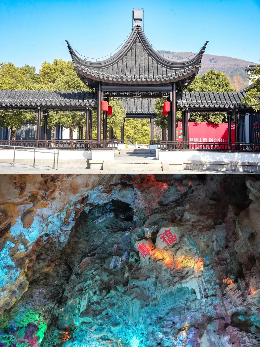 江浙沪🚗自驾1.5h直达的魔幻世界,春节全家出游天花板非它莫属!这里就是位于宜兴的善卷洞!\n\t\n🎫门票:\n✅新春特惠票65💰=溶洞+游船+缆车+陶艺+表演+英台书院(春节1.29-2.12可用)\n✅dy官方渠道抢票,比现场省一半!\n\t\n🚗【自驾tips】\n▫️导航\"宜兴善卷洞景区\"\n▫️平日停车场15-20元/天\n\t\n⏳【行程规划】\n8:30入园→英台书院→溶洞探秘(1h)→水晶宫游船→梁祝园喂鸽子→缆车上山→寺庙祈福→缆车下山→陶吧DIY→14:00返程\n\t\n🌟【必玩项目】\n\t\n1️⃣地下水晶宫泛舟\n乘船穿越千年暗河!全程需低头躲避钟乳石,光影交织像穿越盗墓笔记现场(胆小者抱紧同伴)\n\t\n2️⃣山顶祈福\n🚡缆车:悬空俯瞰万亩竹海\n🎋祈福:寺庙有新年撞钟的仪式,可以1元撞一次,好运常在\n\t\n3️⃣英台书院治愈系\n自带面包喂胖鸽子🐦+锦鲤池,古风长廊秒出汉服大片\n\t\n4️⃣古法陶艺\n免费领陶泥做茶具(烧制需额外加钱),带娃必体验!\n\t\n⚠️【避坑指南】\n❗洞内湿滑穿防滑鞋,低头走路防撞头\n❗山顶\"免费看相\"别接话!易被引导消费\n❗索道春节可能排队很多,建议早去\n❗游船限6人/船,想坐船头提前排队\n\t\n📸【出片C位】\n✔️溶洞瀑布+七彩钟乳石柱\n✔️水晶宫游船抓拍侧影\n✔️山顶寺庙撞钟打卡\n✔️陶吧制作12生肖\n\t\n快收下这份保姆级攻略,抓住春节假期的尾巴出发吧~❤️\n新年旅行第一站\u00a0江浙沪周边游\u00a0春节旅行攻略\u00a0溶洞探险\u00a0亲子游好去处\u00a0善卷洞\u00a0来阳羡过大年