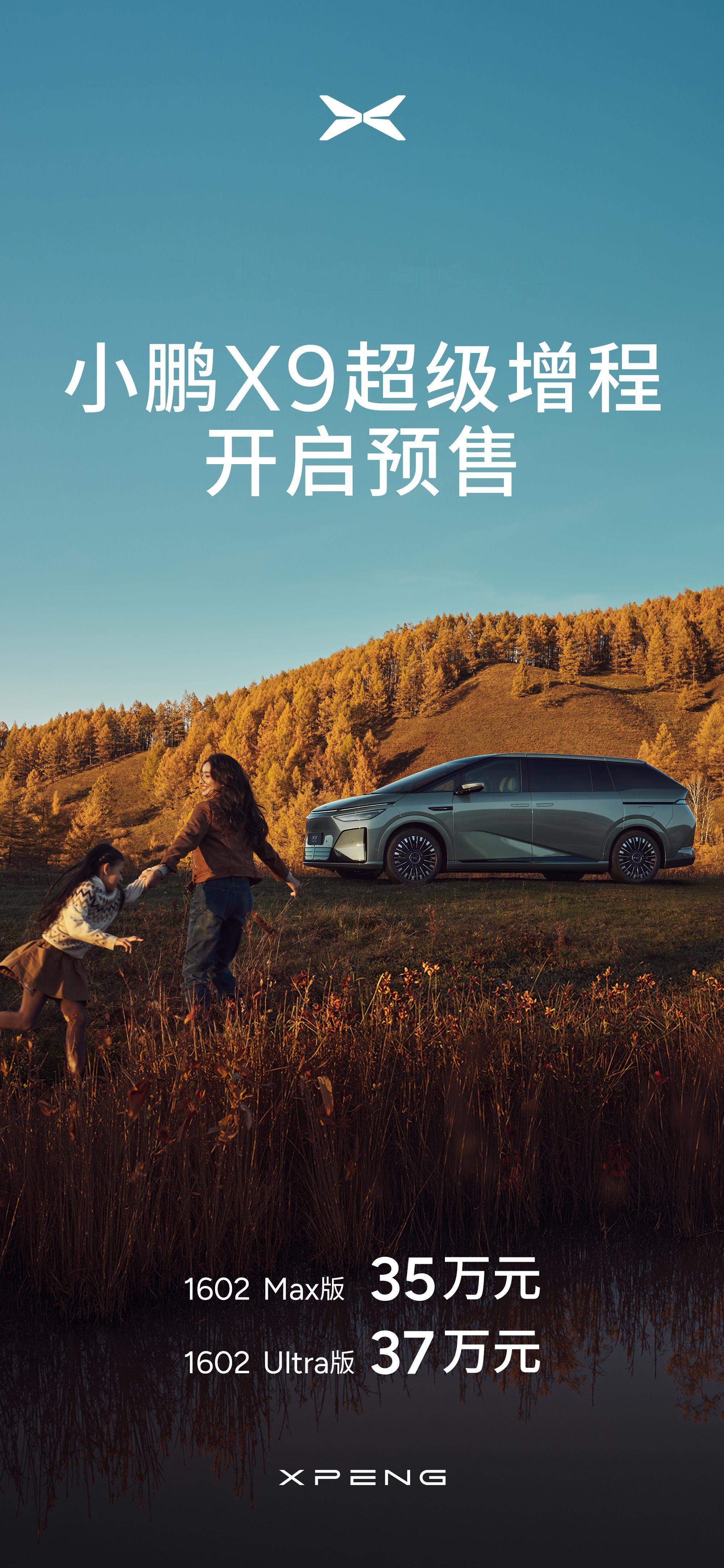 小鹏X9超级增程预售价35万起小鹏这回的新车X9,第一辆能加油的小鹏。平时通勤用电452公里续航完全够用,偶尔跨省出游也不用到处找充电桩,方便多了