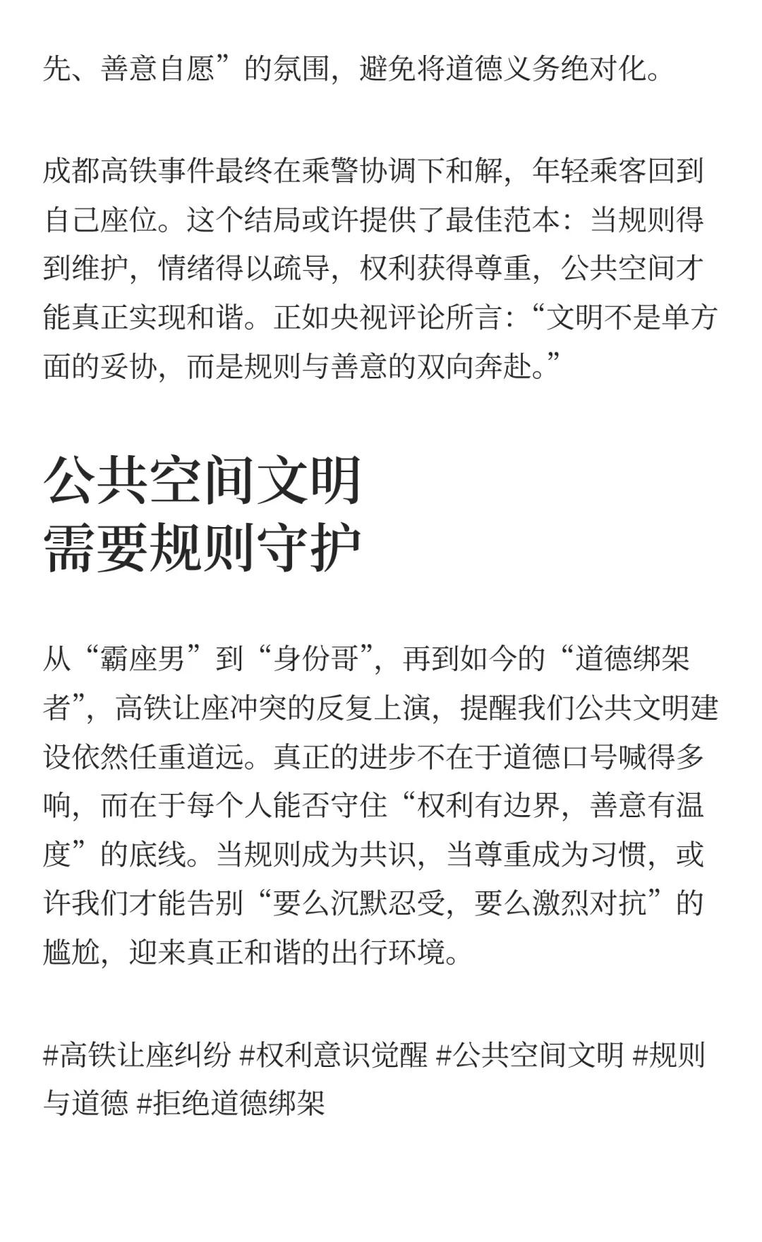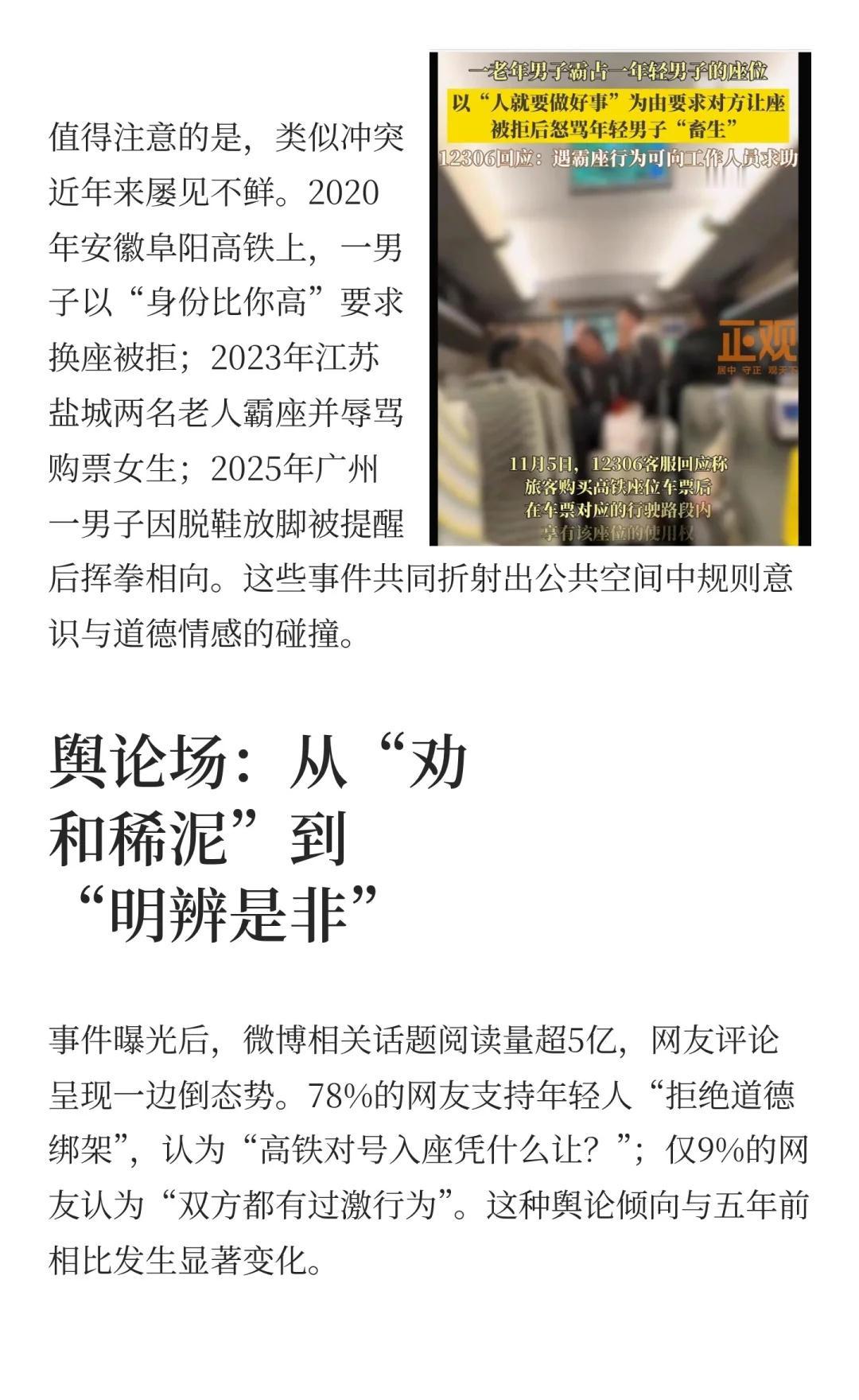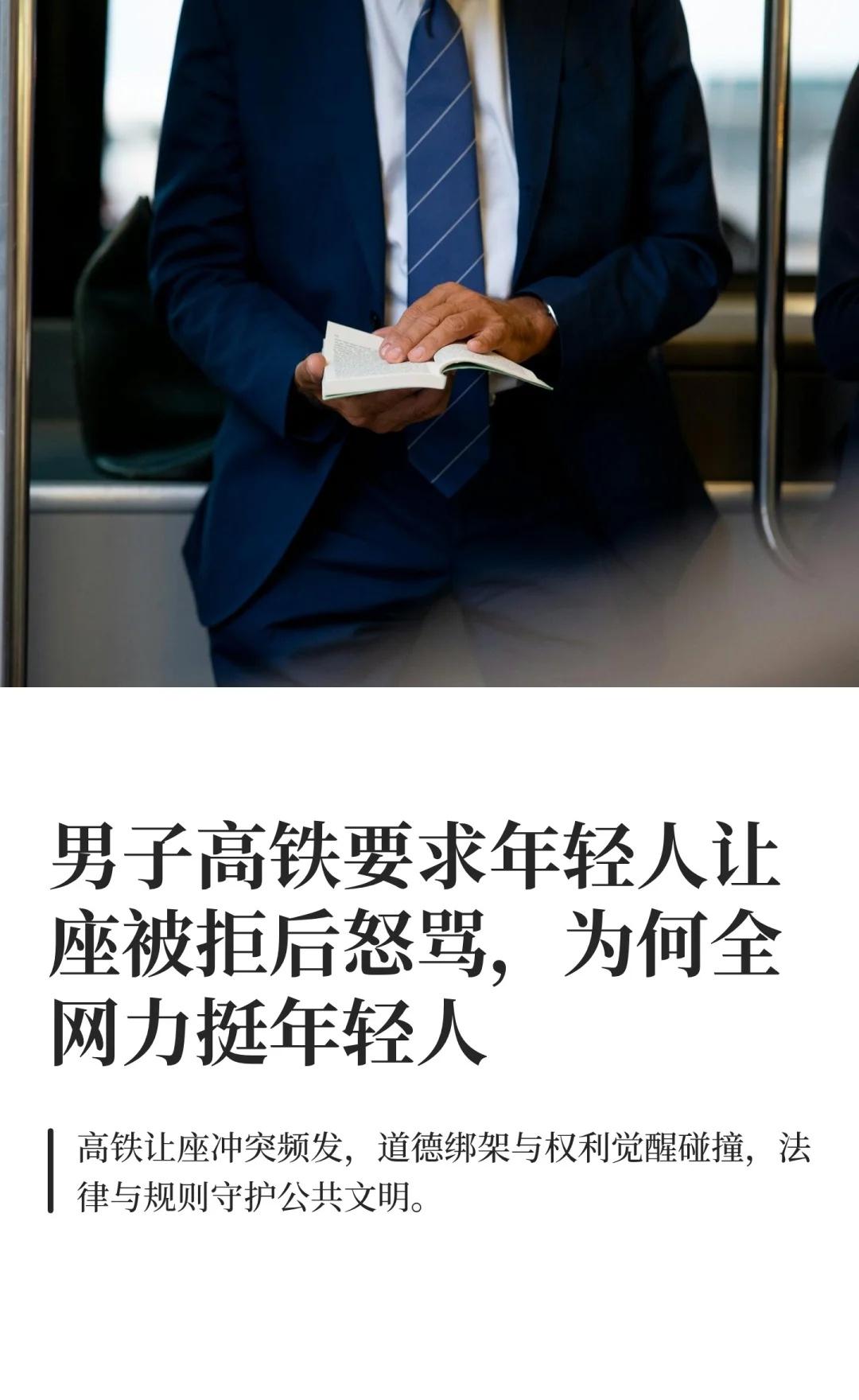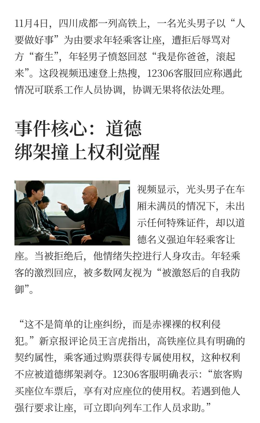 男子高铁要求年轻人让座被拒后怒骂,为何全 高铁让座纠纷 权利意识觉醒 公共空间文明 规则与道德