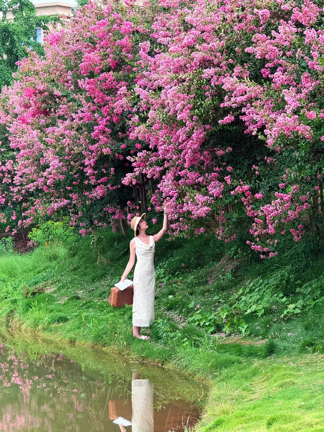 果然!!! 跟着小的姐妹们 就能找到拍照好看的地方 而且还是免费的!!! 这波跟风也太成功了吧…… · 📍电子科技大学科技园 🚇五号线怡心湖E口出来,骑自行车1km 🅿️这里面随便进,车可以停路边,里面有两片紫薇花,外面路边的快要谢了,我拍的是里面那一片(大家走到门口 就能看见,非常明显)