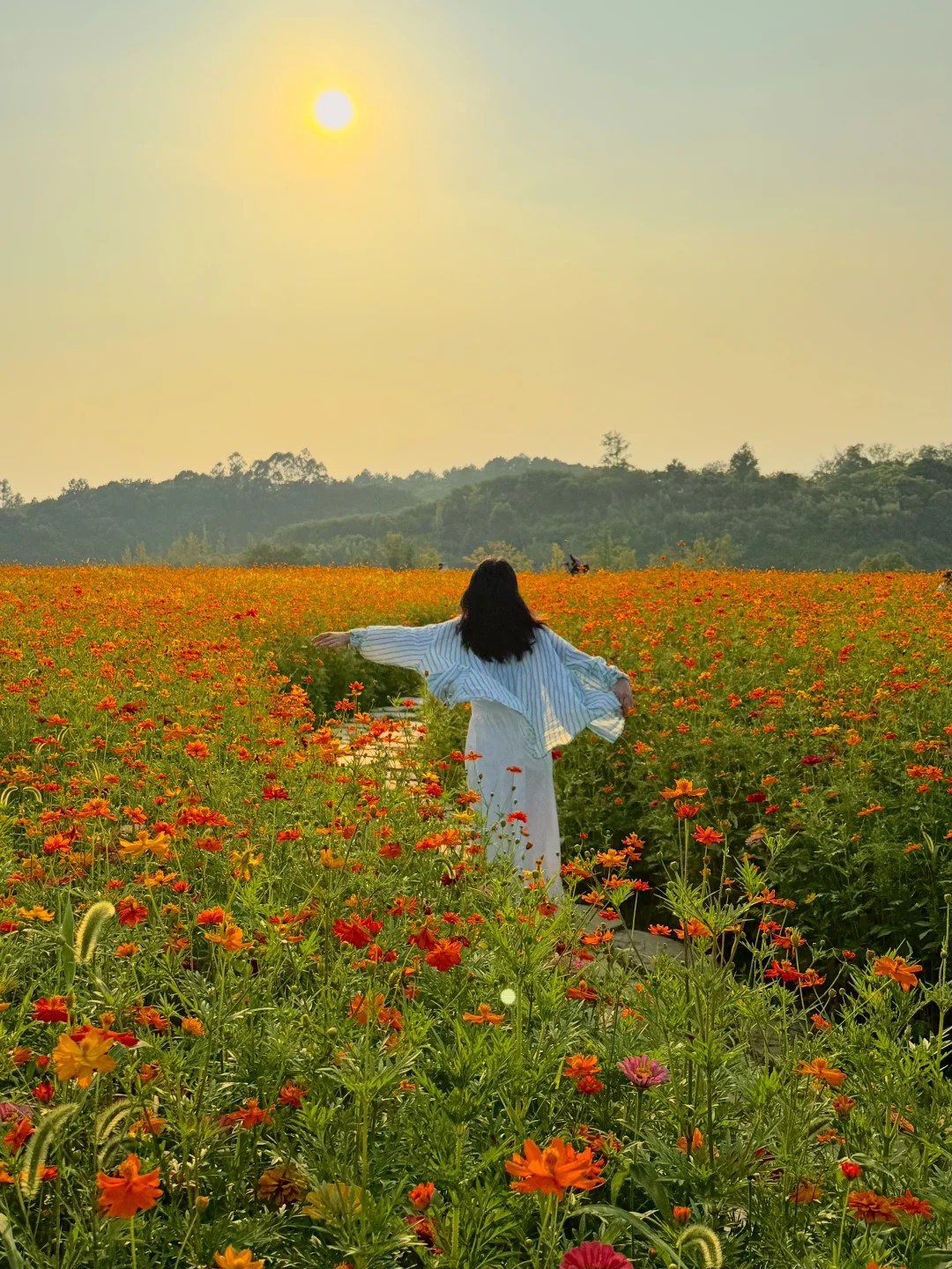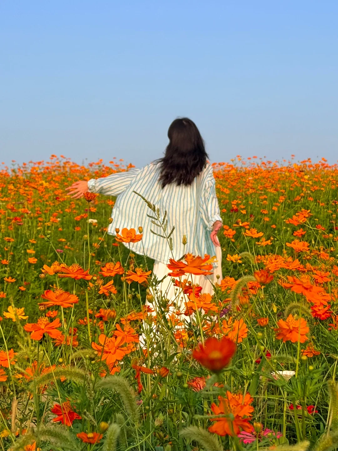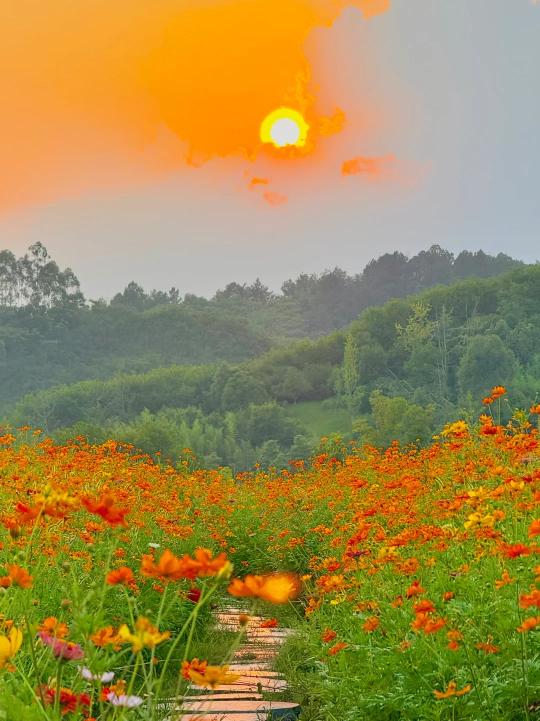 超大一片橘色格桑花海!!真的太震撼了!!!