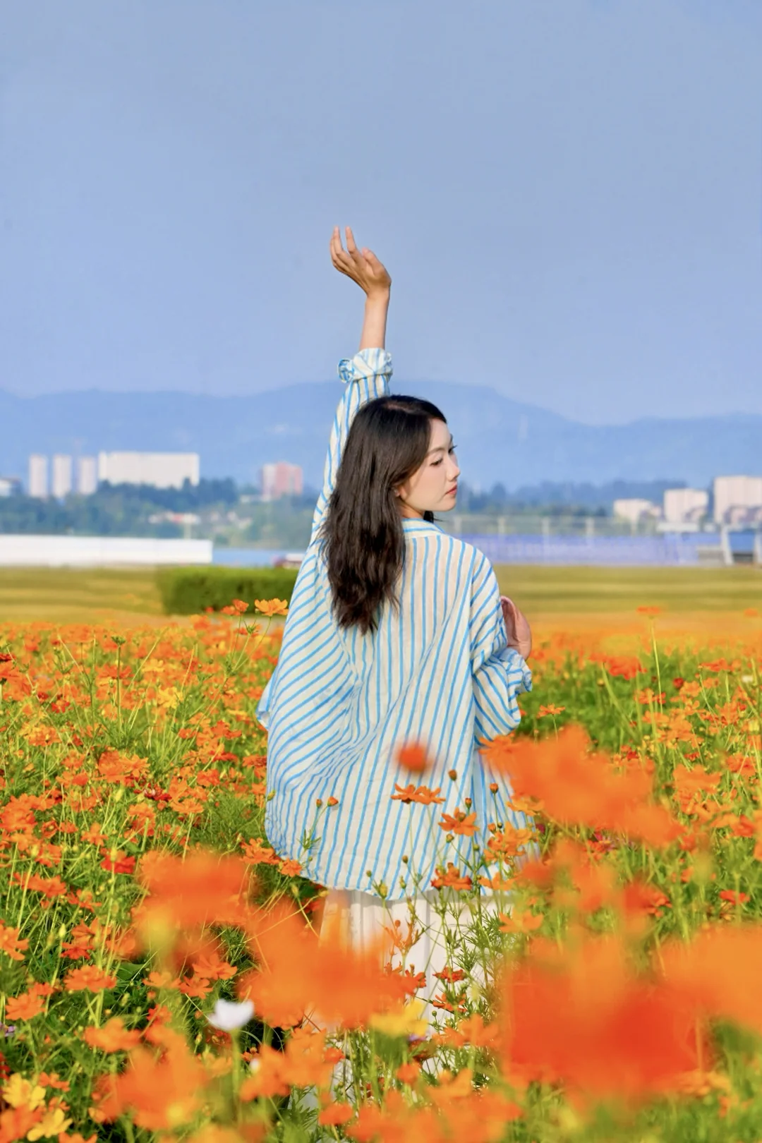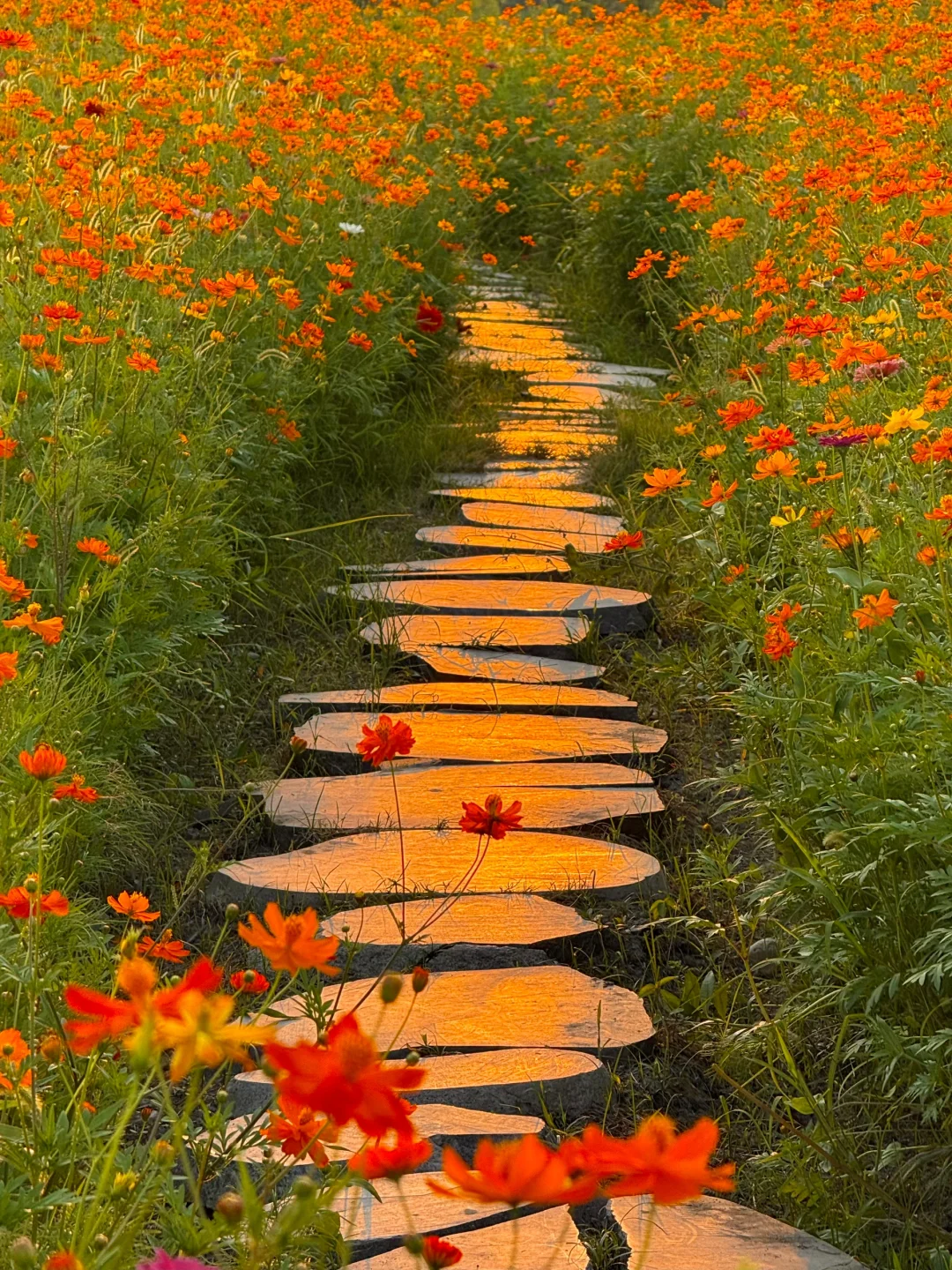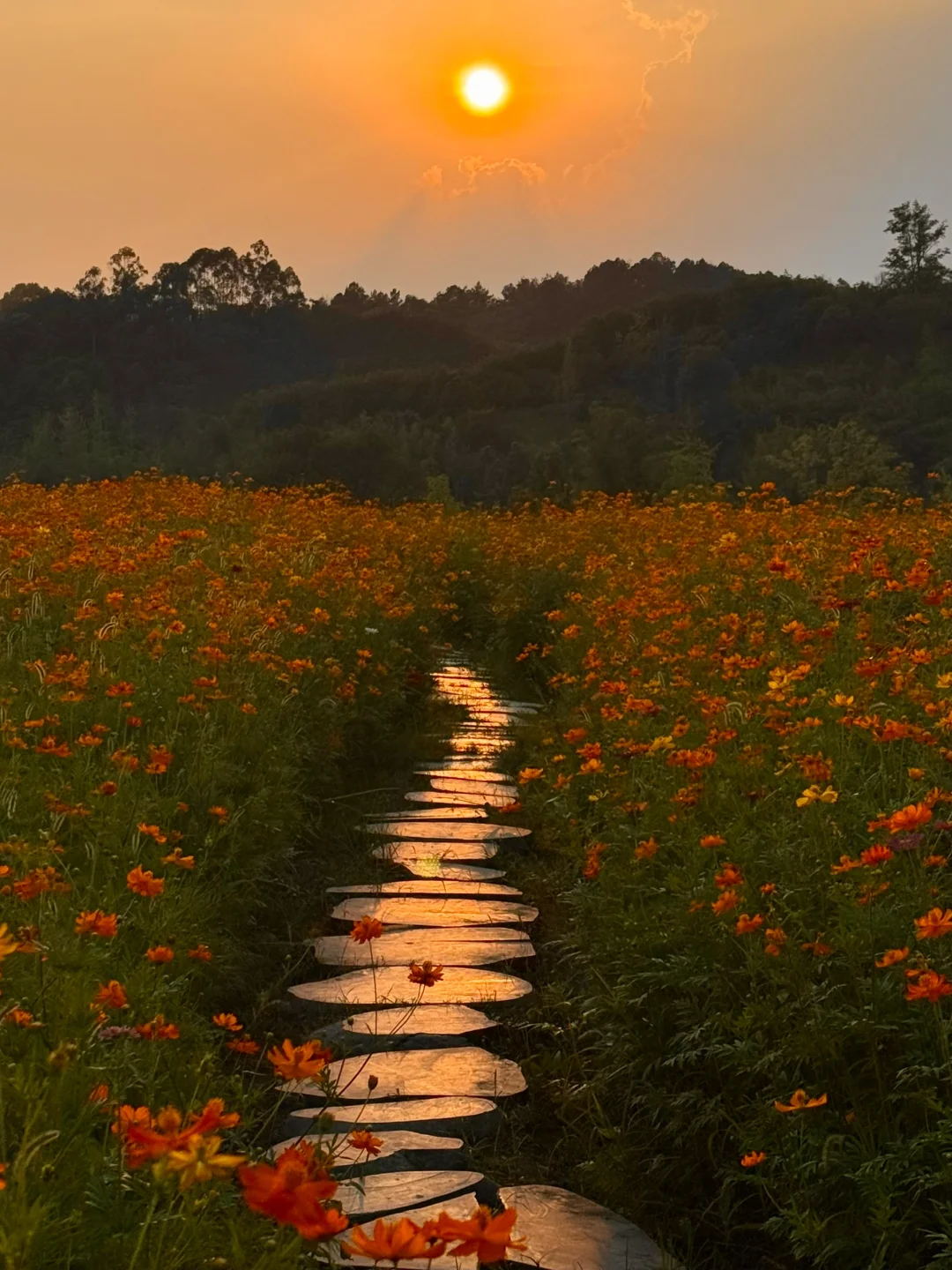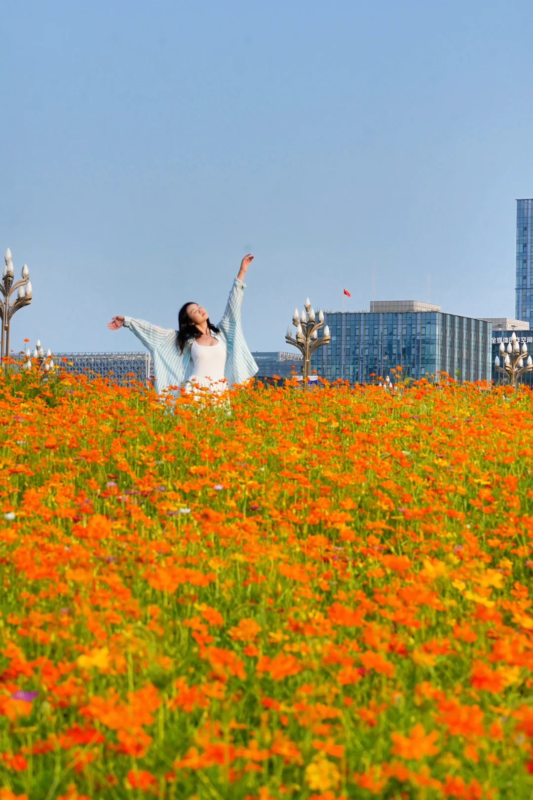 超大一片橘色格桑花海!!真的太震撼了!!!