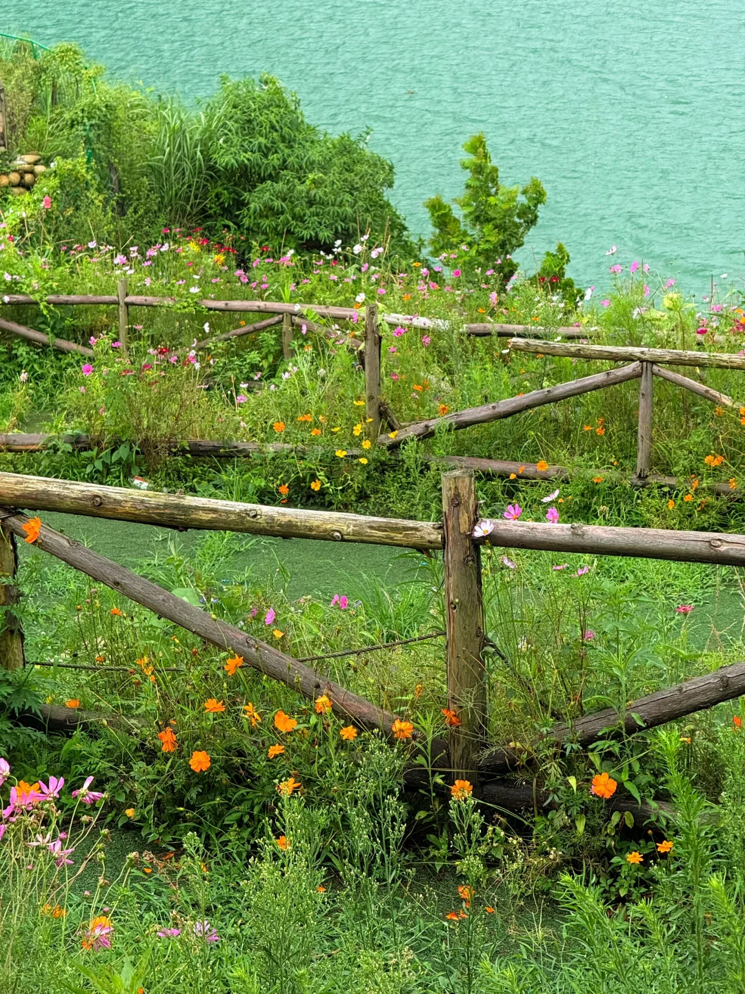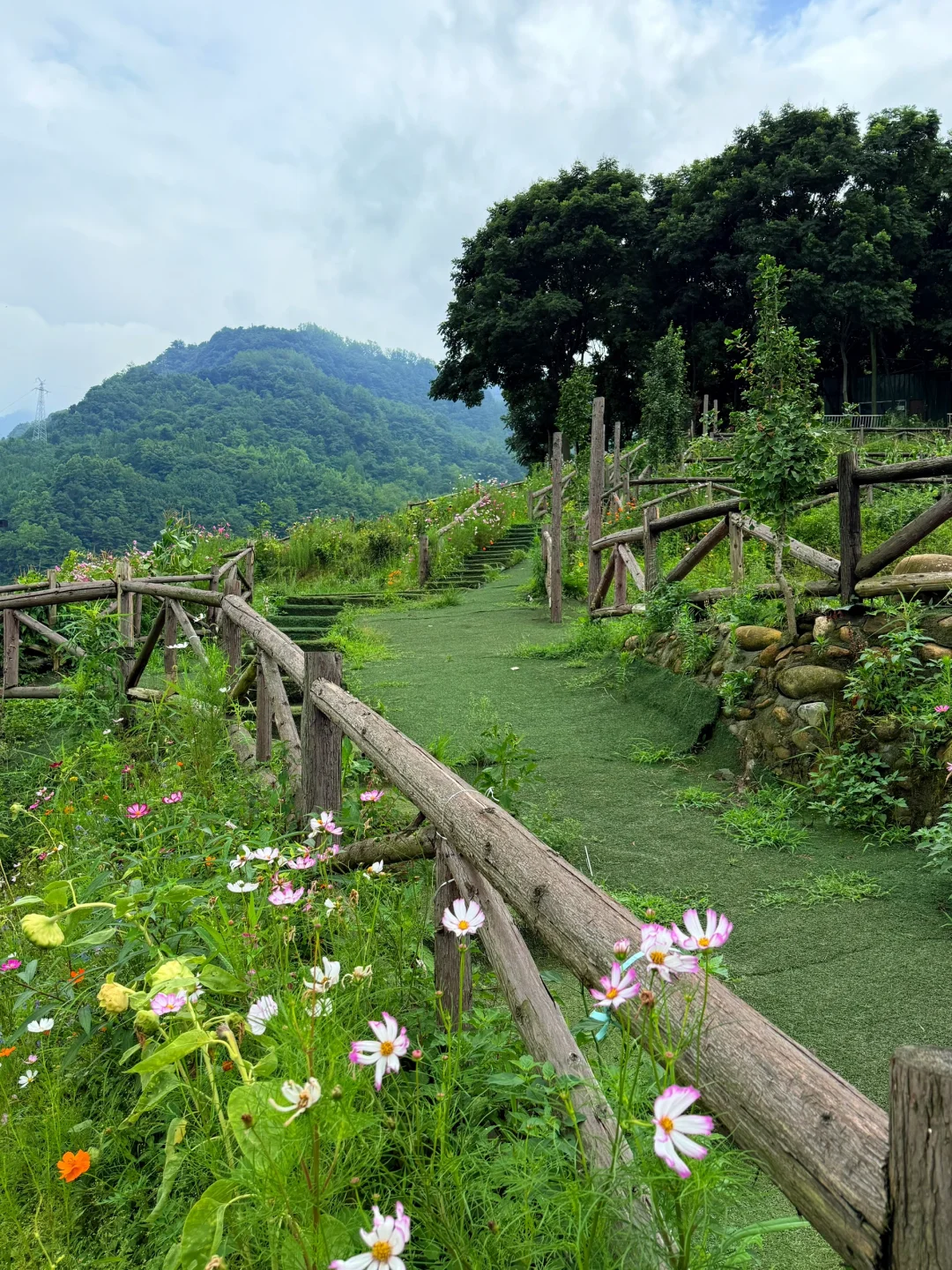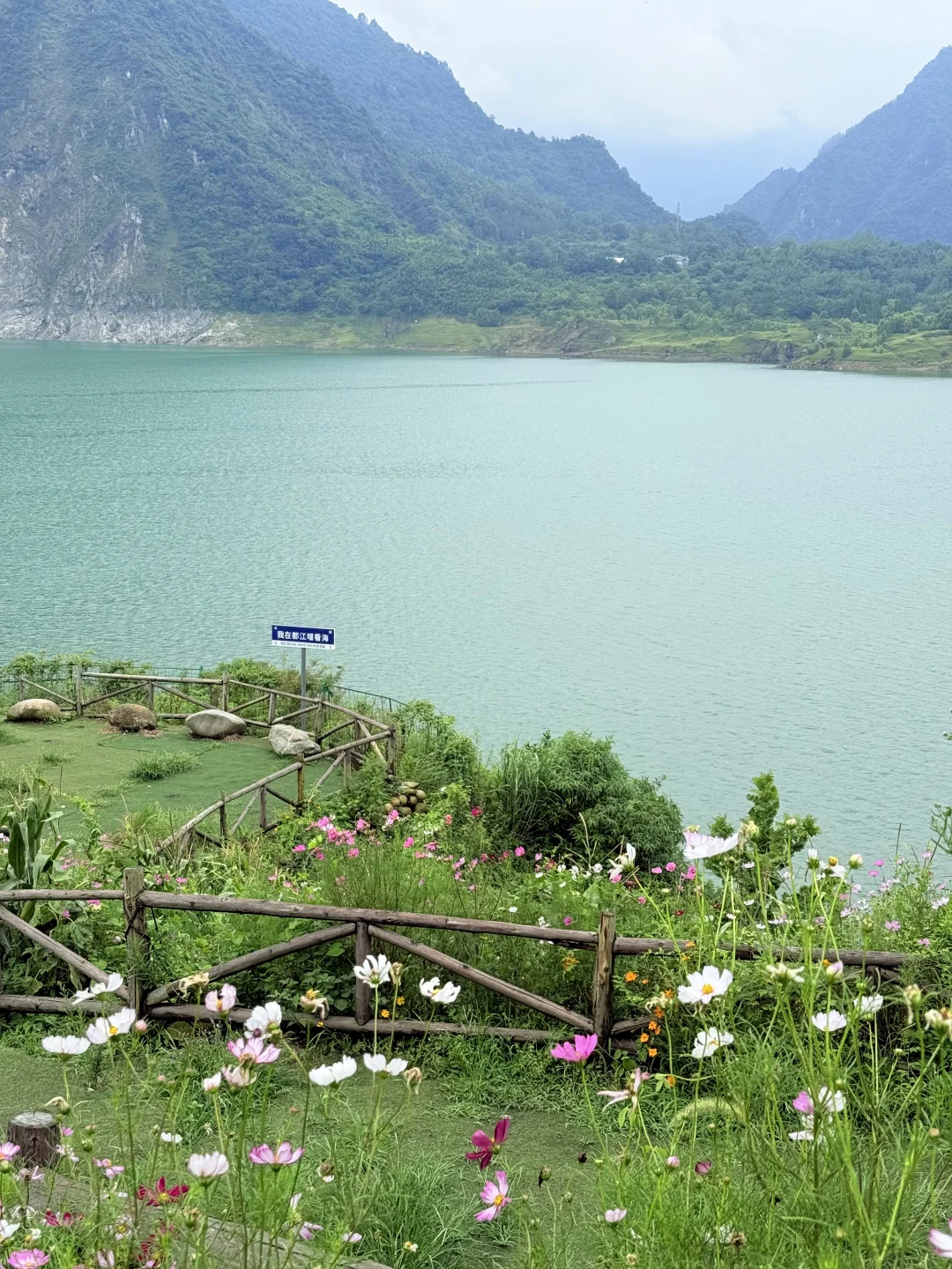 就在成都!! 又又又给大家找到一个不要钱的露营地…… 湖泊、花海、青山、蓝天白云、田园风木栅栏…… 真的巨巨巨美!!! 就在都江堰紫坪铺水库!!! · 🏕️露营小tips ✔️📍都江堰观景台餐饮,过马路就到了(过马路一定要注意安全 ,来往车辆很多) ✔️自备露营装备和食物,这里只有一个小卖部,而且东西很少 ✔️绿化比较好,带上驱蚊水 ✔️防晒防晒!虽然都江堰温度不高,但是天气好的时候还是很晒 ✔️可以带一些草帽、报纸、气球、假花……拍照会更出片