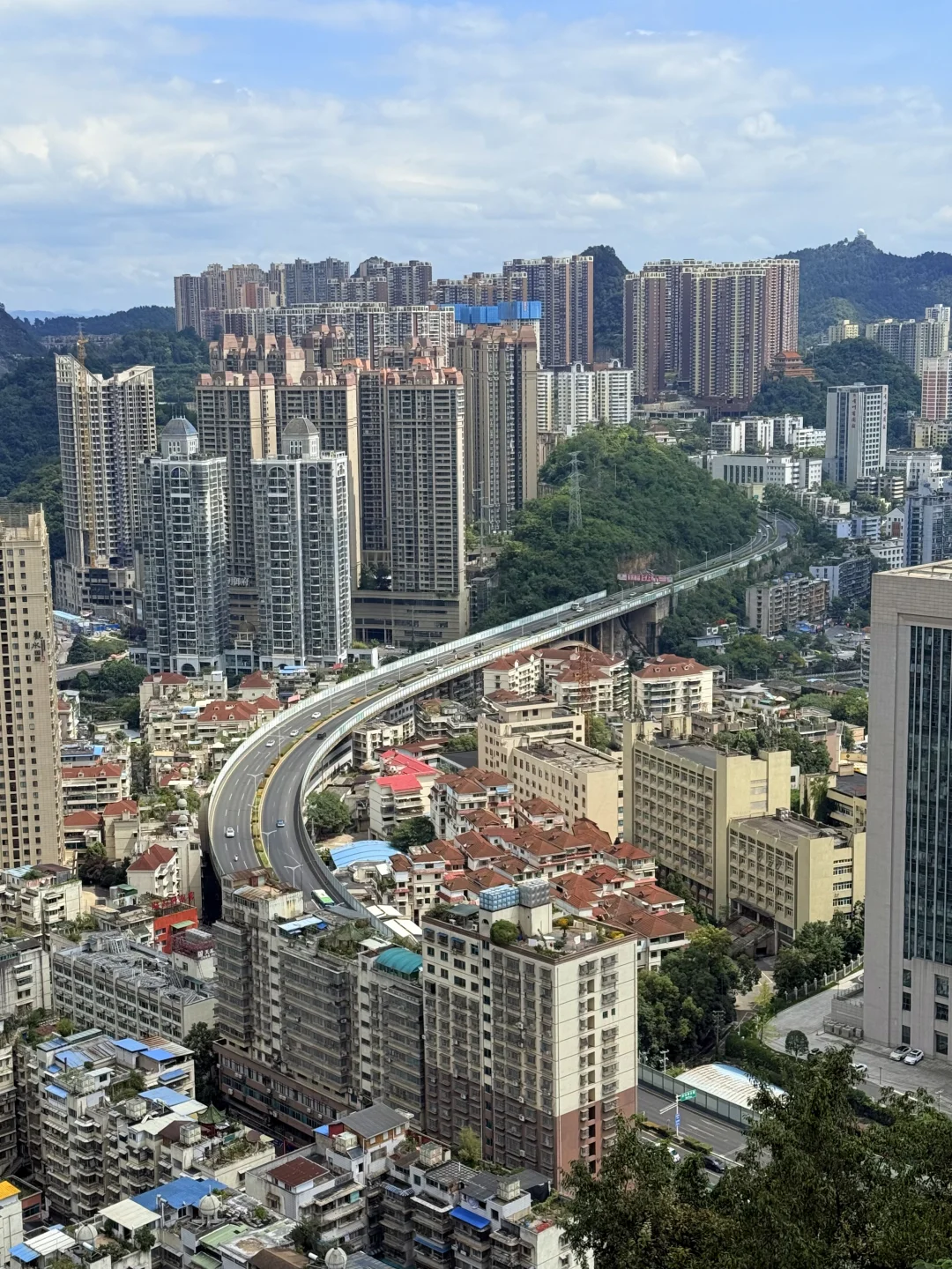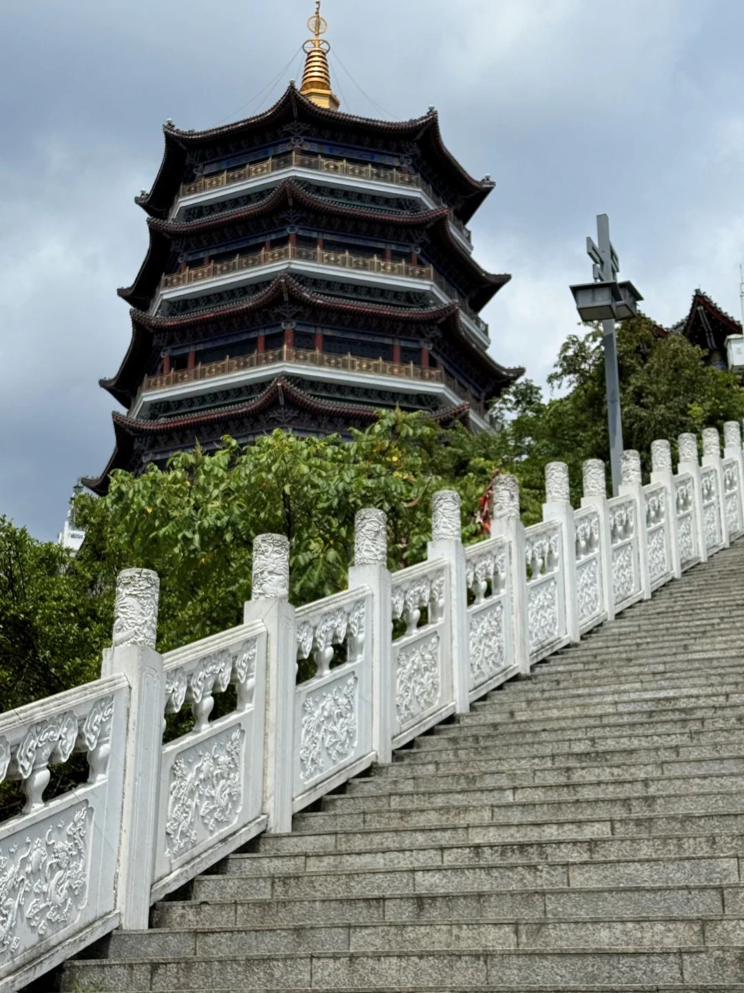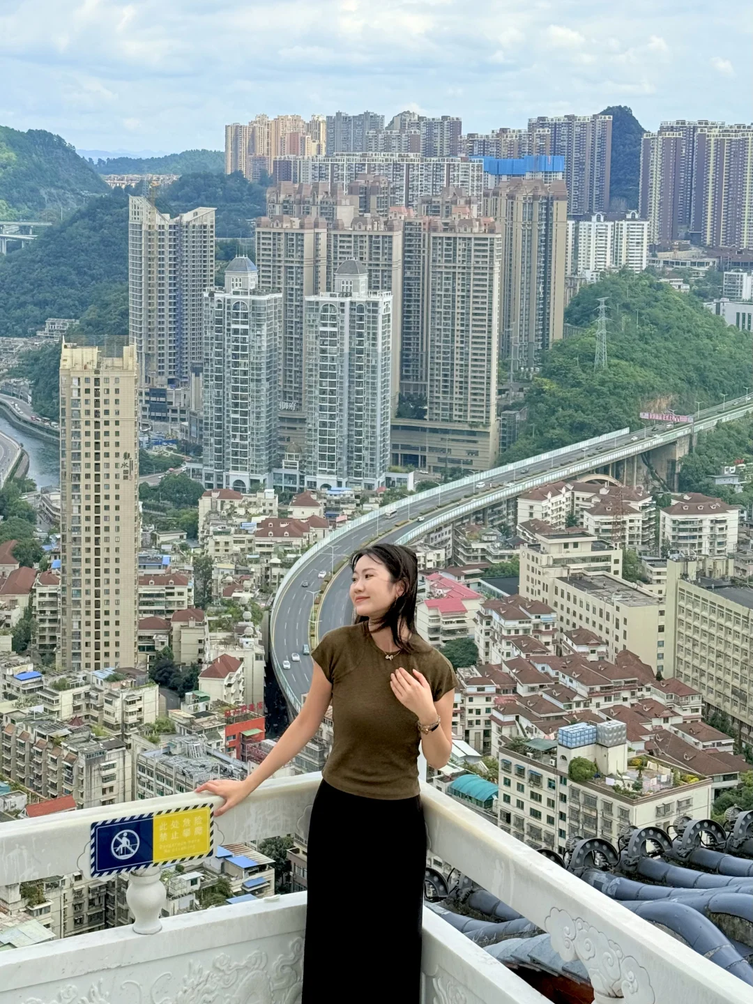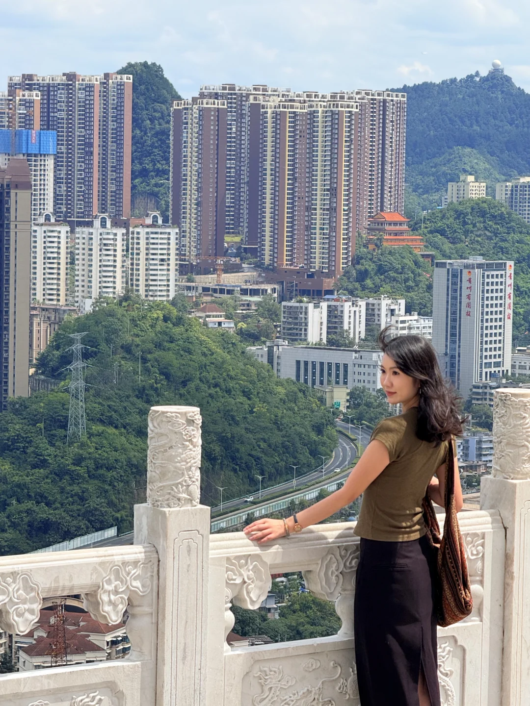 来贵阳不爬山是不可能的 但是这个不要钱!还可以俯瞰整个贵州的机位!! 真的巨巨巨好拍啊!!! · 打车到📍东山寺 走楼梯上去大概15min左右 拍照好看的机位都在财神殿附近 大家可以自行发掘一下 可以六点左右上去 既能拍到城市晚霞 多呆一会儿还能拍夜景 · 📸拍照小tips ✔️山上的风太大了,女孩子的头发建议扎起来 ✔️穿白色或者彩色的衣服会更出片,我的衣服跟城市背景有点融合了