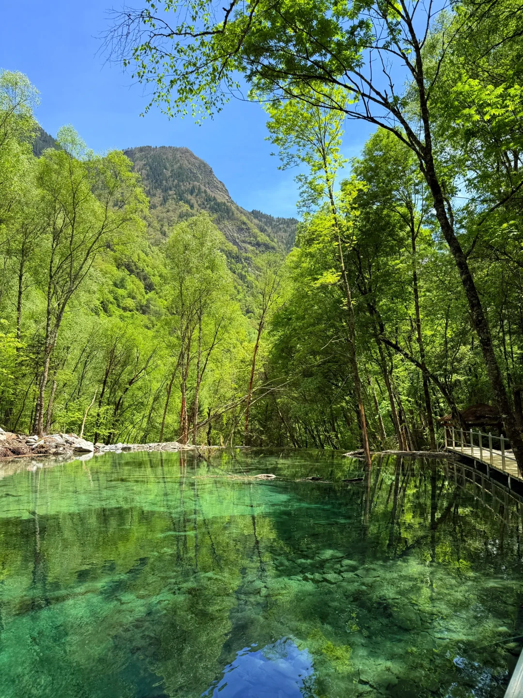 这段路一定一定要徒步!!个人认为整个松坪沟的精华路段就是这一段!郁郁葱葱碧绿的树林!树林里还有秋千!!宝蓝色波光粼粼的海子!潺潺流动的瀑布!!都在这个区域!