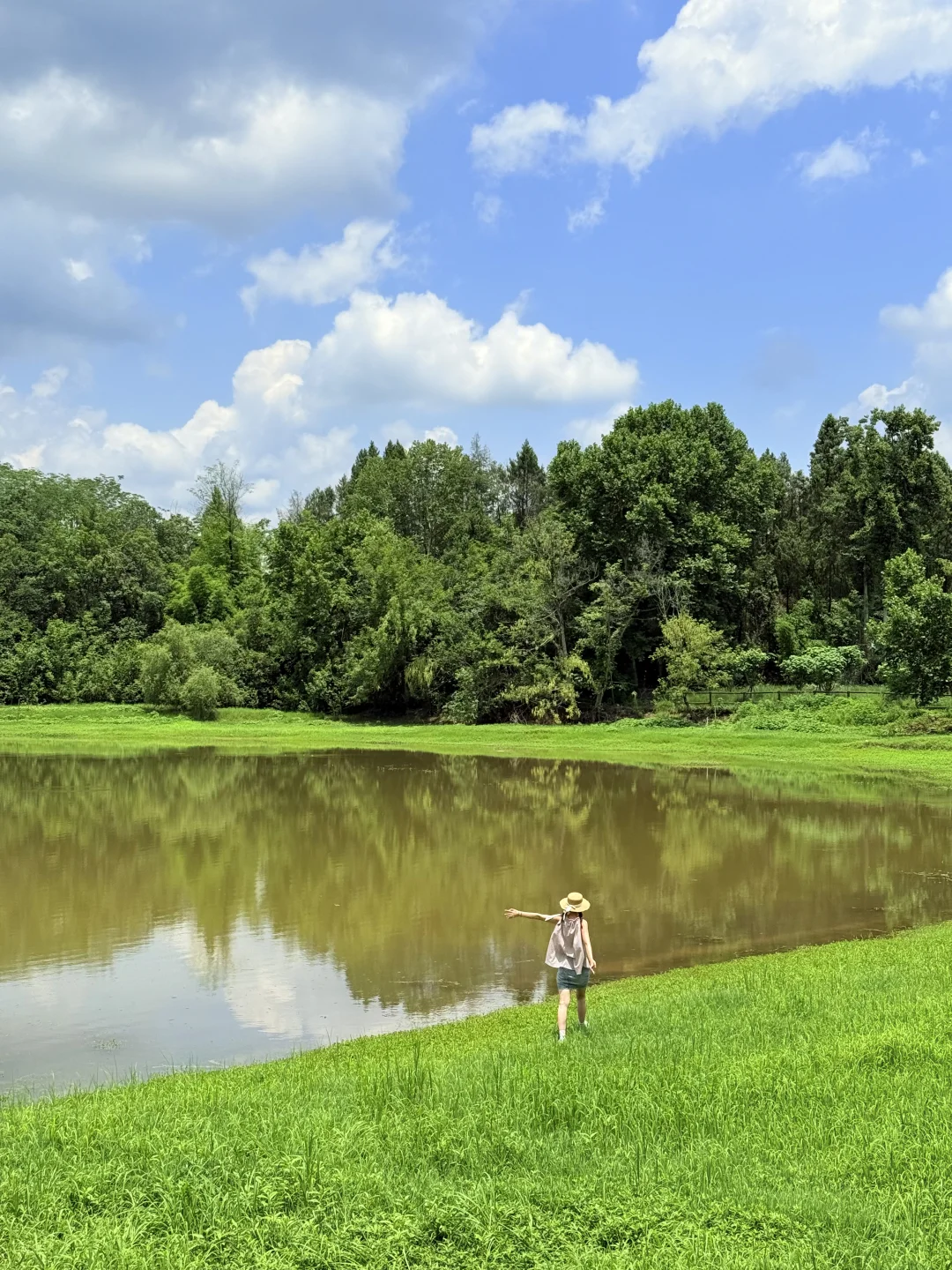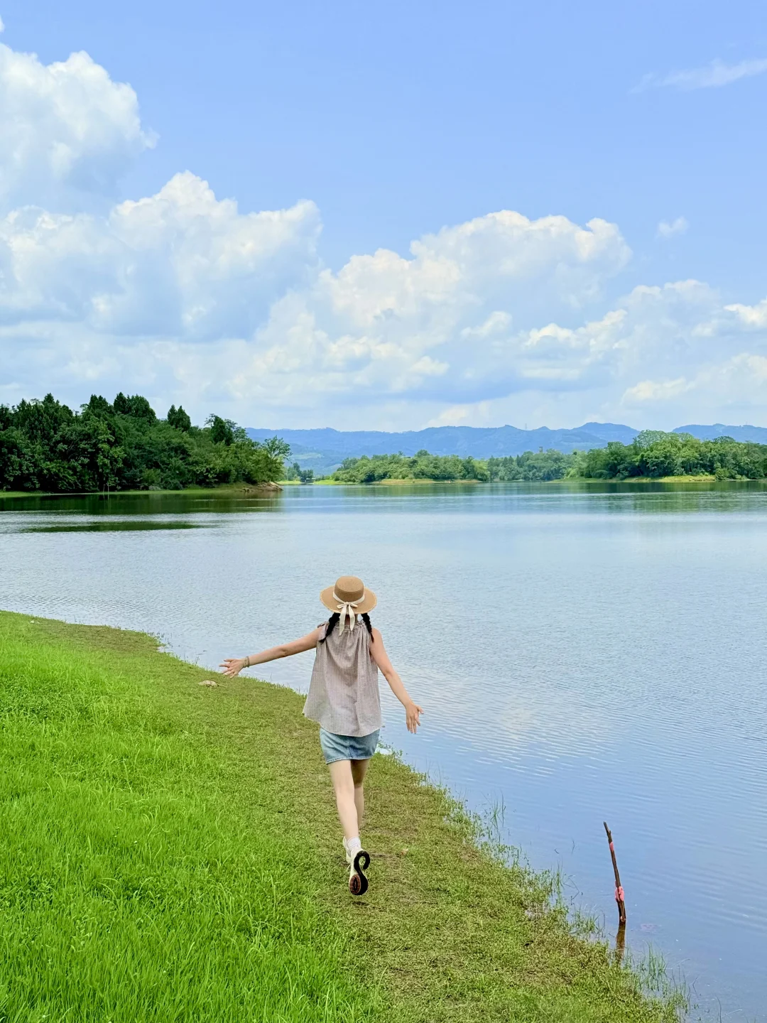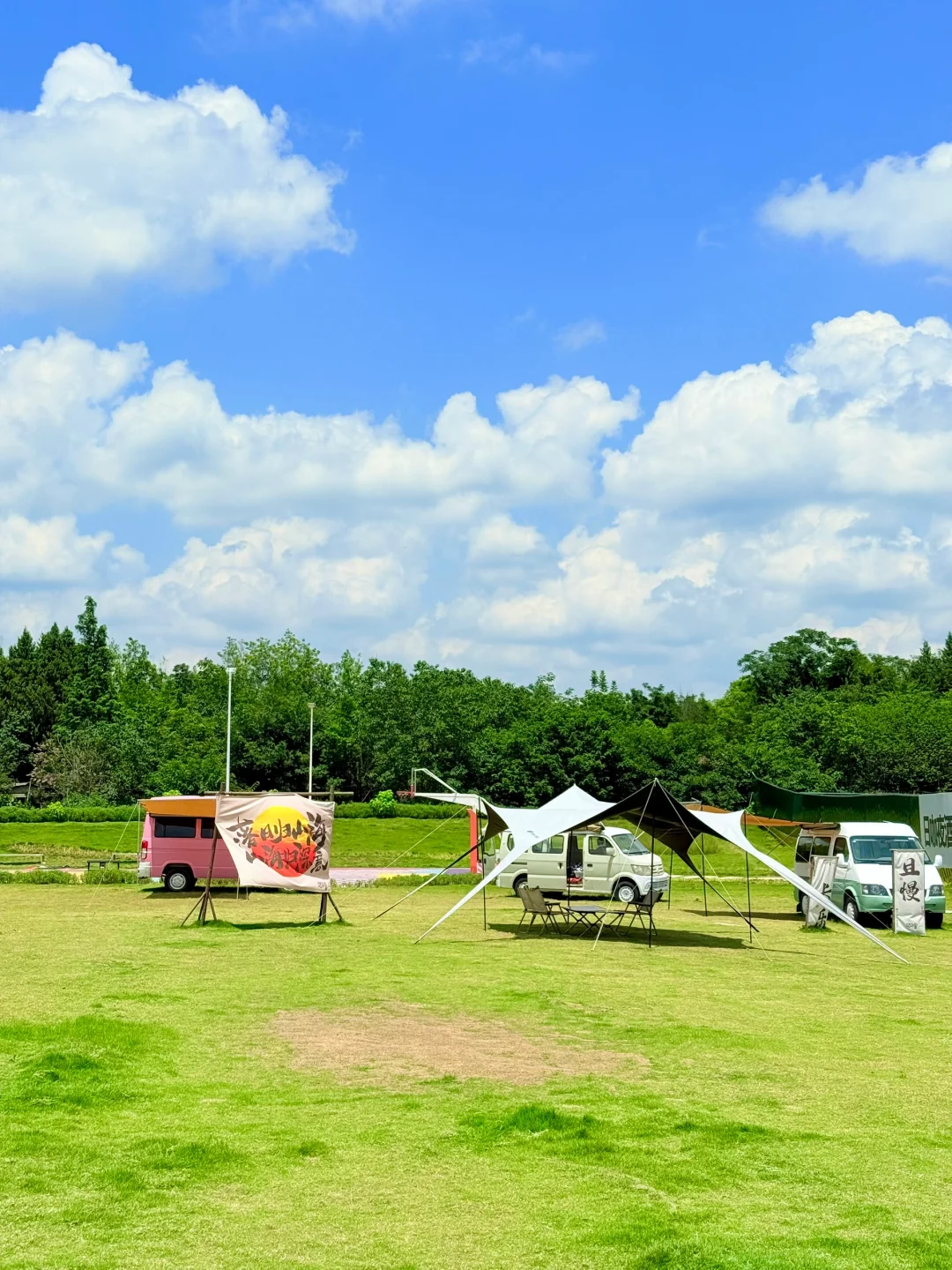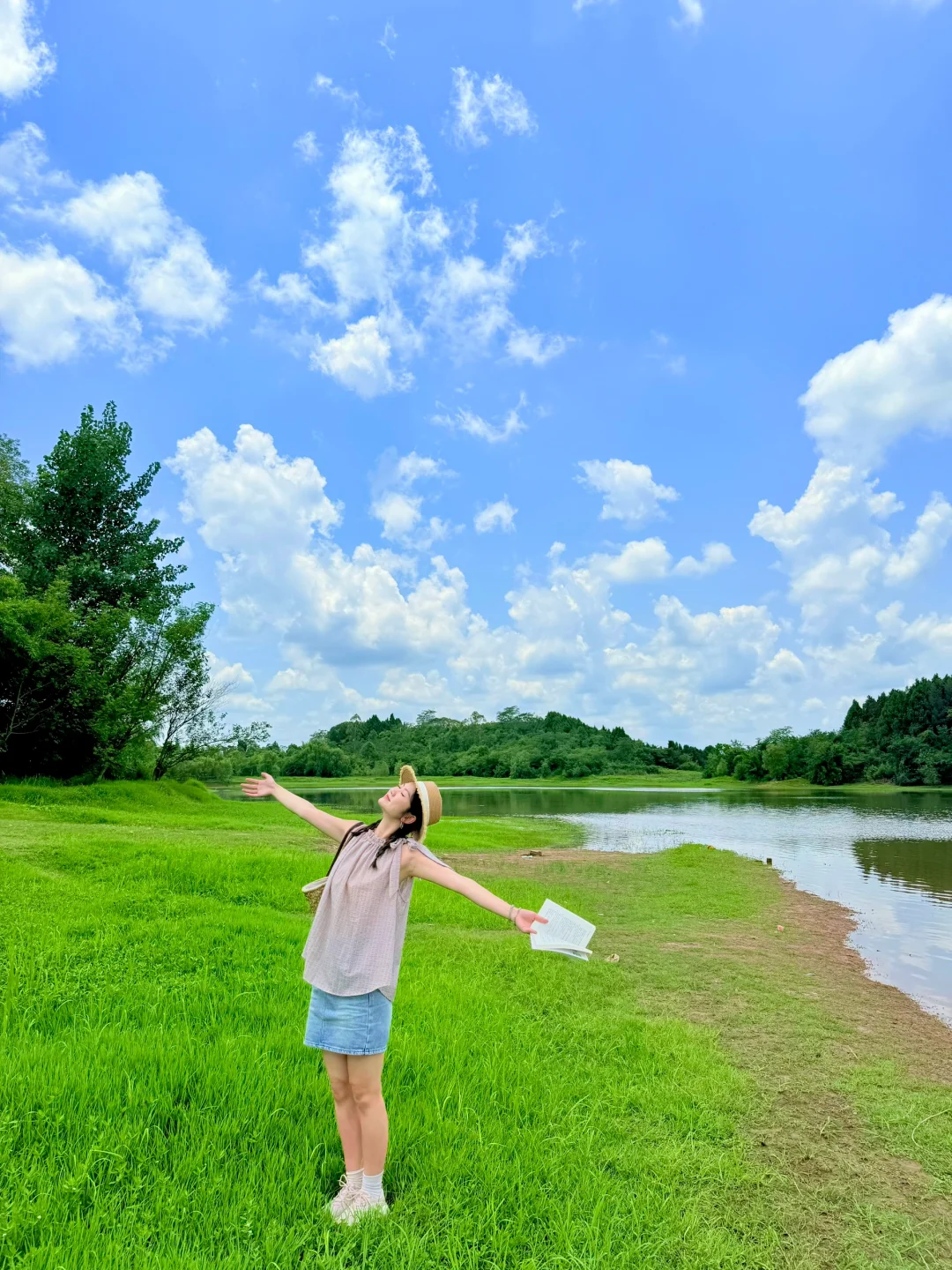 果然啊 成都漂亮的地方都是免费的 又又又在成都市区🚘1h的地方 给大家找到一个很适合钓鱼!露营!烧烤! 巨巨巨小众的湖边营地 · 一眼望去全是绿油油的草坪 绿意盎然 真的很惬意!! 大家如果不想去湖边 对面的草坪上还有现成的露营帐篷 可以玩飞盘 骑自行车 而且宠物友好!!可以带小狗来露营!! · ✅露营小tips: ✔️无痕露营 ✔️防晒工作要做好 ✔️带上驱蚊水