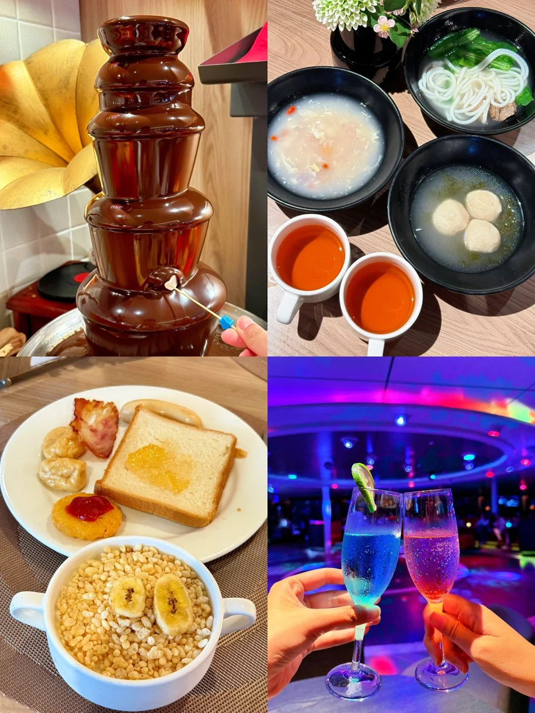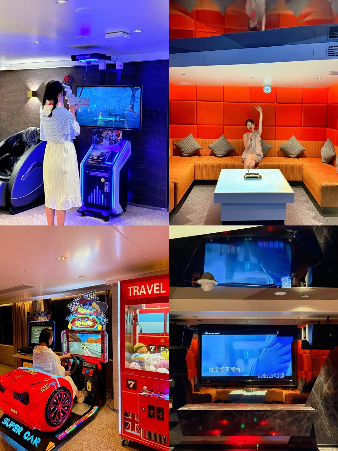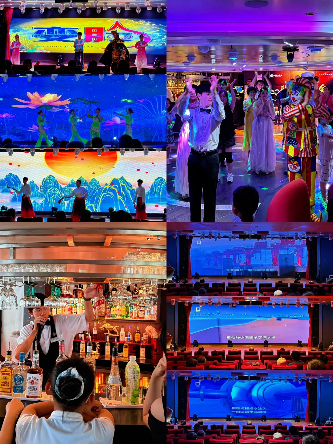 不仅有Ktv、电玩、spa、麻将房、儿童游玩区、电影院……而且船上的活动也很丰富,船长欢迎晚宴、文艺演出、消食操、调酒课、舞蹈学习……完全不会无聊