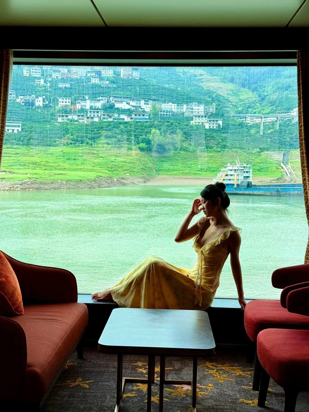 我们选的这个房间,躺在床上就能看江景!船上房型很多,亲子和套房都有
