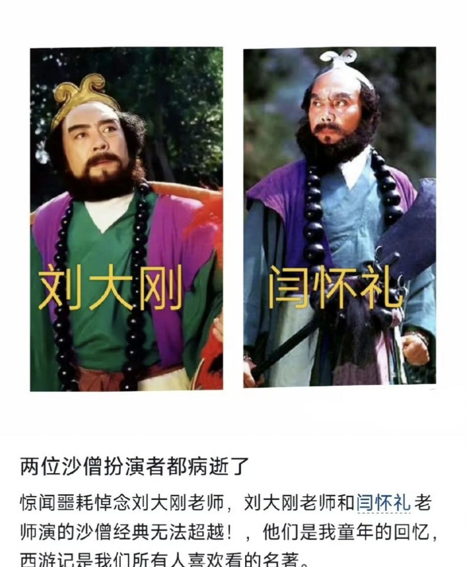 《西游记》沙僧演员刘大刚病逝,享年78岁。刘大刚接替闫怀礼出演《西游记续集》沙僧