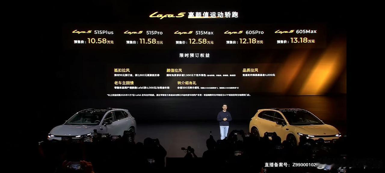 孙少军:零跑lafa 5发布预售,起步价10.58万起!这个价格是不是比大家预想的价格略微高一点? 零跑汽车走精品小车路线, 这款车的定价并没有参照此前产品的定价,大家觉得这个价格怎么样? 值得注意的是,这仅仅是预售的价格,需要看预售再决定后面的正式售价。不过小编丝毫不担心零跑的最终售价,因为零跑最近几次出价都挺精准的。 各位是怎么看的?欢迎评论区留言。