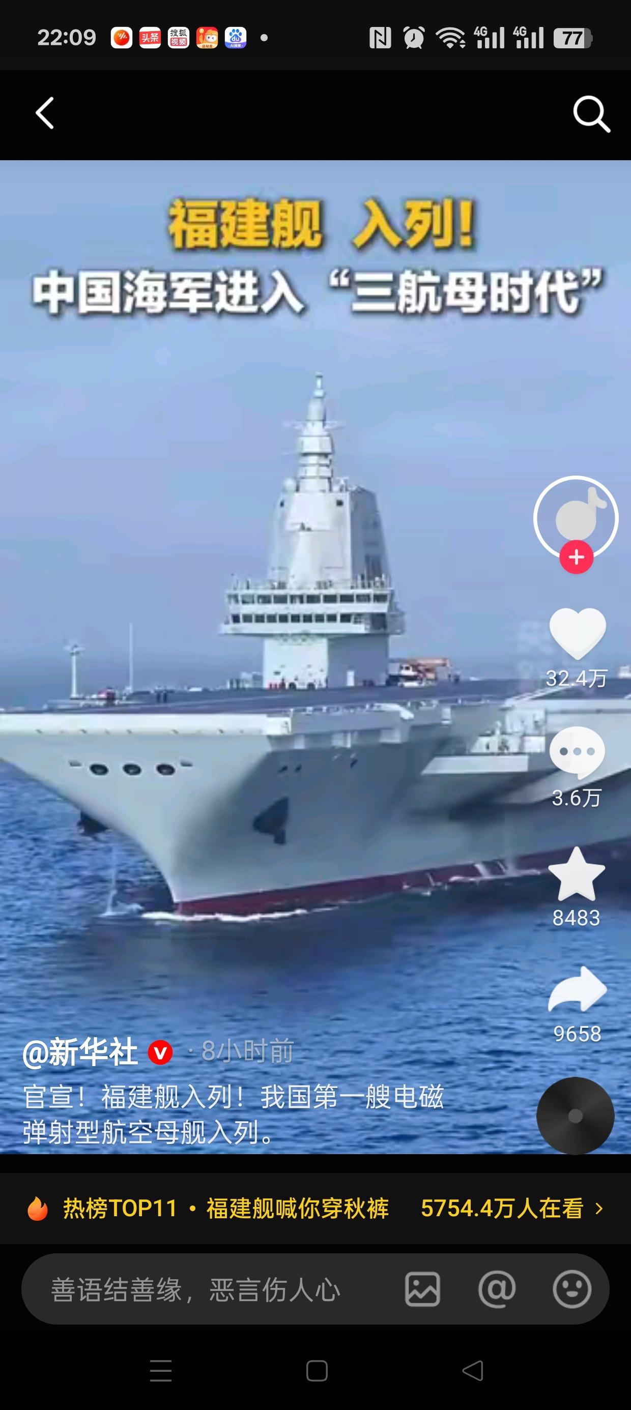 从此中国人民不仅站起来了,而且是雄起来了! 当福建舰正式入列,与辽宁舰、山东舰组成“三航母天团”时,我的思绪瞬间被拉回到2012年。那年,辽宁舰横空出世,我们挤在食堂电视机前,看着舰载机首次起降,全场沸腾,那是一种“从无到有”的激动与扬眉吐气。 如今,福建舰那标志性的电磁弹射轨道,如同划向未来的利剑。更耐人寻味的是它的弦号“18”。从辽宁舰的“16”,到山东舰的“17”,再到福建舰的“18”,这不仅是简单的数字递增。 它更像一场跨越山河的“大国接力赛”:第一棒在北方(辽宁),第二棒过中原(山东),第三棒直达东南沿海(福建)。每一步都精准落子,勾勒出中国海权从黄渤海走向深蓝的壮阔航迹。 福建舰的命名,更是对历史长河最深情的回望与最坚定的回答。这绝非巧合,而是一种“温故知新”的战略智慧。 三航母,对我们普通人意味着什么?它意味着,当你在亚丁湾的商船有了“移动的机场”护航;当你在海外旅行,底气更足一分。它守护的,是万家灯火的安宁,也是我们每一个人的诗与远方。 大国航向深蓝,我们见证历史!
