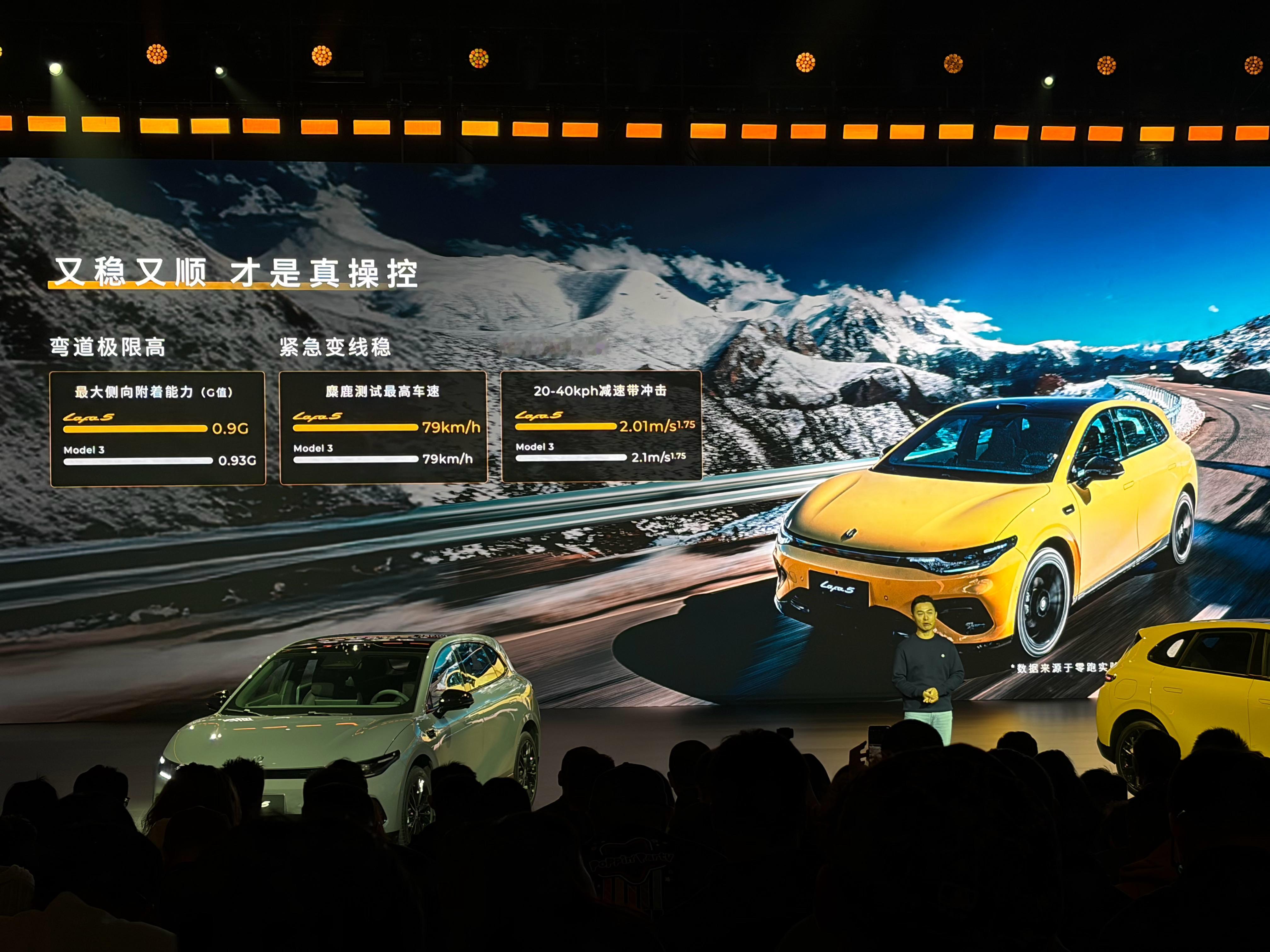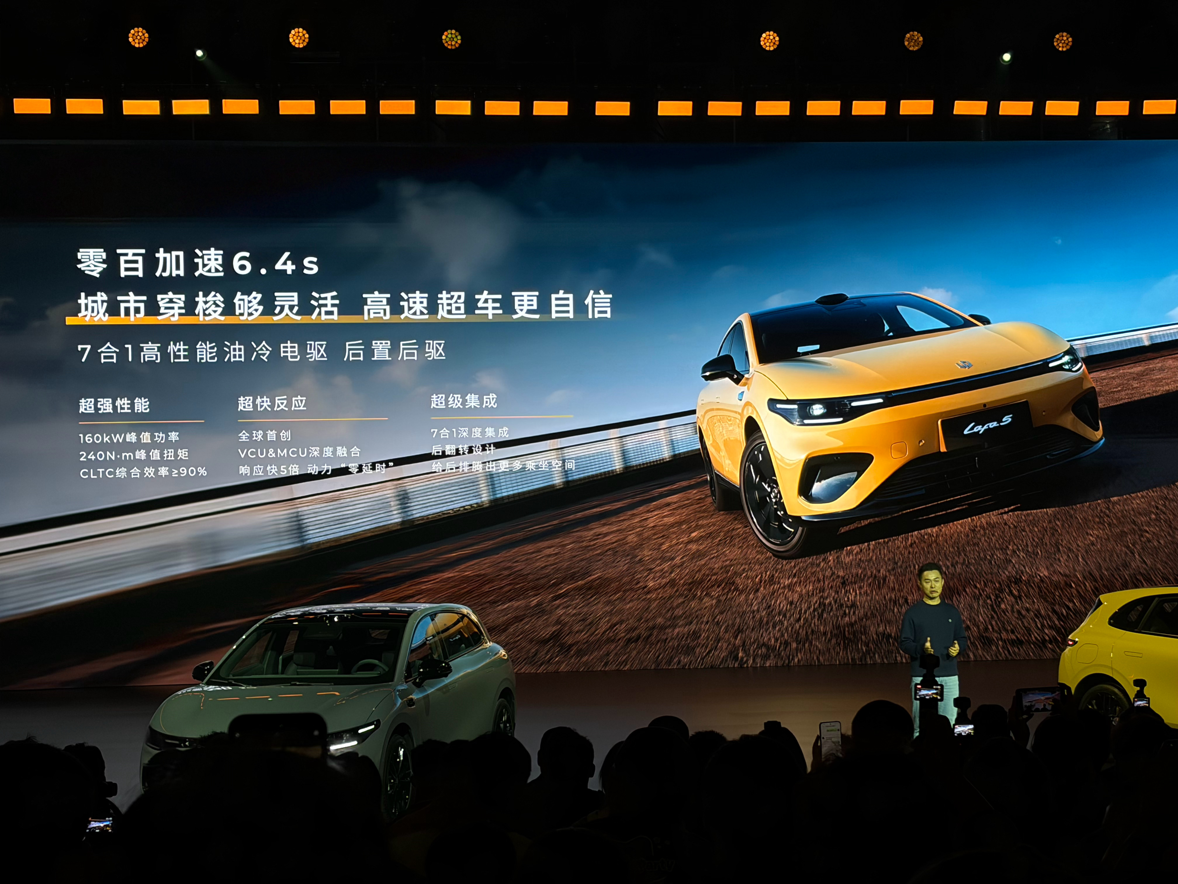 零跑Lafa5搭载一套7合1高性能油冷电驱,后置后驱布局,零百加速6.4s,前麦弗逊后多连杆独立悬架,前窄后宽的鸳鸯胎布局,提供了同级别领先的驾控体验。[666]