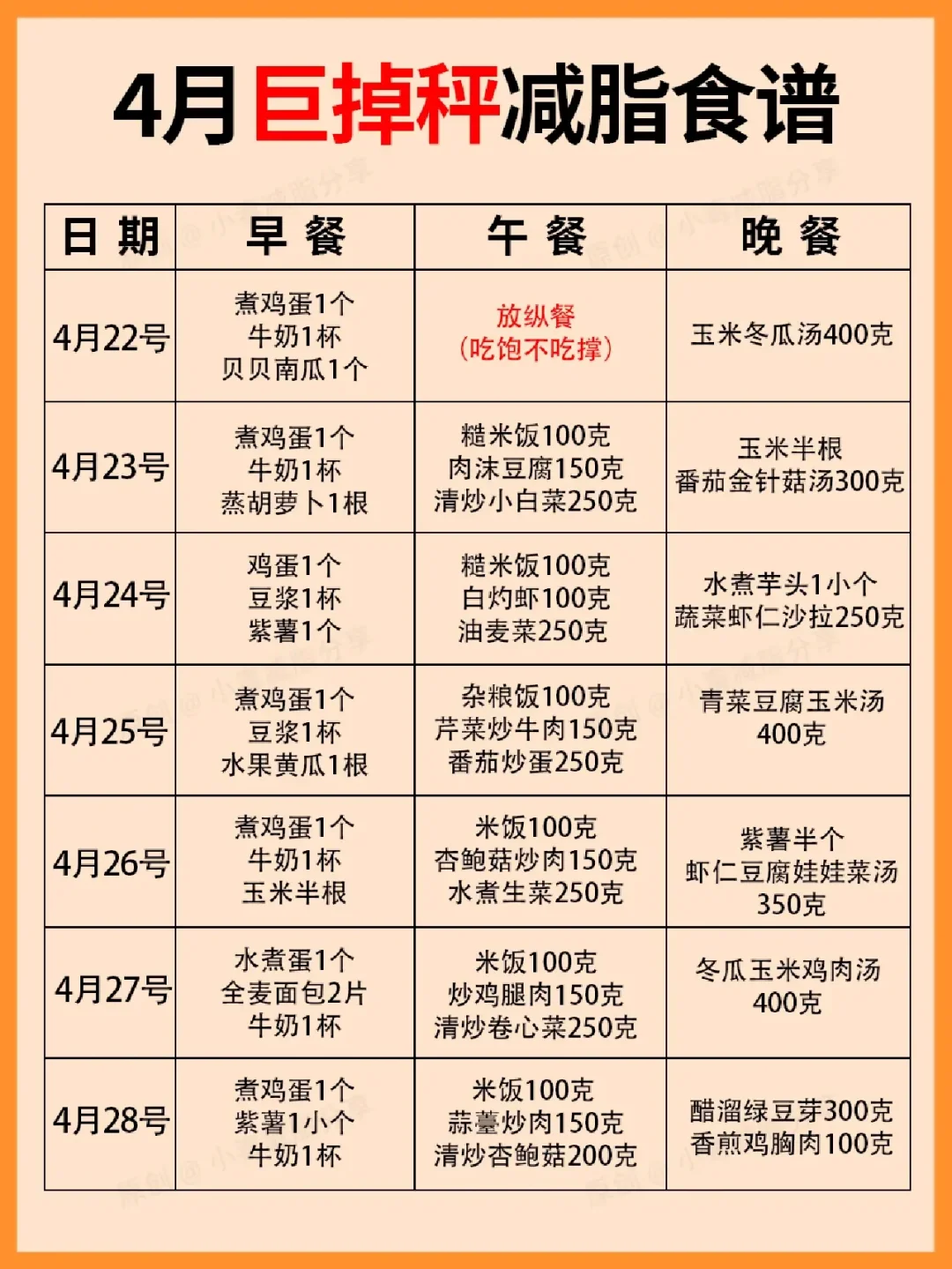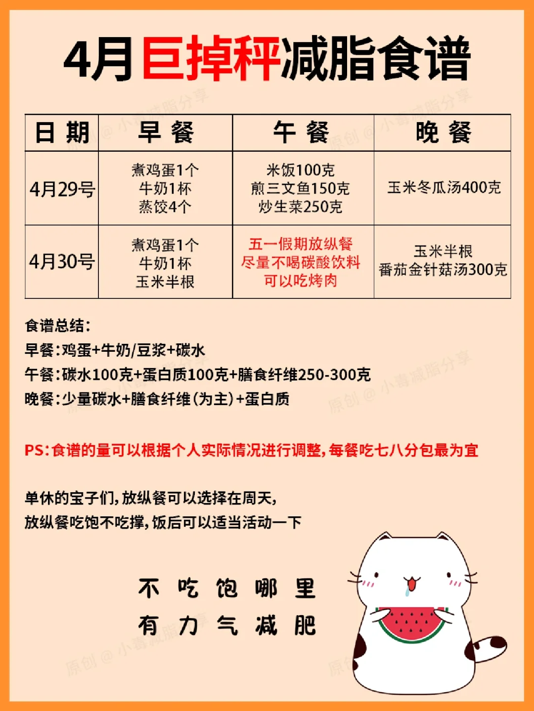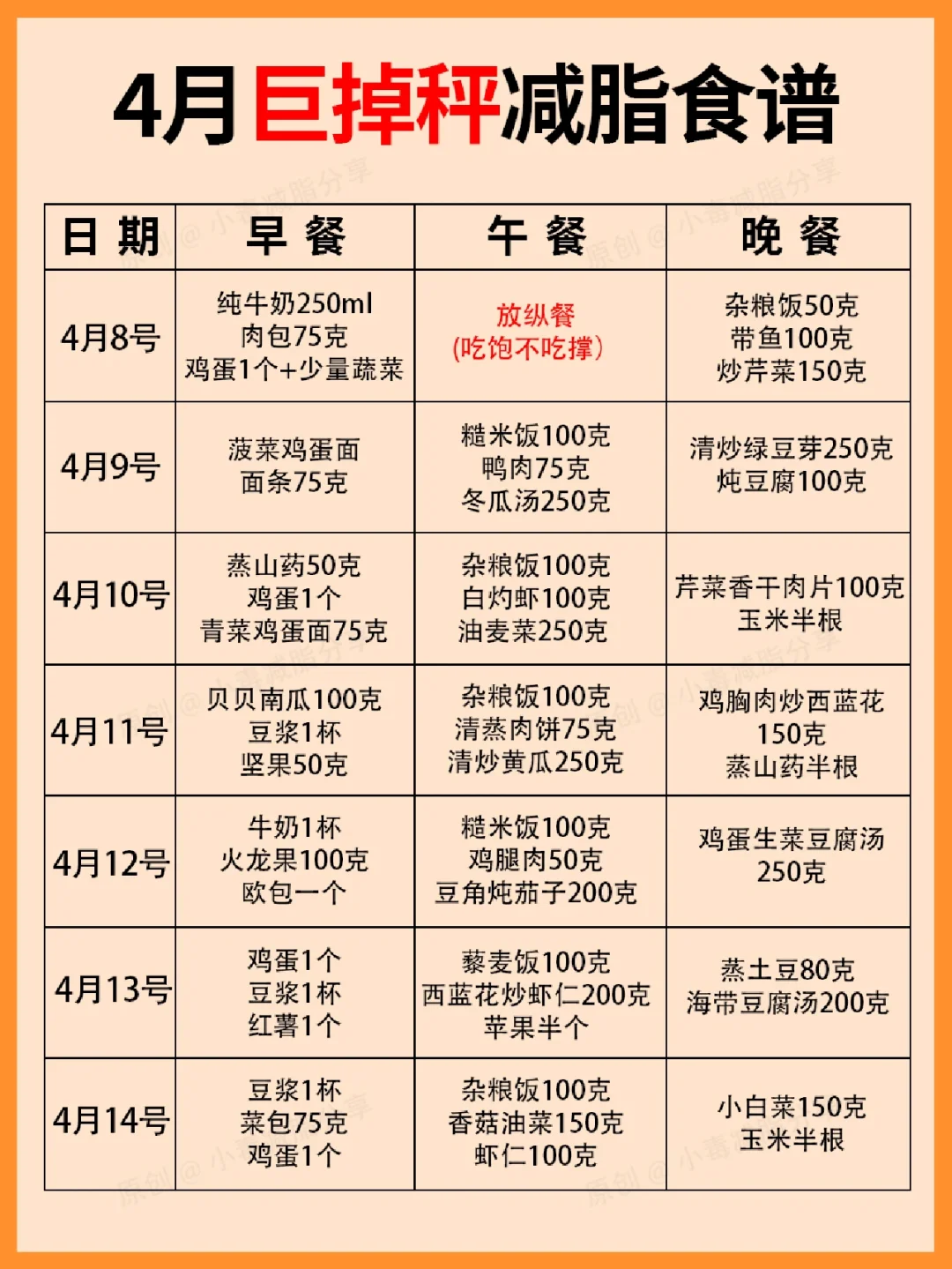 4月份巨掉秤减脂食谱来啦,四月不减肥,五月六月徒伤悲啊[捂脸R][捂脸R] 跟着小毒把肥肉吃走,健康减肥不节食 话不多说,看图看图[害羞R][害羞R][害羞R]