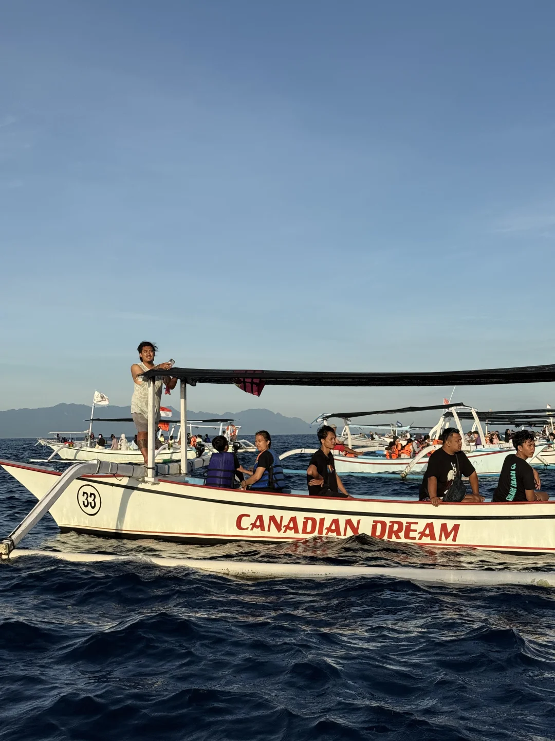 别敲门了!!家里没人!我在罗威纳追海豚!!! 早起追海豚的一天!!真的不亏! 我们因为住的比较远 包了车凌晨三点出发 五点半到达Lovina 六点多一点点上船(六点半日出🌅) 追海豚!浮潜!挂漂!! 人均100r的快乐!!谁懂啊!! · 追海豚hin重要的一点就是要选一个靠谱的船长 看见海豚 会非常迅速的冲过去 并且提醒大家海豚在哪里 大家一定要做好防晒 下水玩儿穿好救生衣