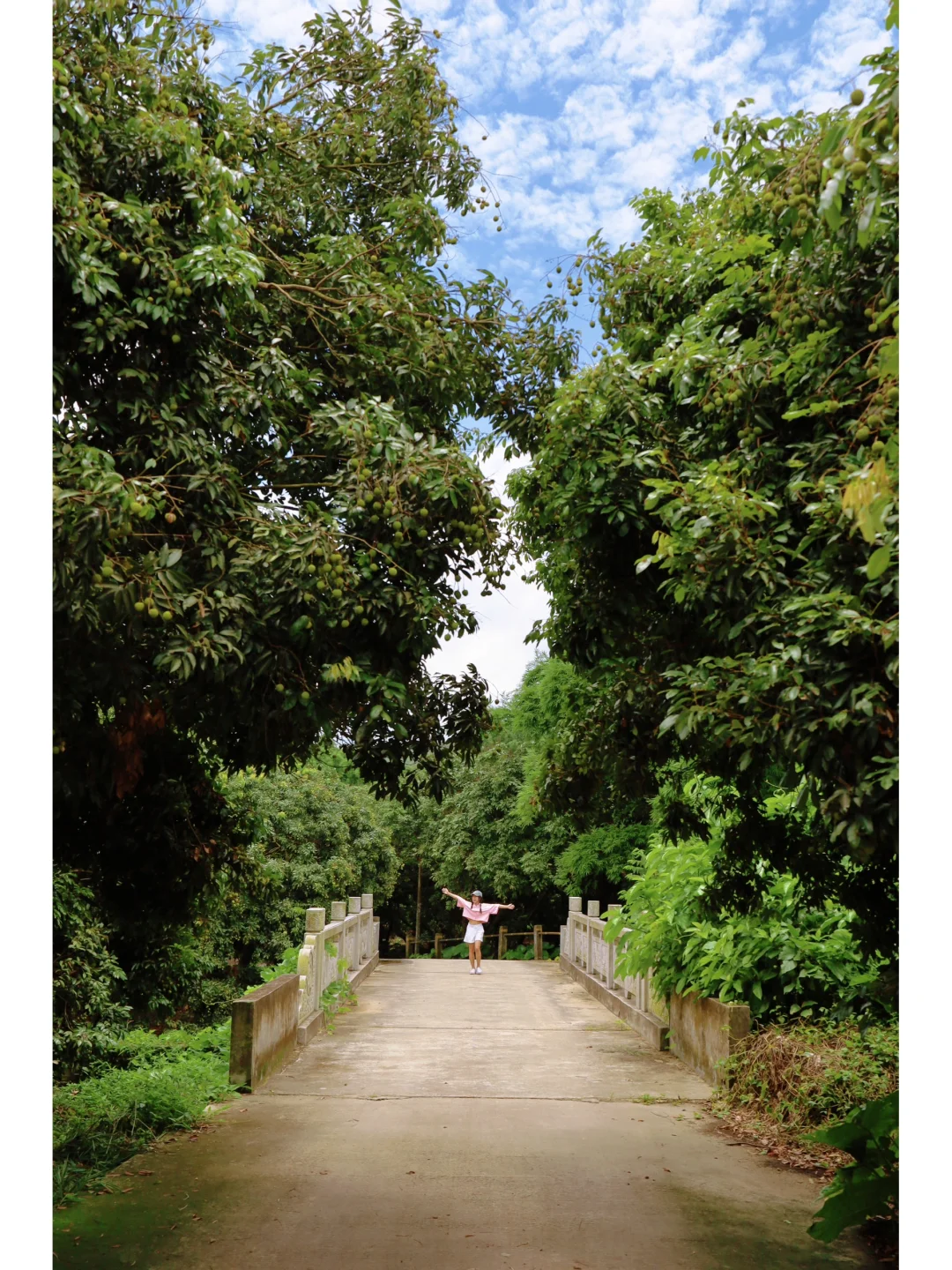❹小溪两旁都种了好多荔枝树,目前都已经有果实了,估计到6月下旬荔枝就会红了,就可以来体验一下荔枝树下溯溪露营的快乐啦~