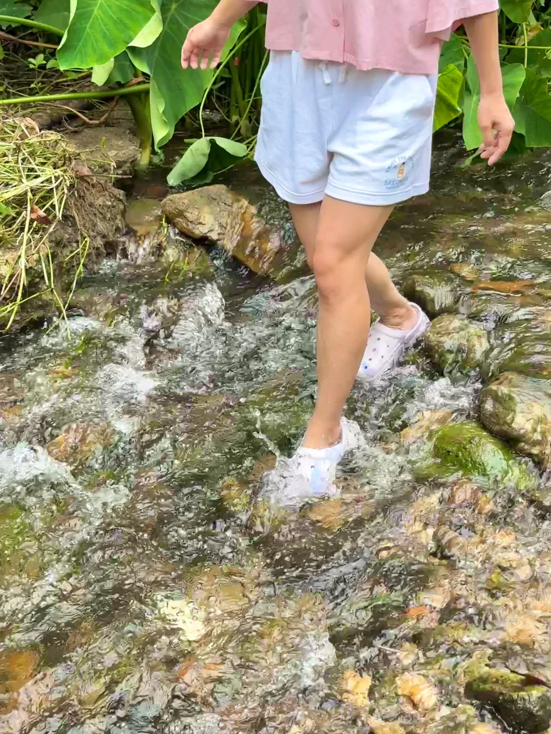 ❸建议大家穿上一双防水速干的户外溯溪鞋玩水,我的这双是斯凯奇泡泡鞋,走路舒服,在水路也不打滑,能让大家更自在的溯溪玩水哦~